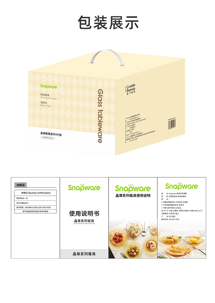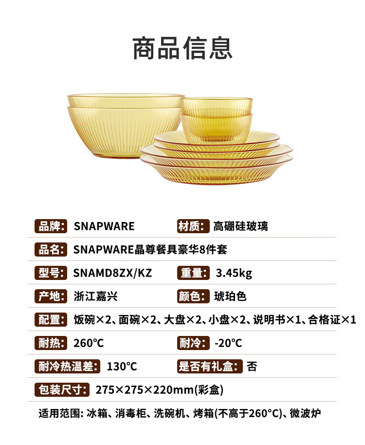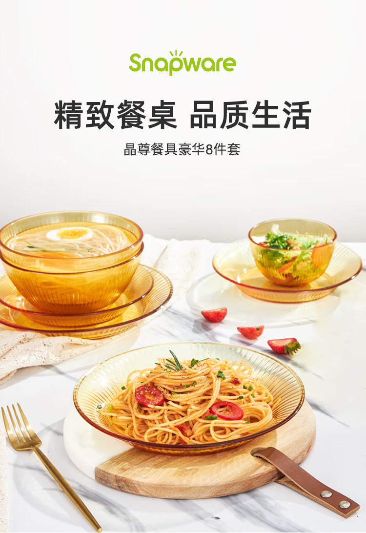 康宁餐具琥珀色耐热玻璃餐具套装 SN晶尊餐具豪华 8件套