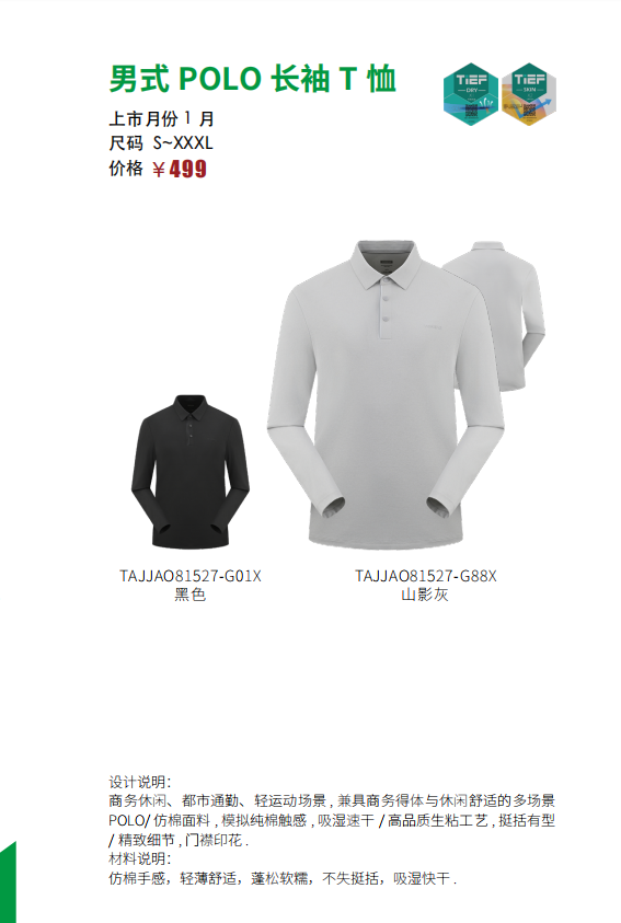 探路者男式POLO长袖T恤TAJJAO81527