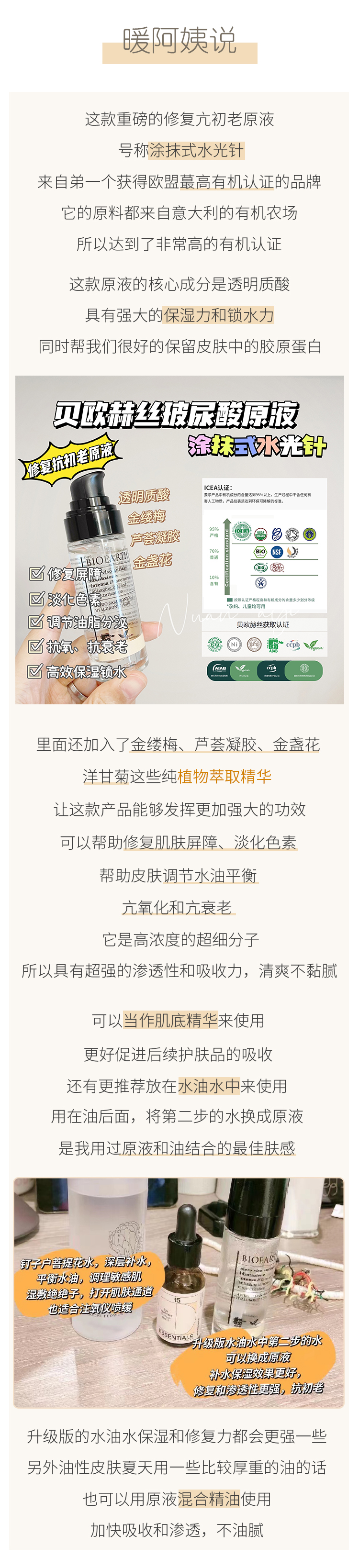 【涂抹式水光针 抗衰修复 卓效保湿】贝欧赫丝玻尿酸原液精华 30ML 意大利Bioearth