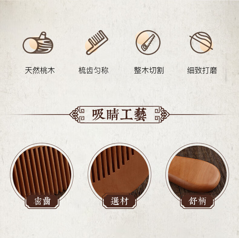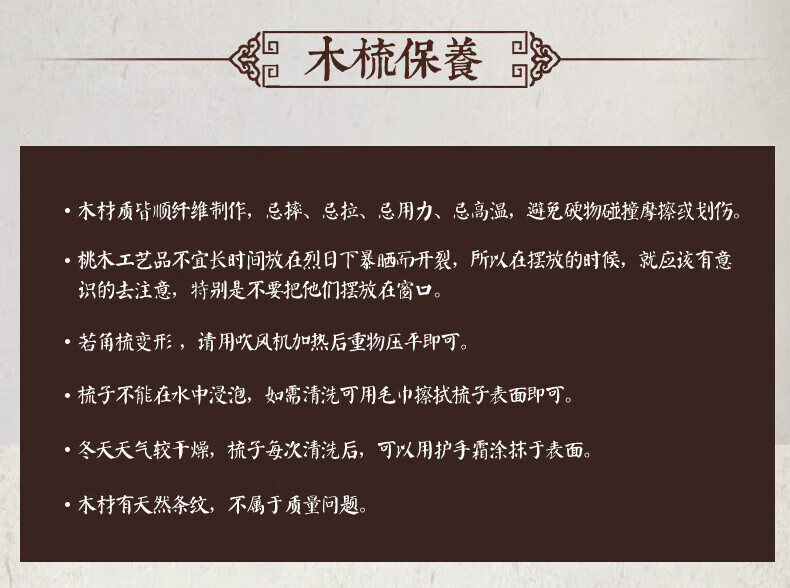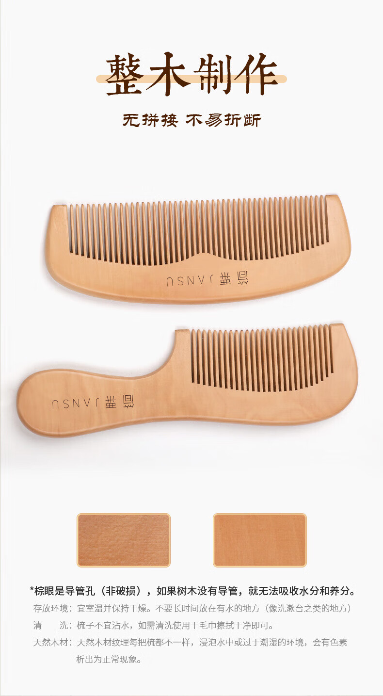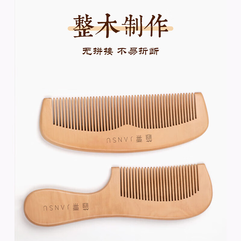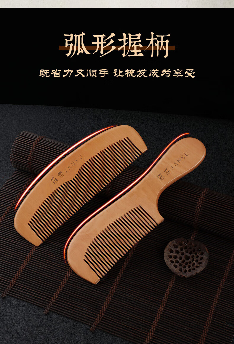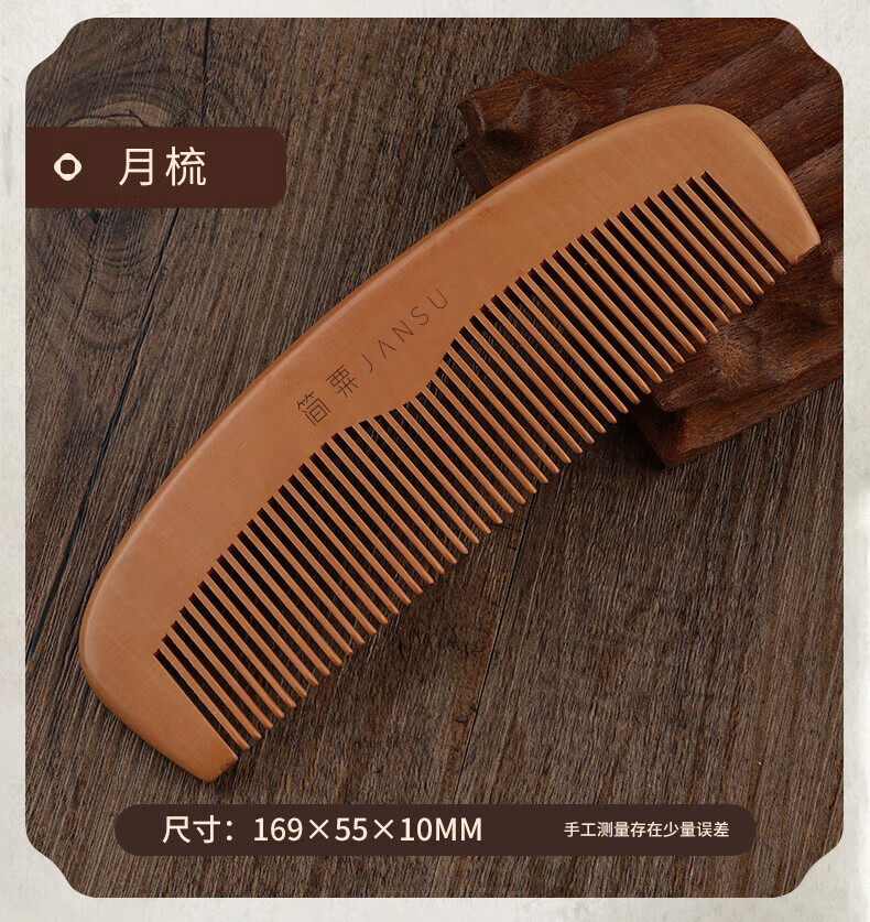简粟梳子天然桃木梳家用木头男士女士长发专用便携长柄梳半月梳两件套 100053383130