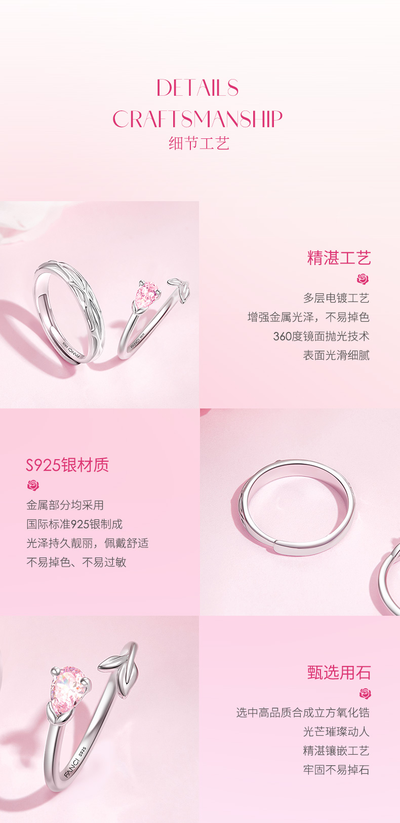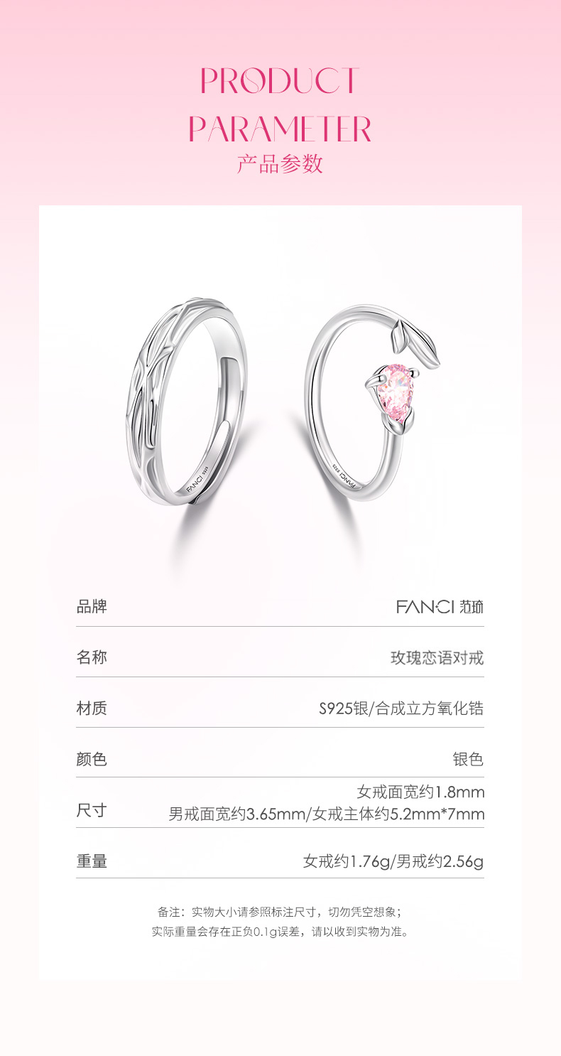 【玫瑰恋语对戒】Fanci范琦银饰轻奢情侣对戒 下单赠精美礼盒 顺丰空运+运费险