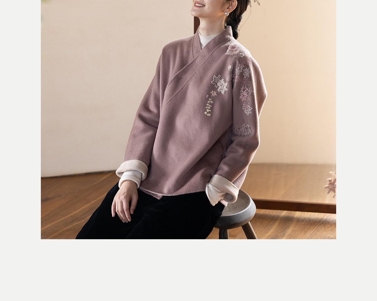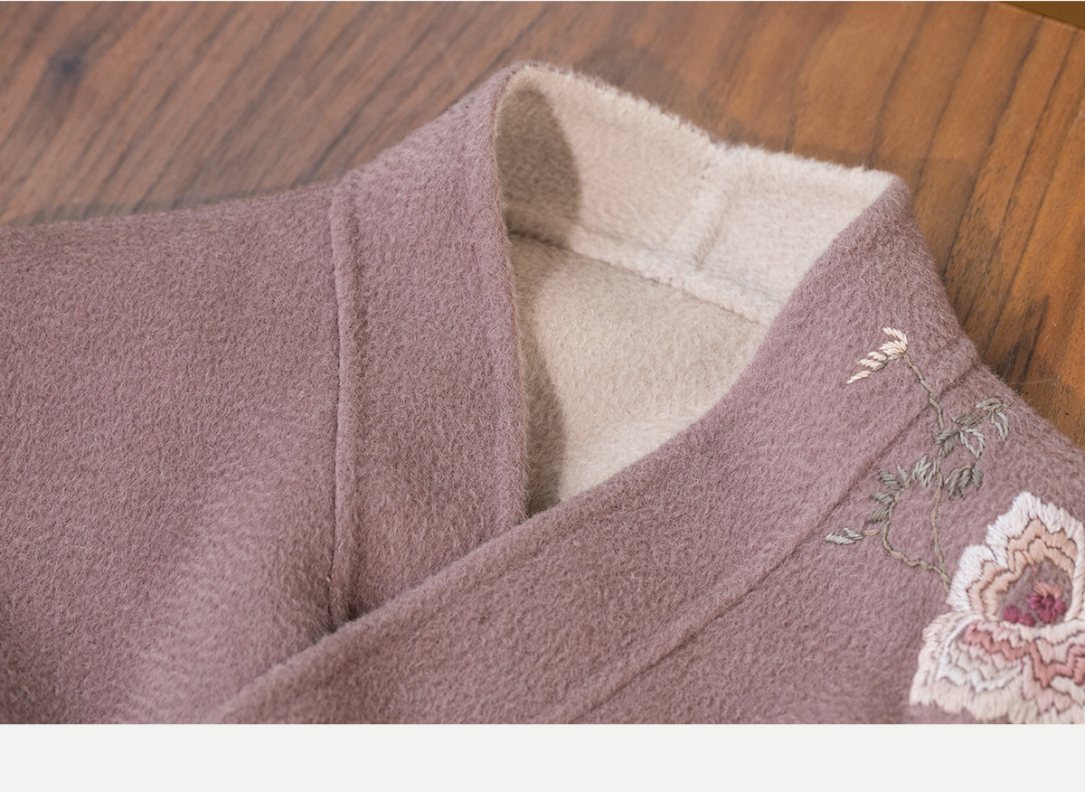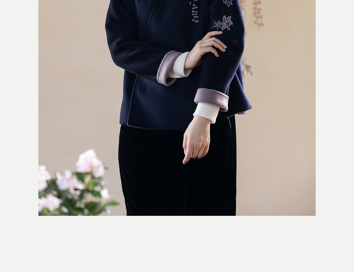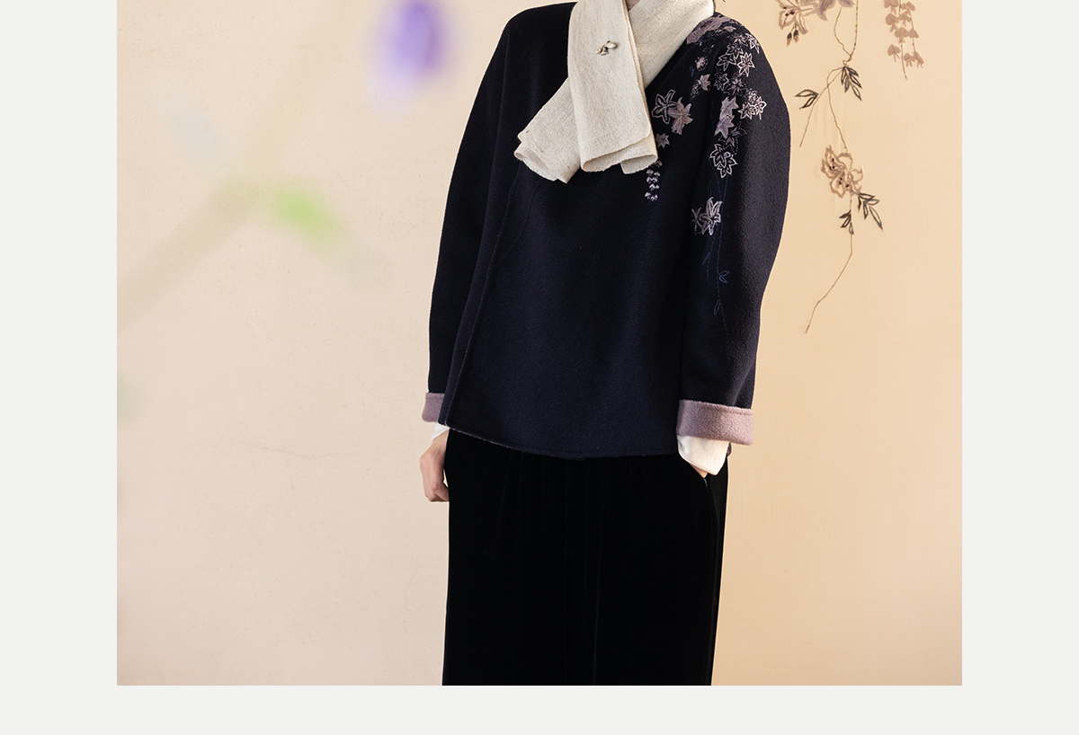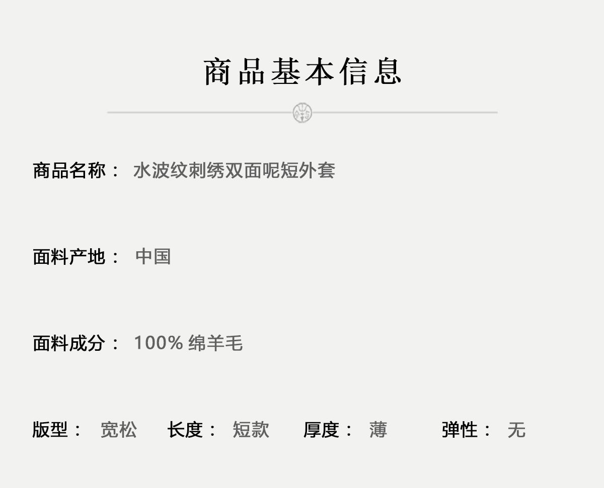 牧衣游原创 水波纹重工手绣双面呢短外套冬蓬松保暖毛呢外套 澜舟