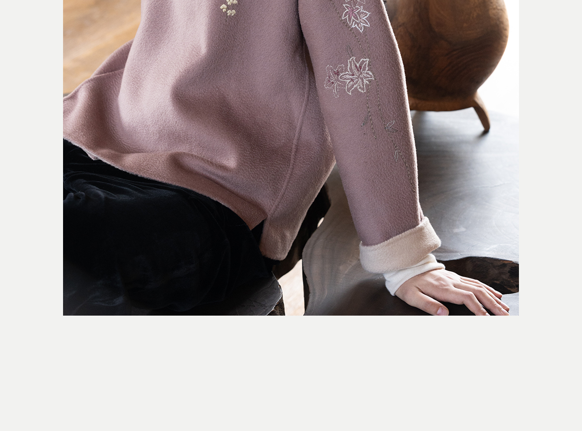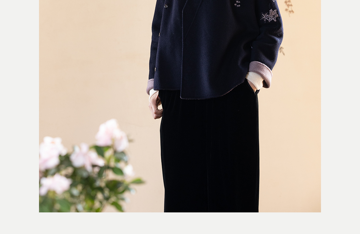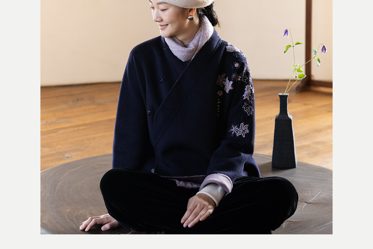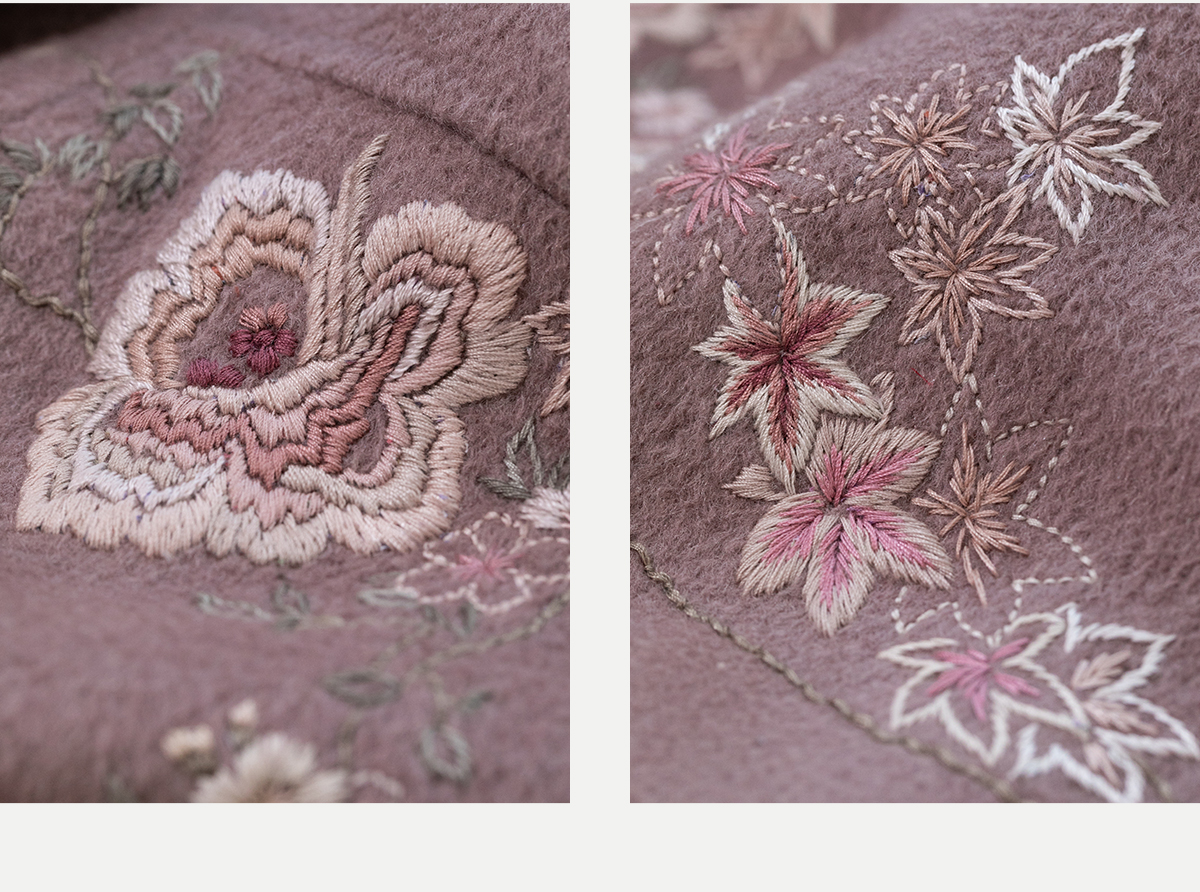 牧衣游原创 水波纹重工手绣双面呢短外套冬蓬松保暖毛呢外套 澜舟