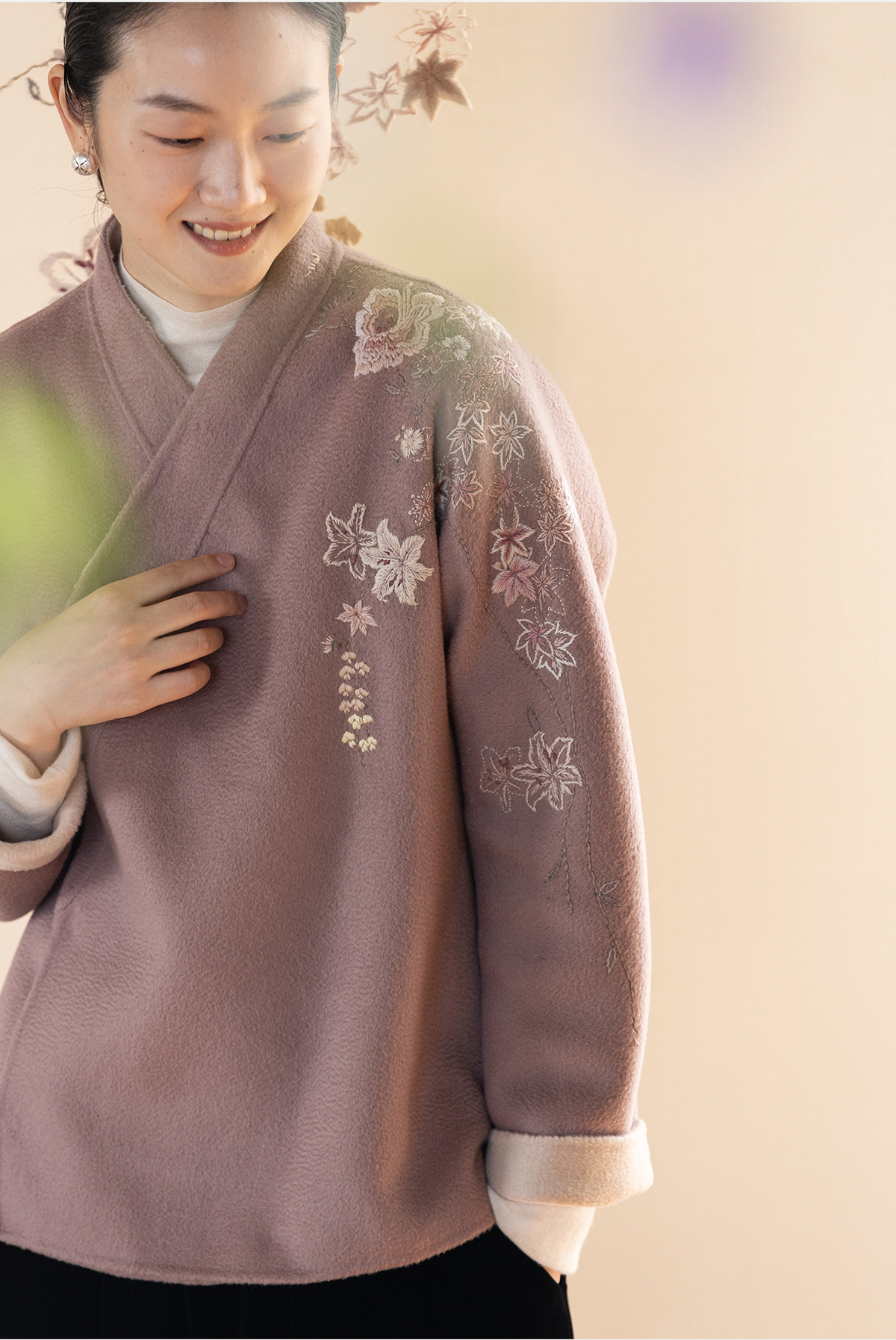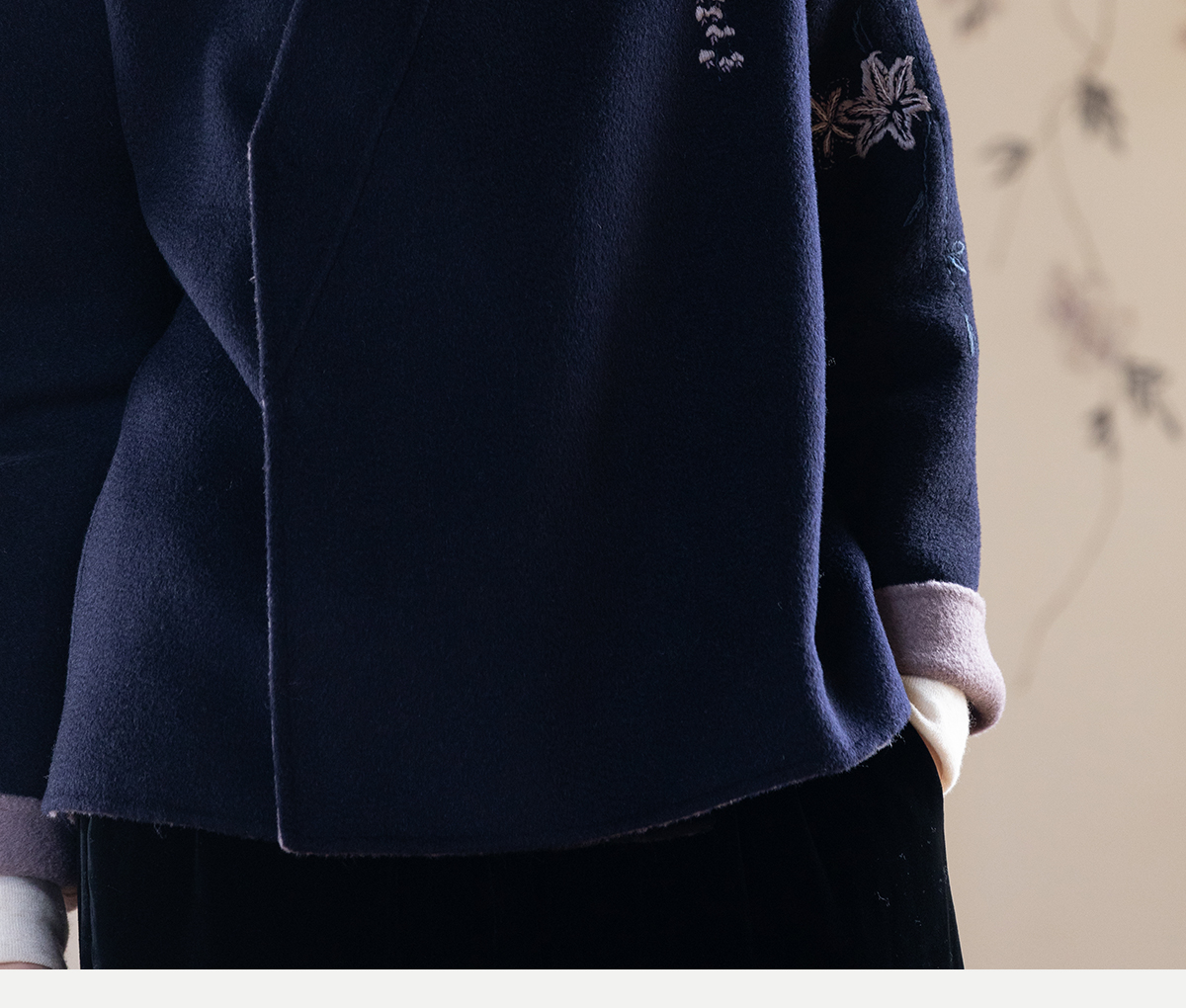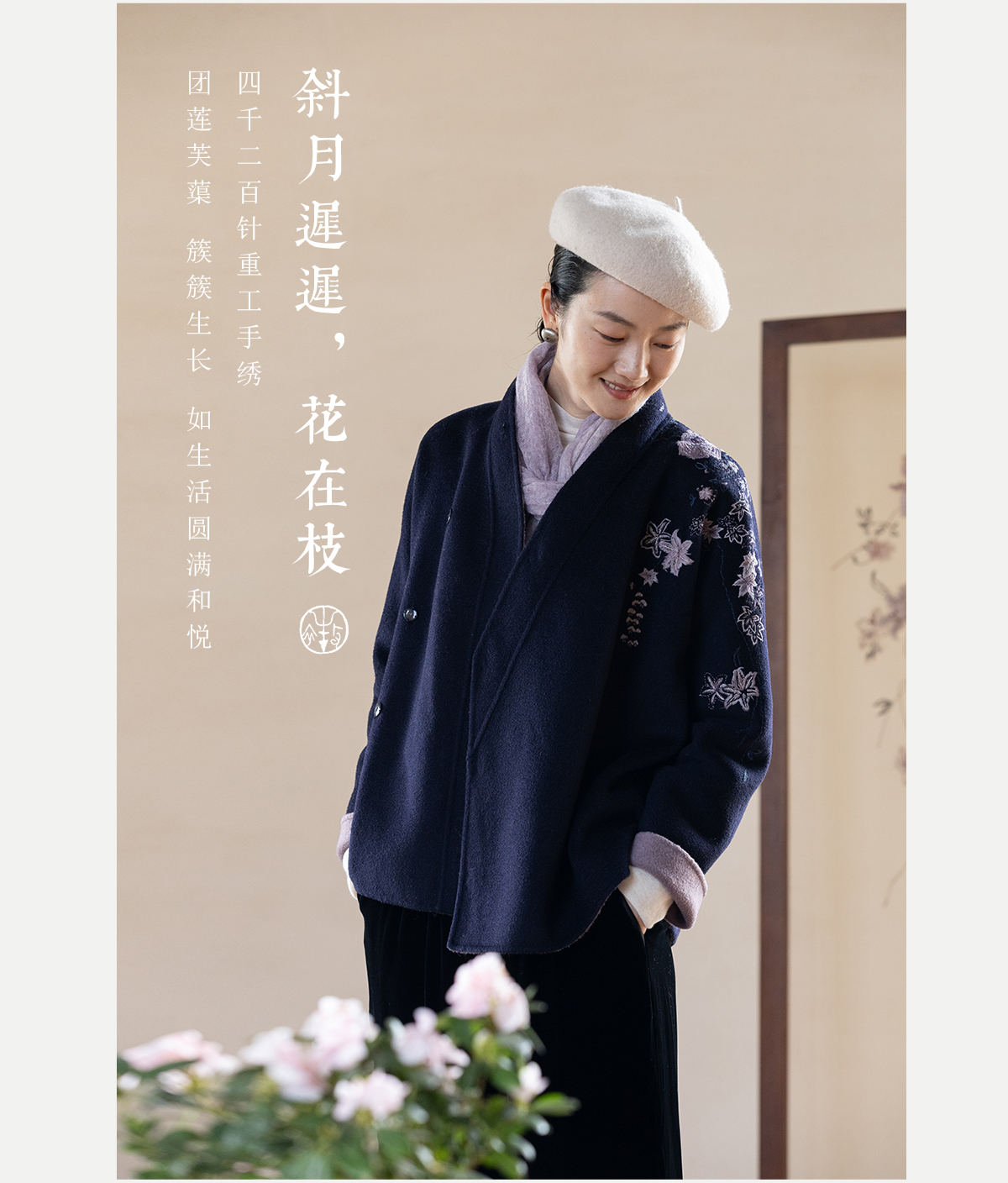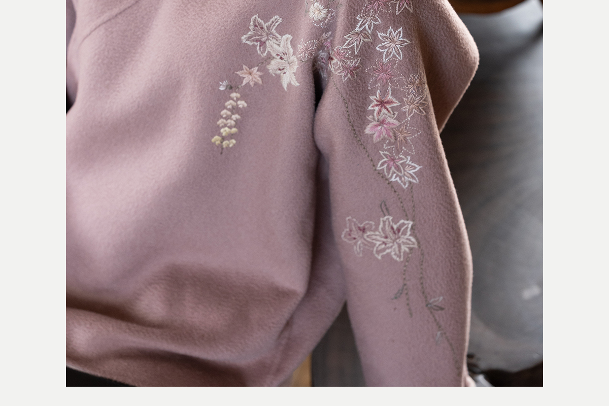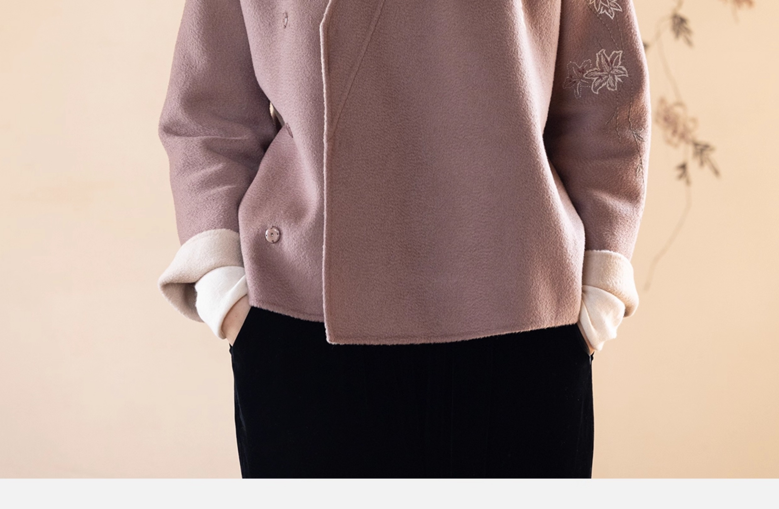 牧衣游原创 水波纹重工手绣双面呢短外套冬蓬松保暖毛呢外套 澜舟