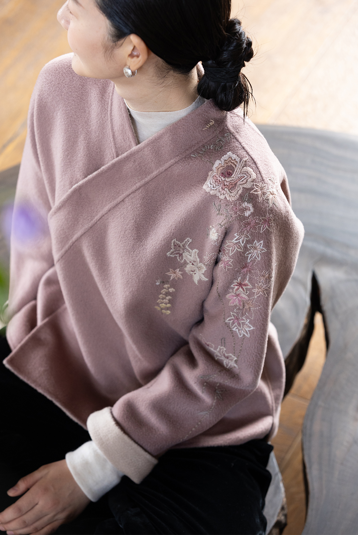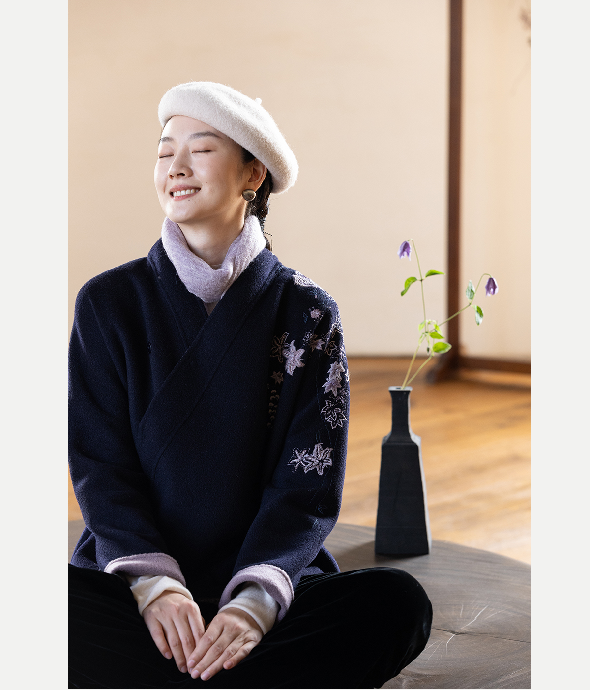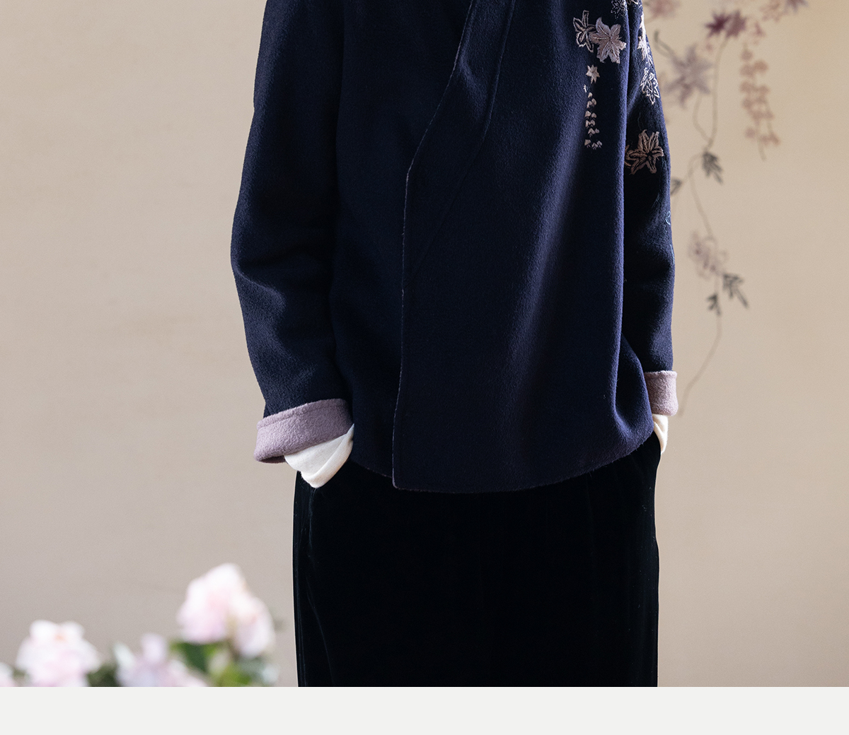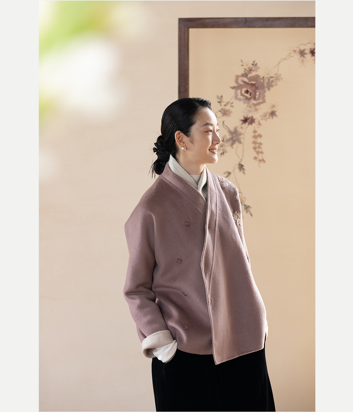 牧衣游原创 水波纹重工手绣双面呢短外套冬蓬松保暖毛呢外套 澜舟