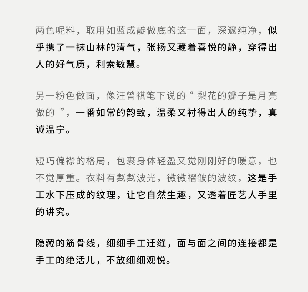 - 让内心温暖,让情感自由。坚持传统的手工作物,坚持匠心的制作精神。