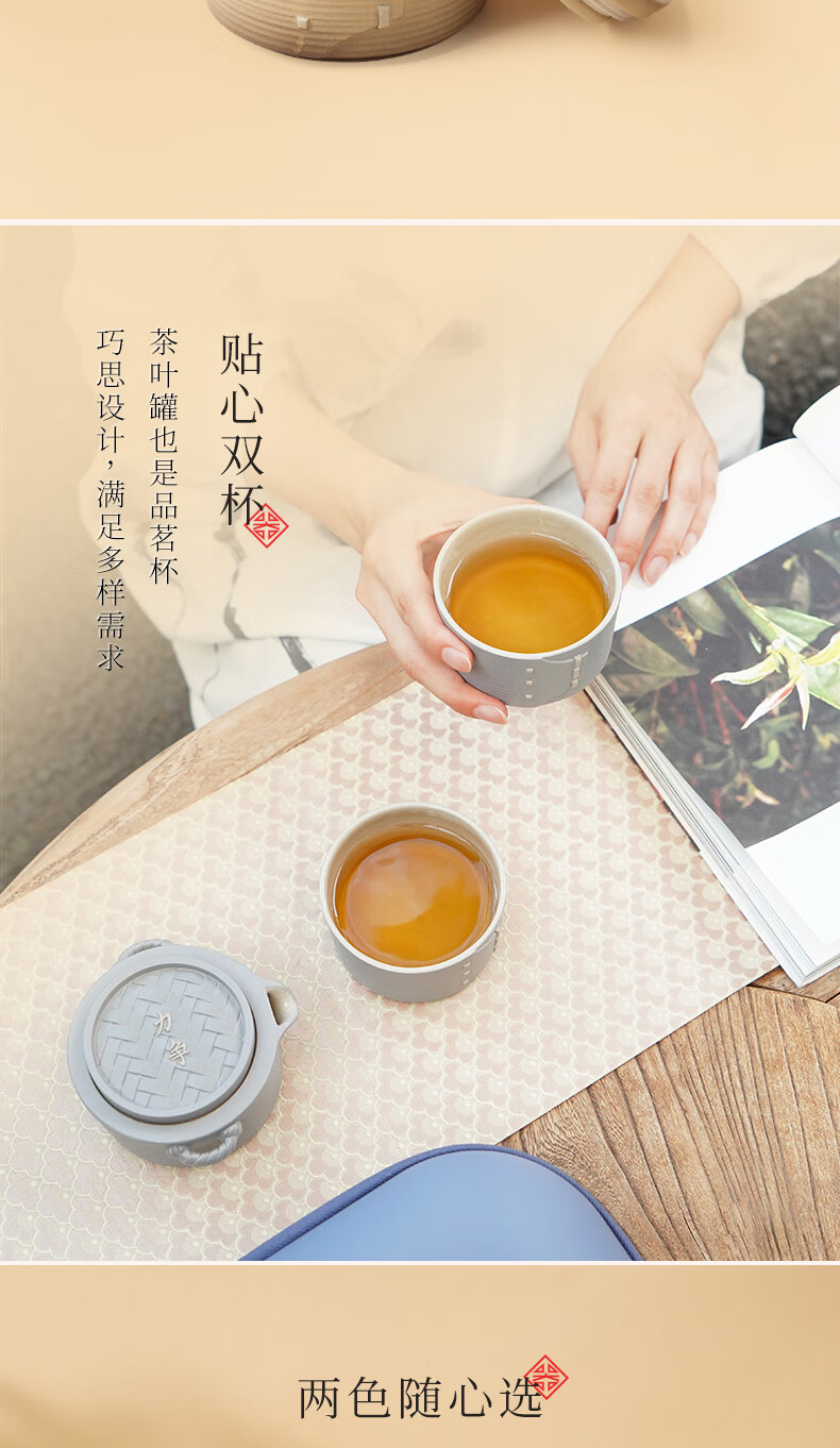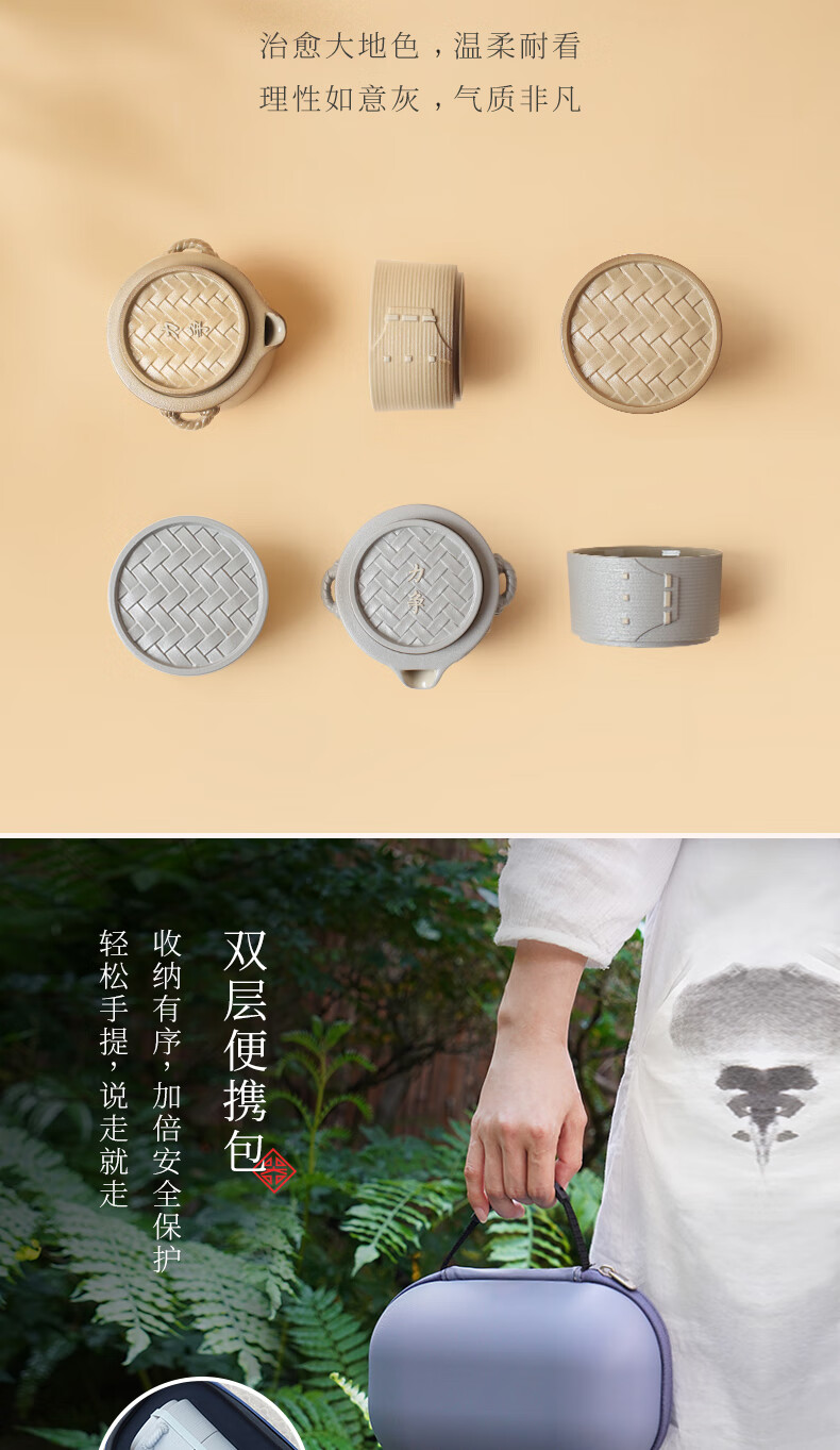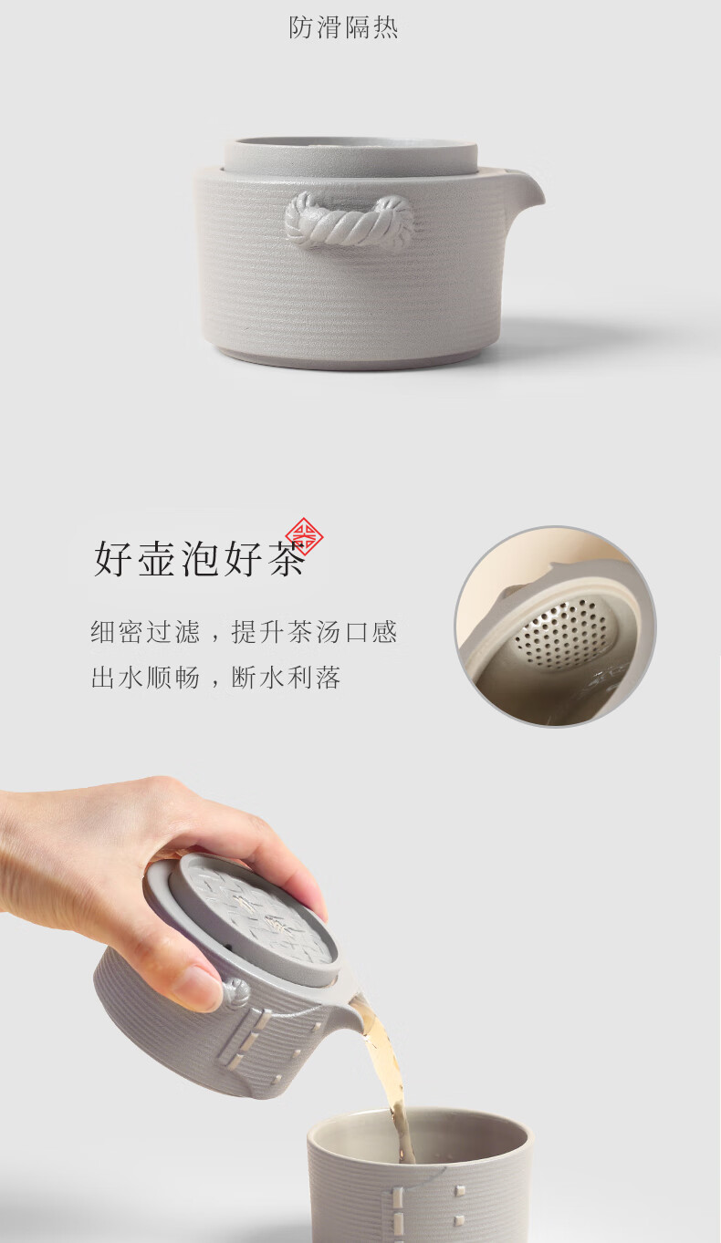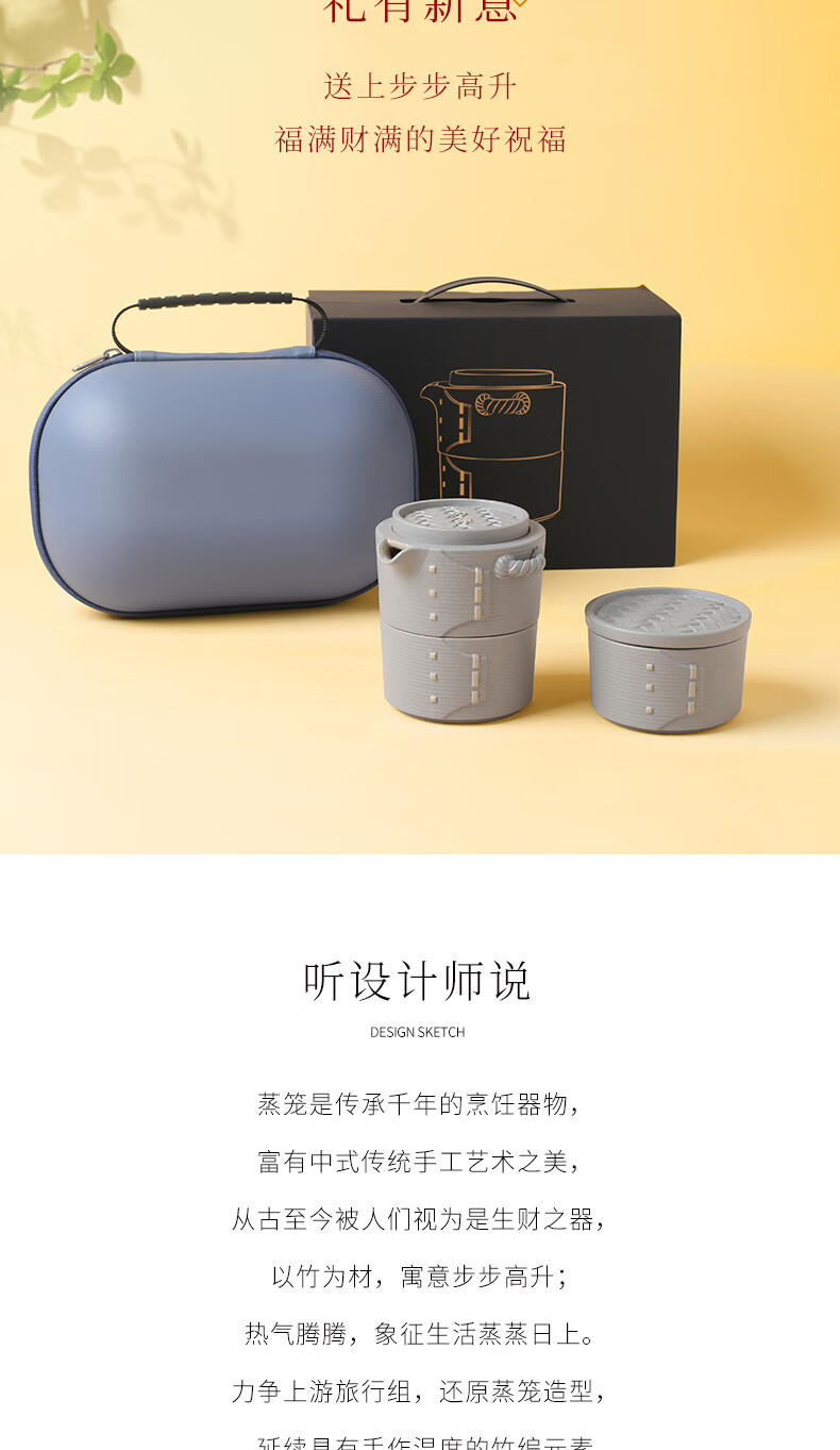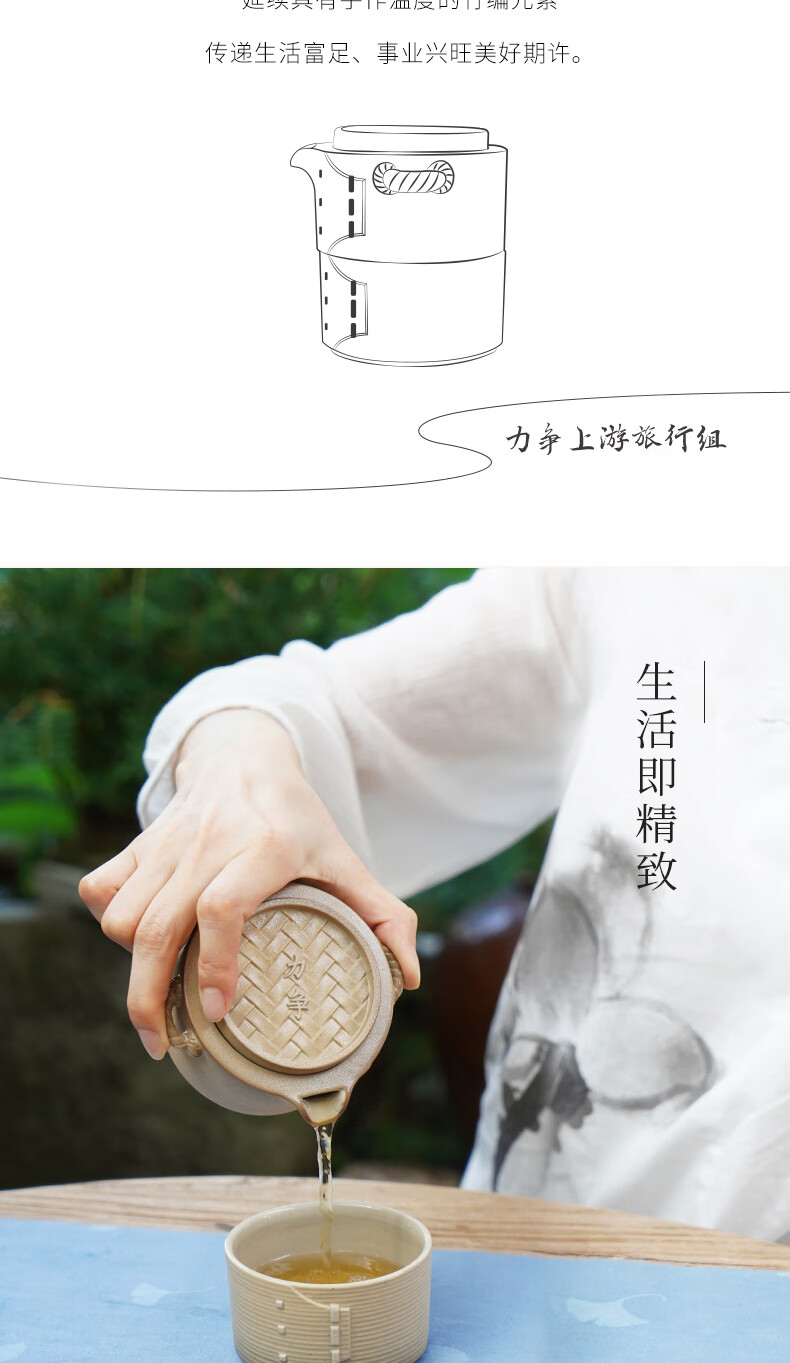 陆宝-力争上游旅行组 如意灰茶具套装