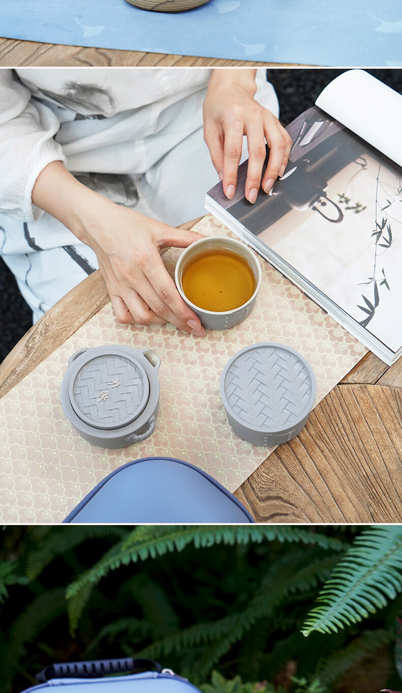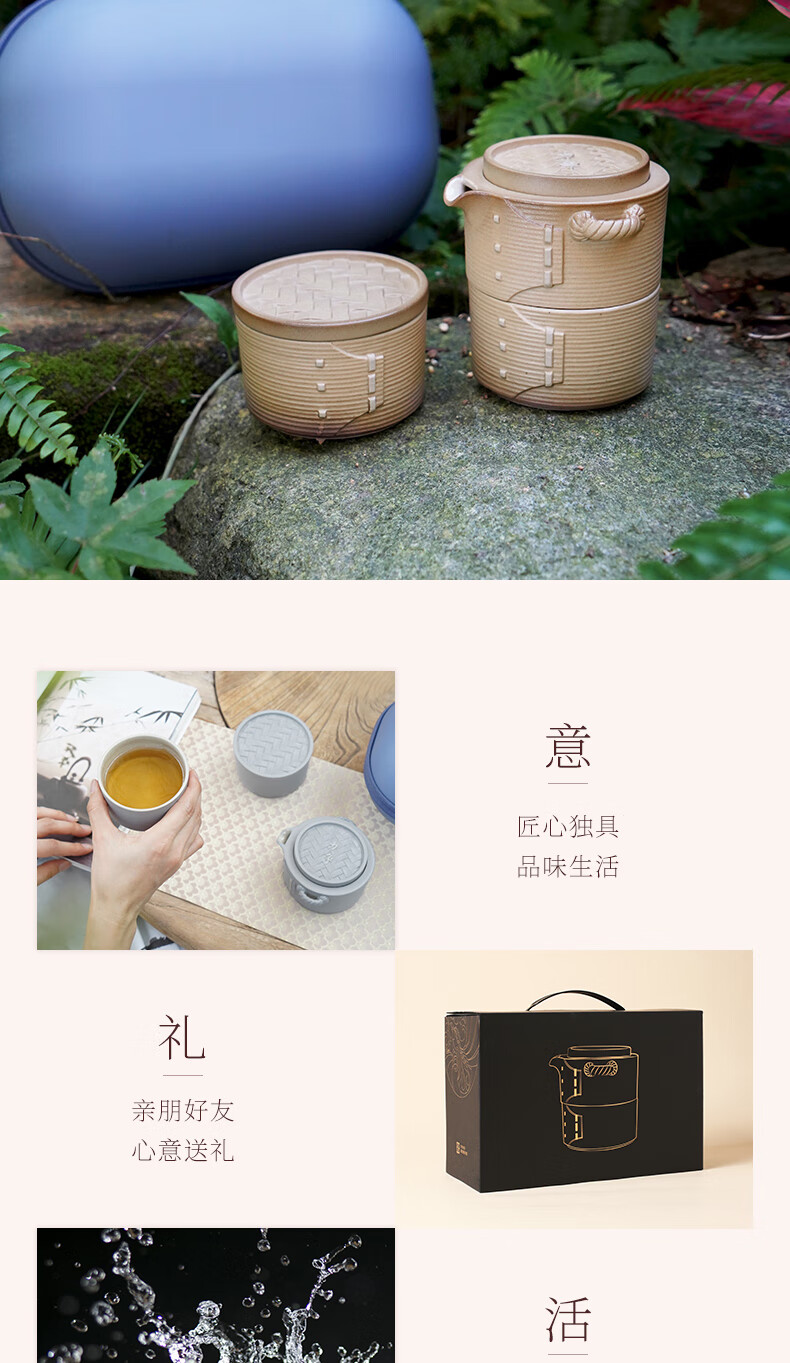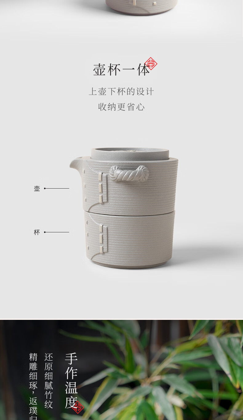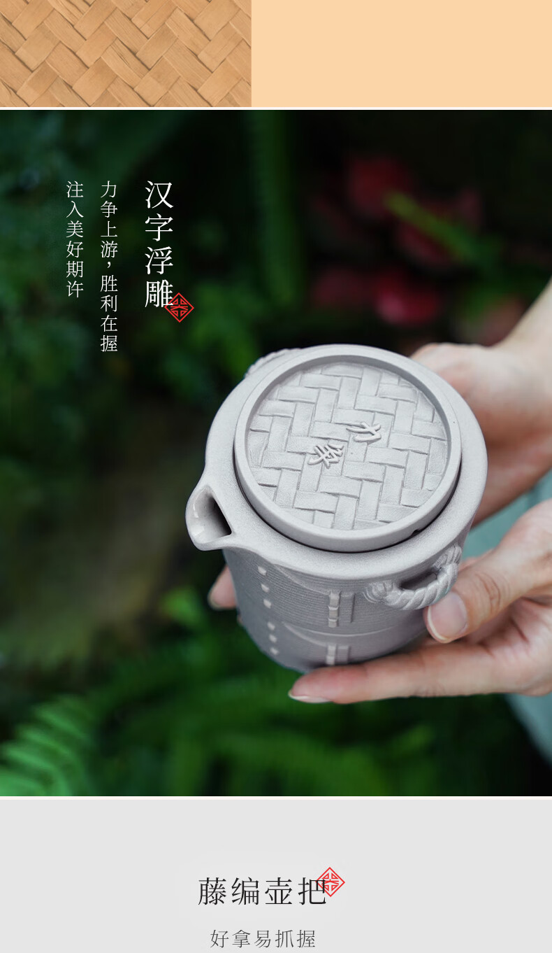陆宝-力争上游旅行组 如意灰茶具套装