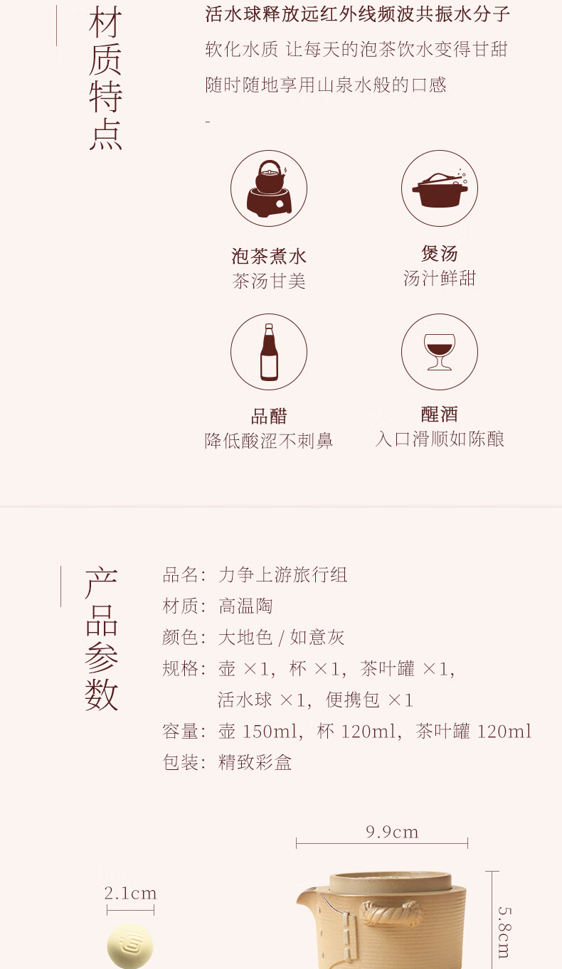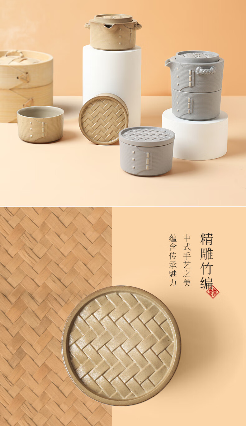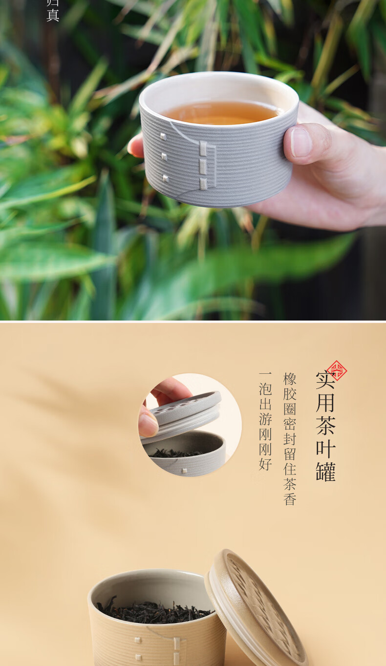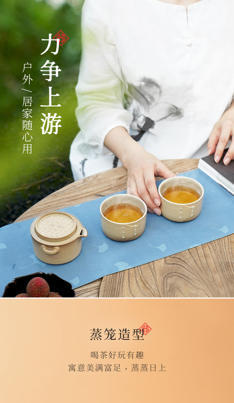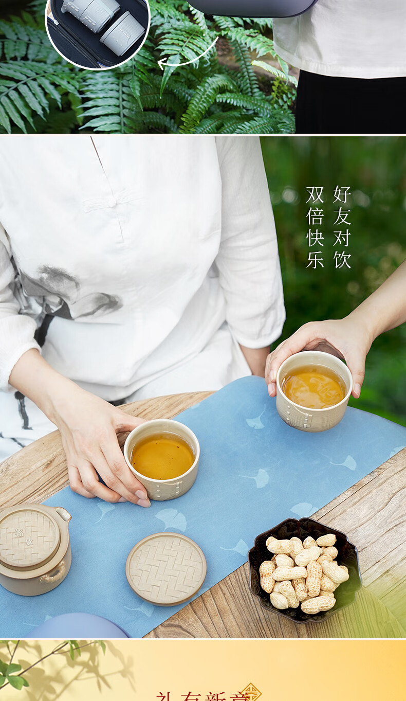 陆宝-力争上游旅行组 如意灰茶具套装