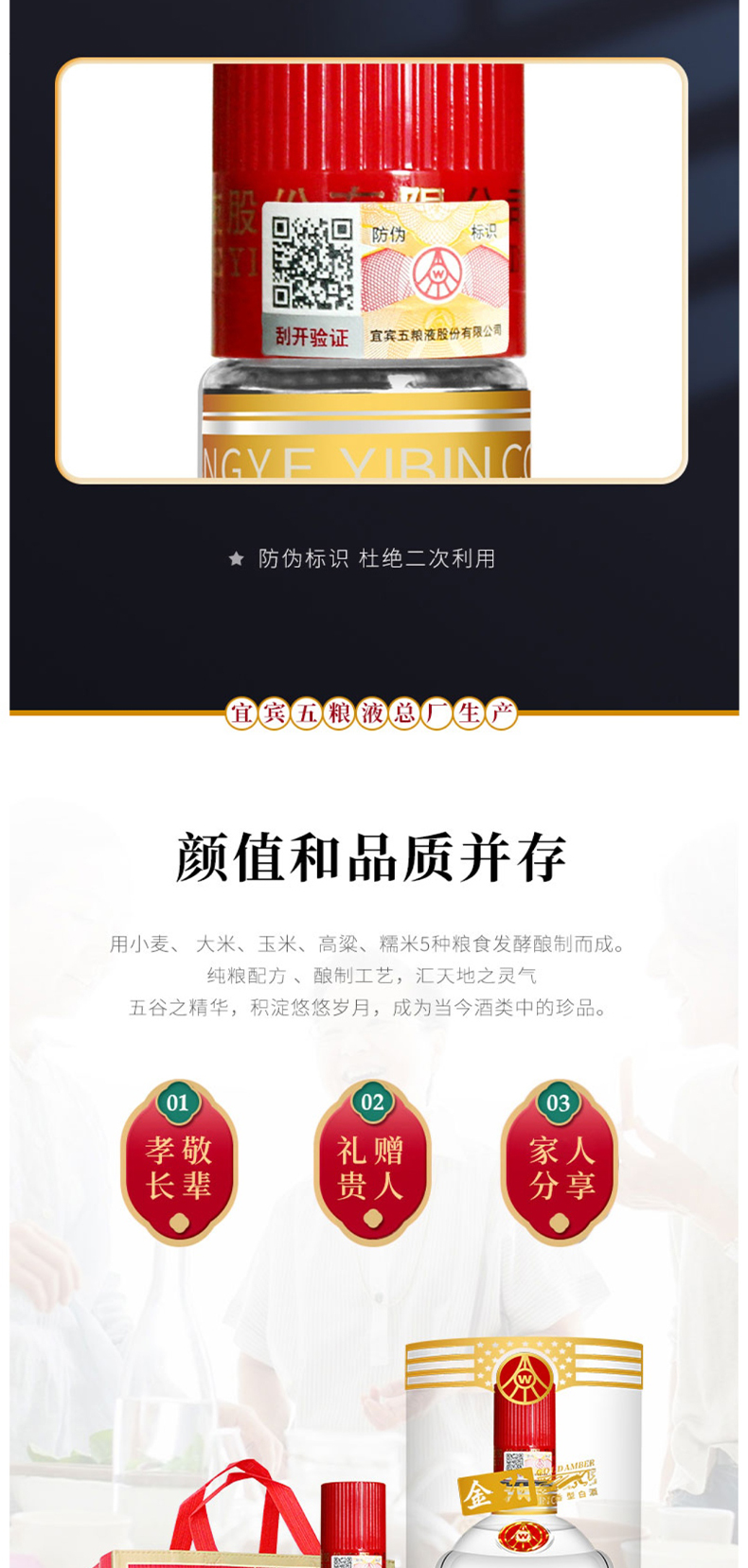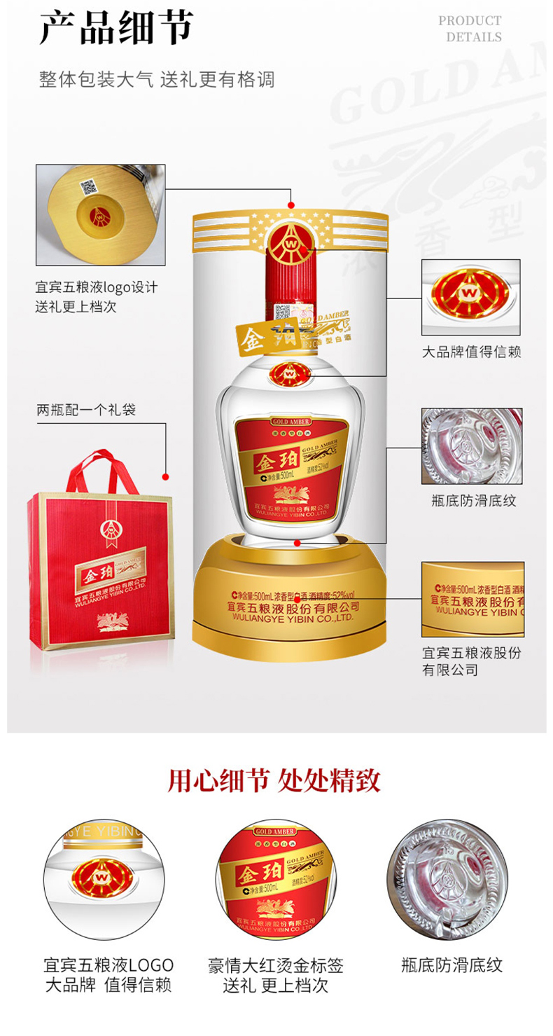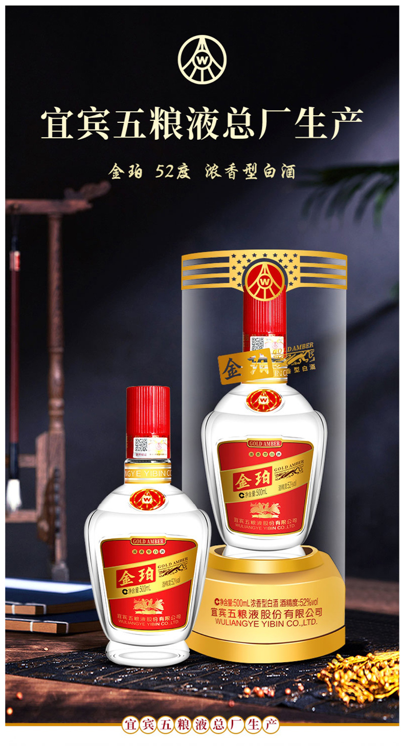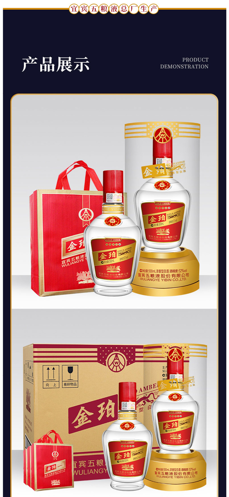 五粮液金珀亚克力盒金色 52度浓香型白酒 整箱6瓶*500ml包邮