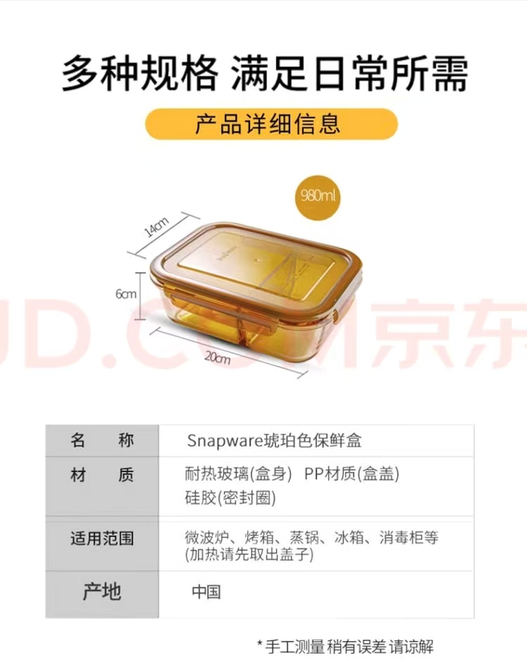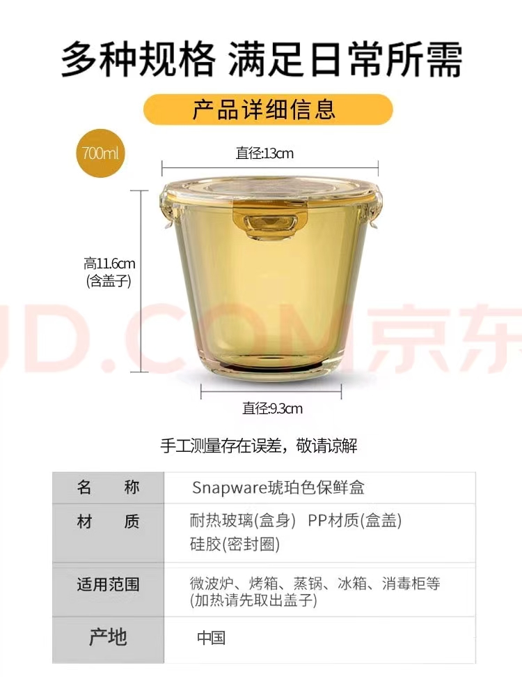 康宁 琥珀色保鲜盒饭盒两件组+保鲜盒袋 700ml+980ml+保鲜盒袋