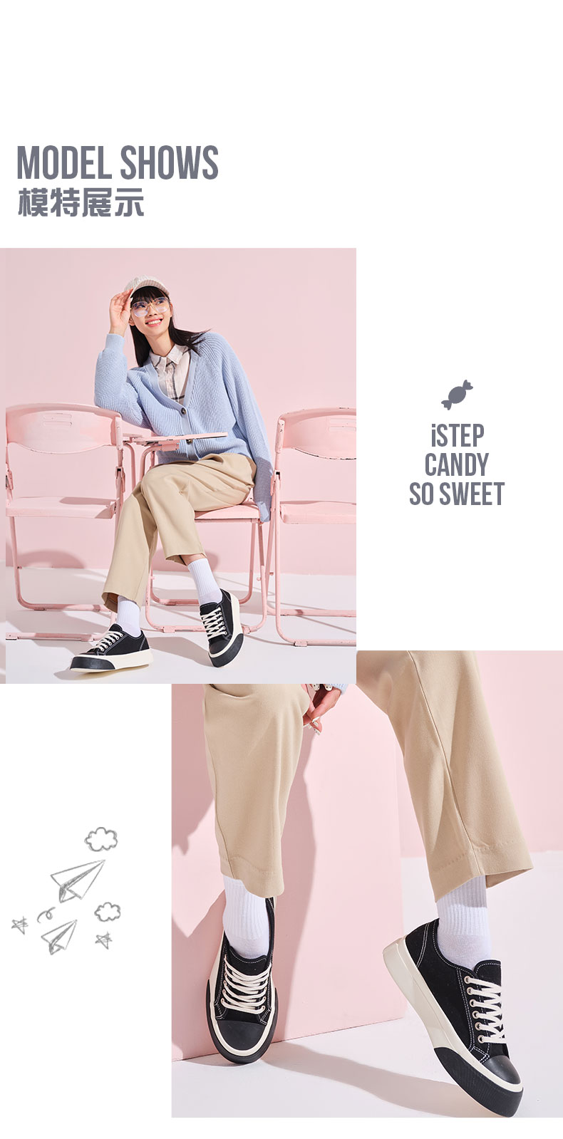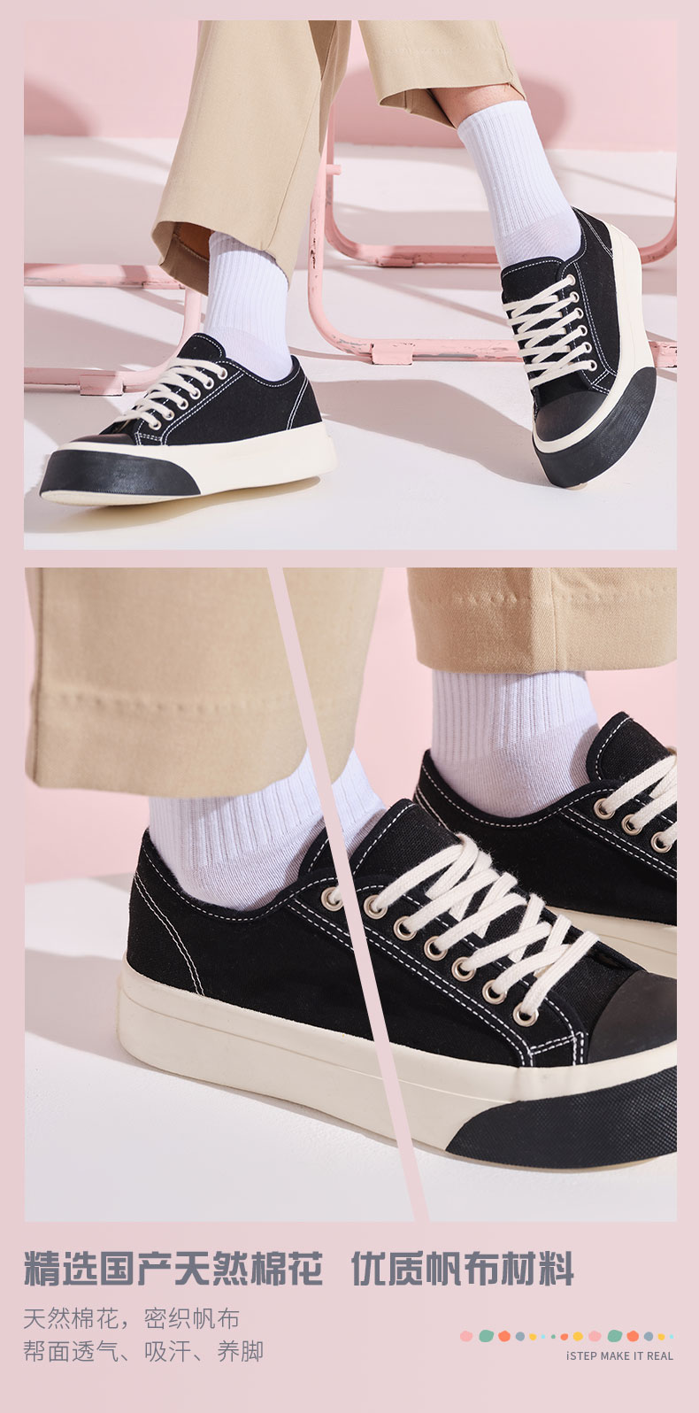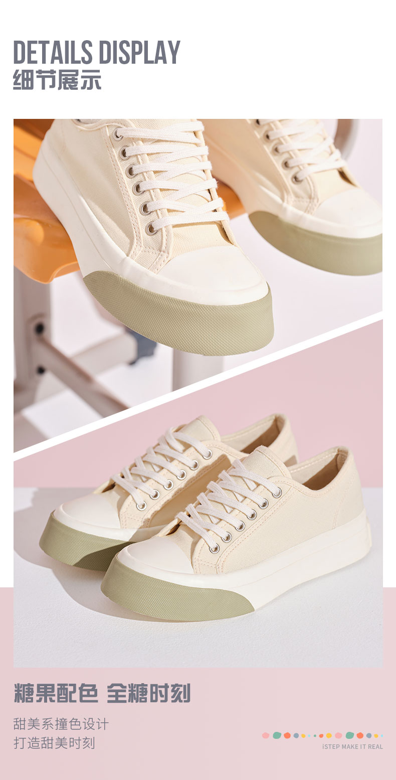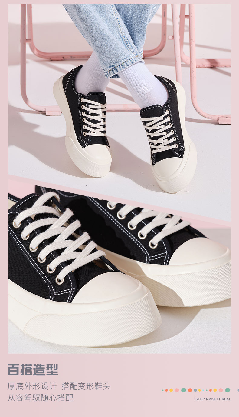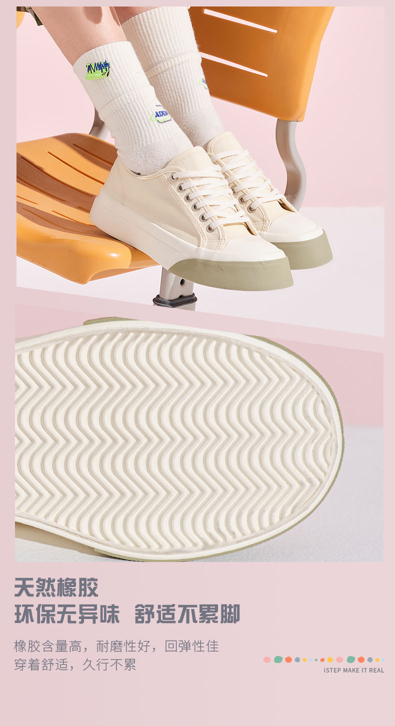 【2026新春专享】iSTEP低帮帆布鞋新品小白鞋厚底憨憨马蹄女大头鞋ins潮女鞋(瑕疵品不退不换)