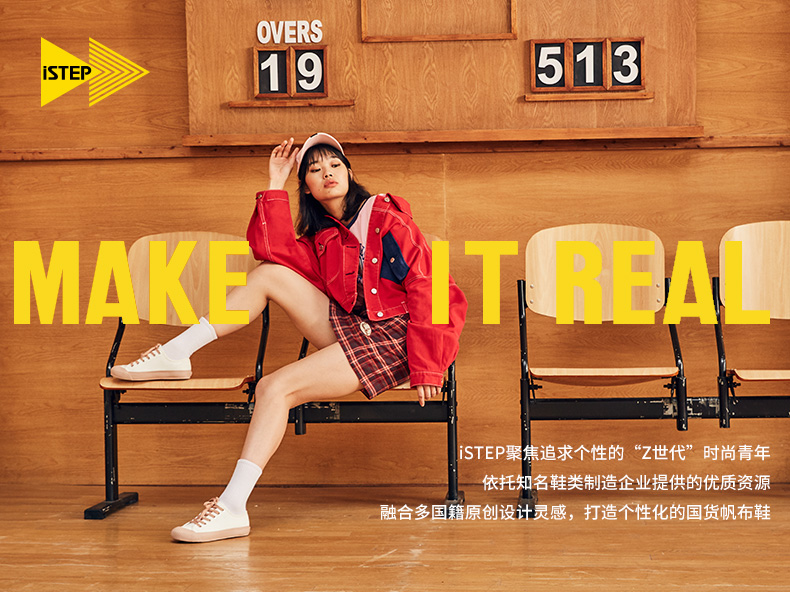 iSTEP夏季情侣款池磊联名帆布鞋国潮闪电撞色拼接印花休闲女鞋