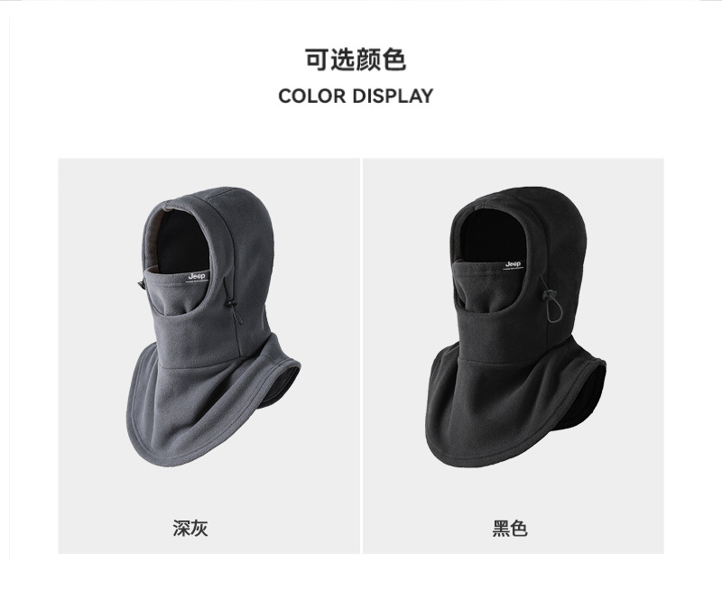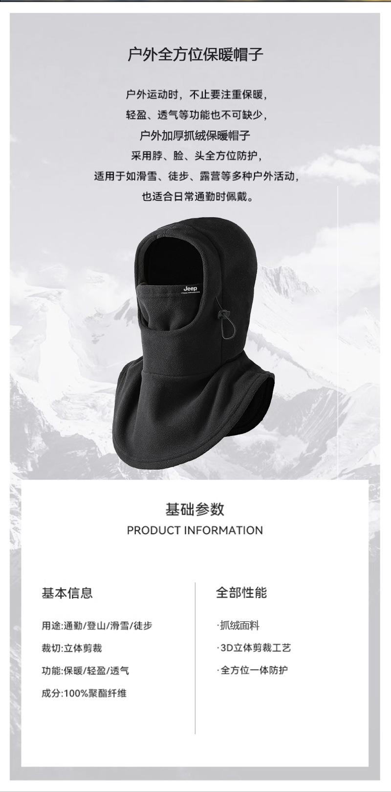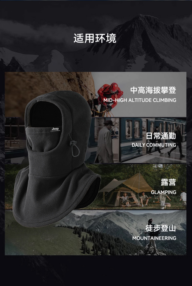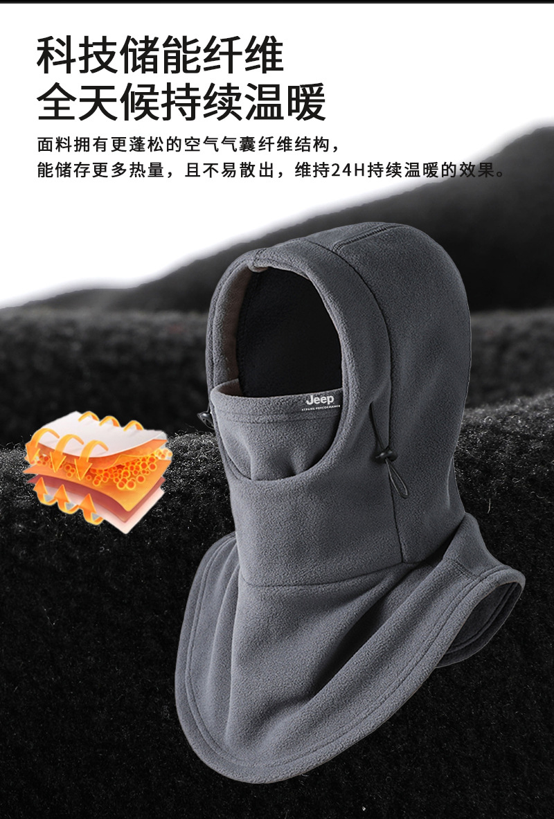 JEEP户外秋冬加厚全方位抓绒保暖登山徒步帽子高强防风抗寒耐磨透气包头帽