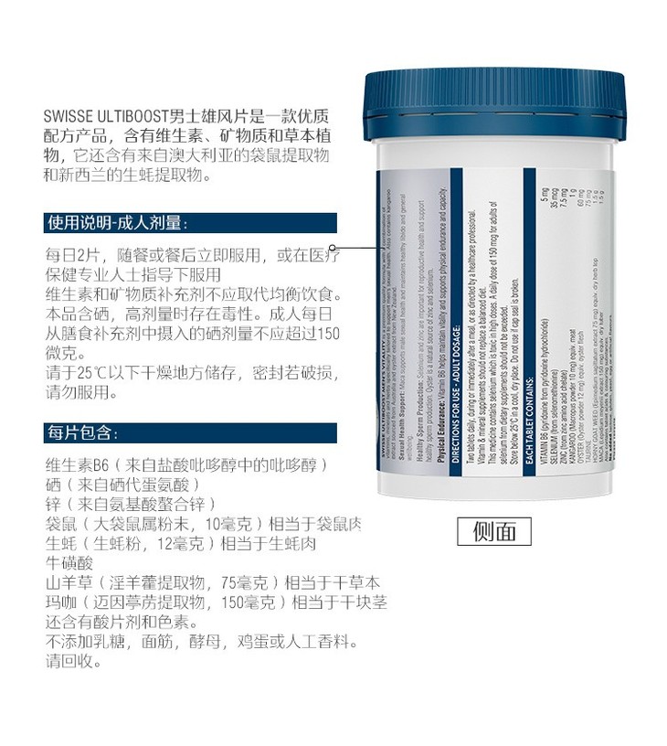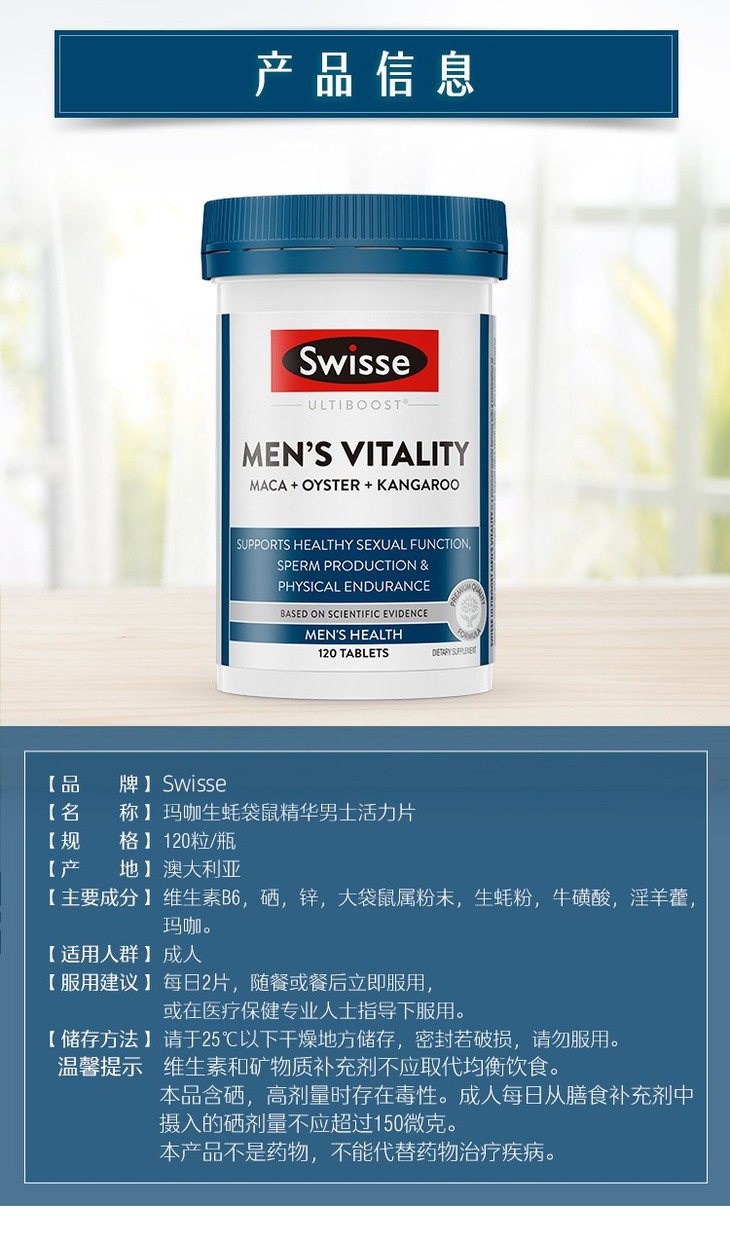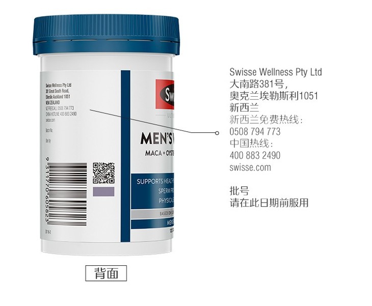 【保税仓】澳洲 Swisse 男士活力雄风片(袋鼠精)120粒 新西兰版