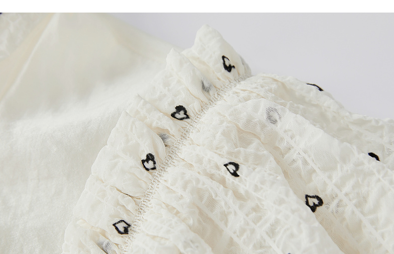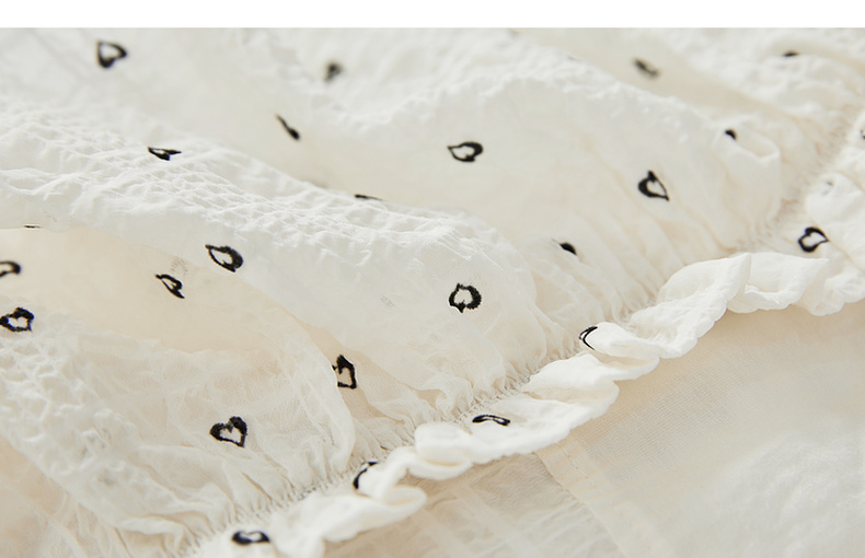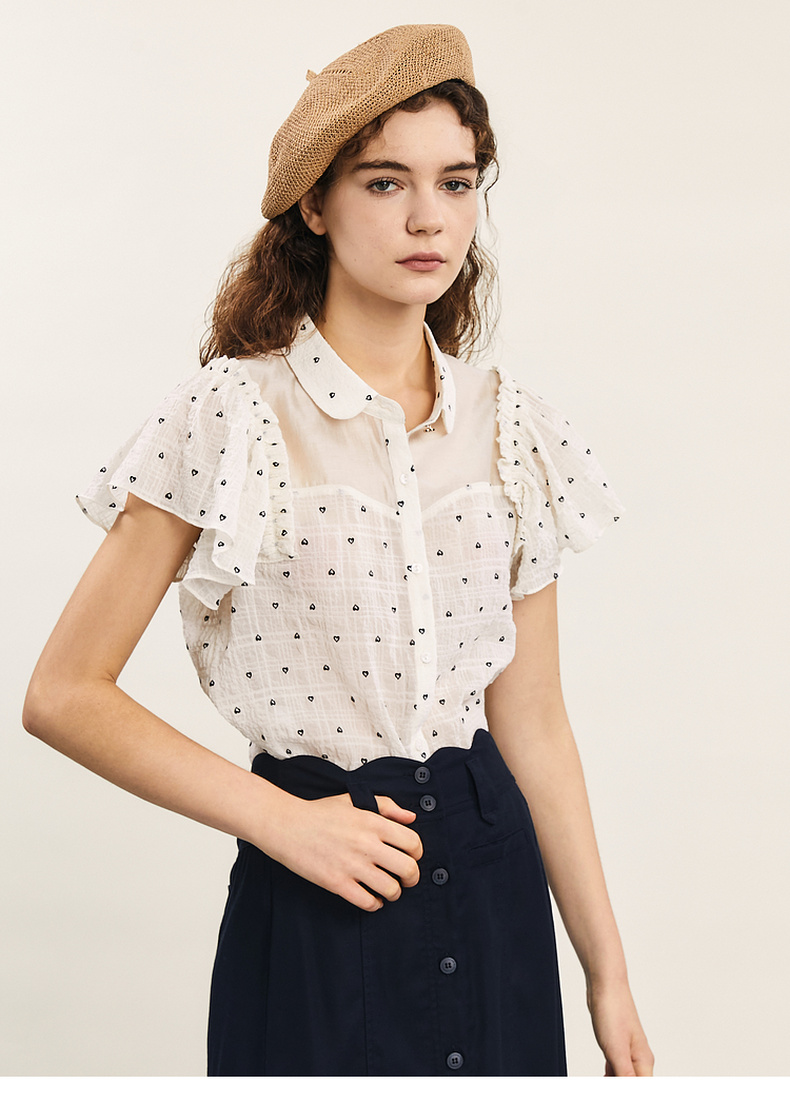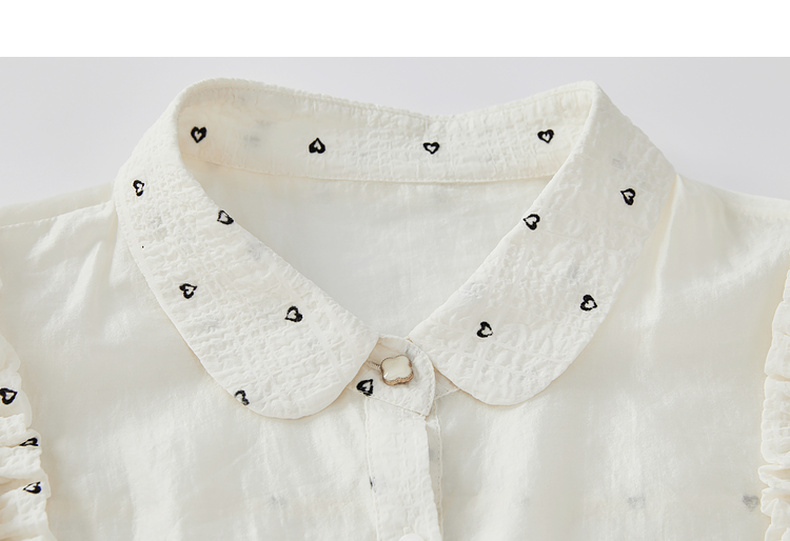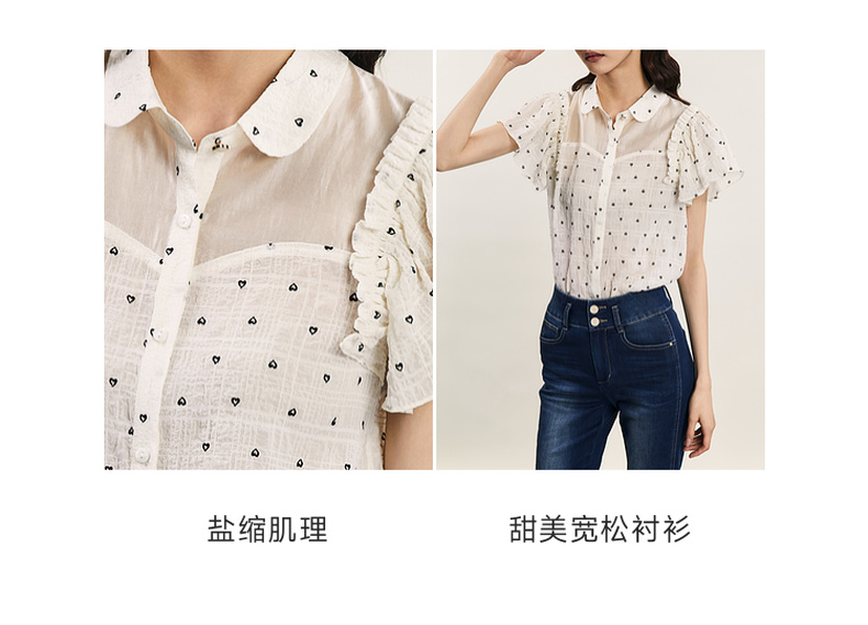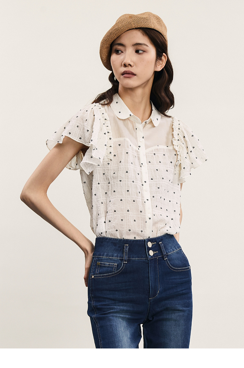 谜底衬衫短袖女2024夏季新品复古文艺风提花荷叶边衬衣242MC0670