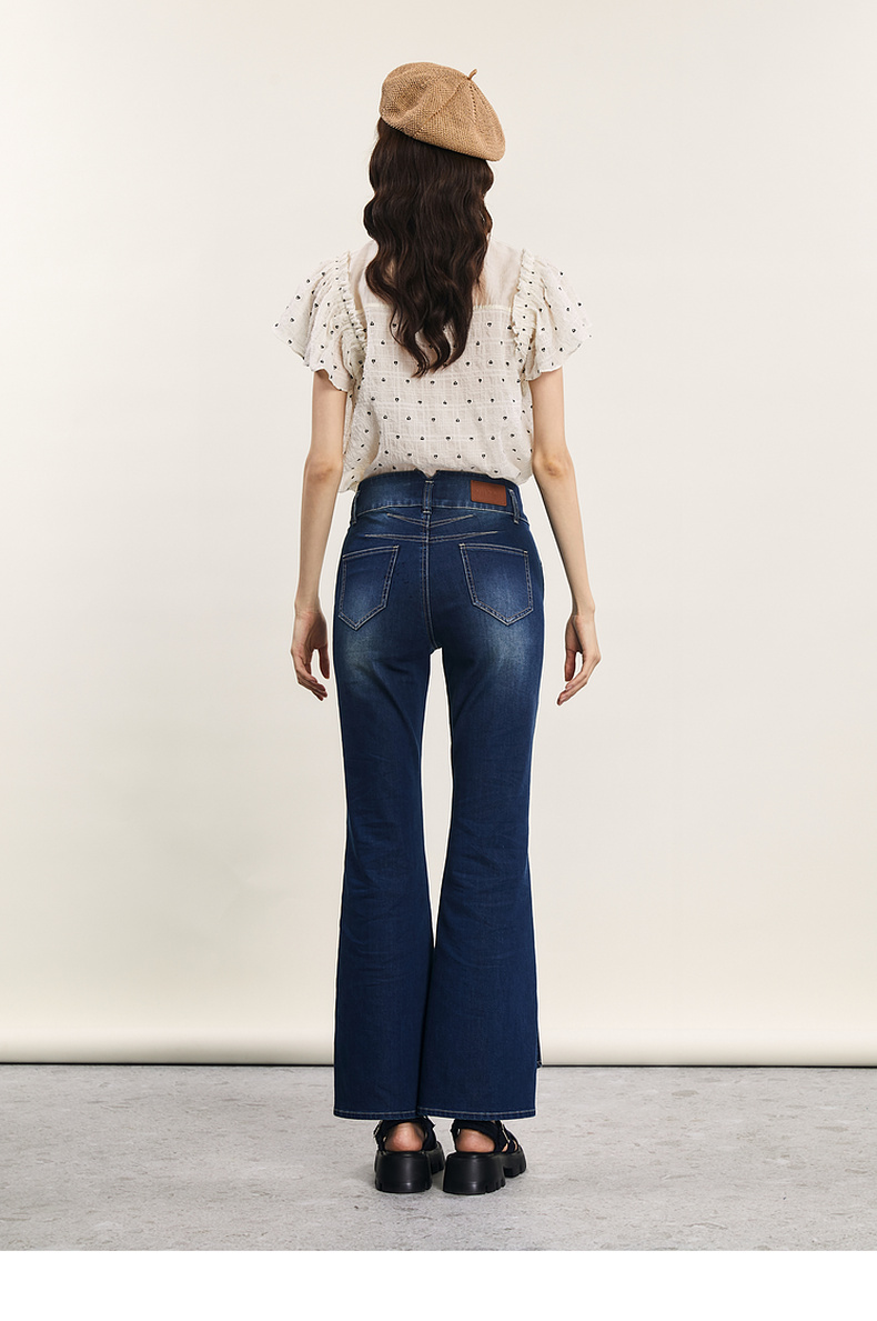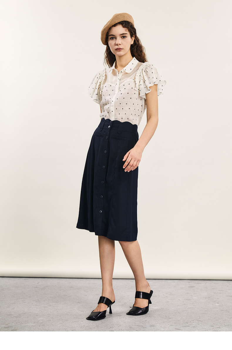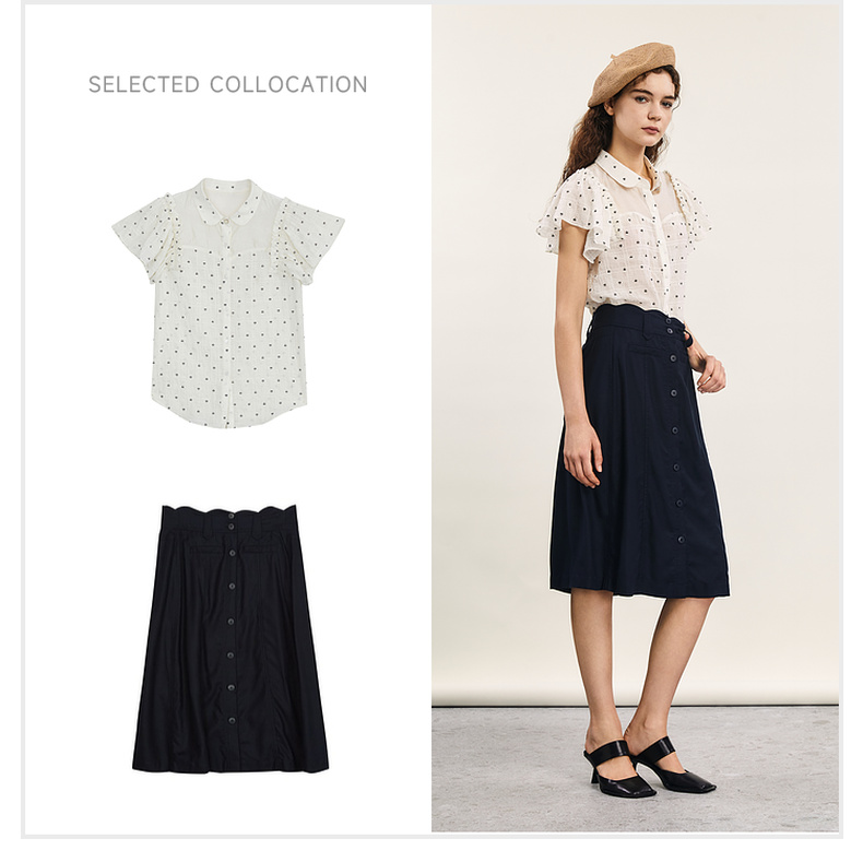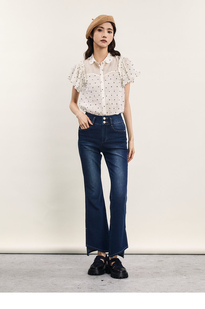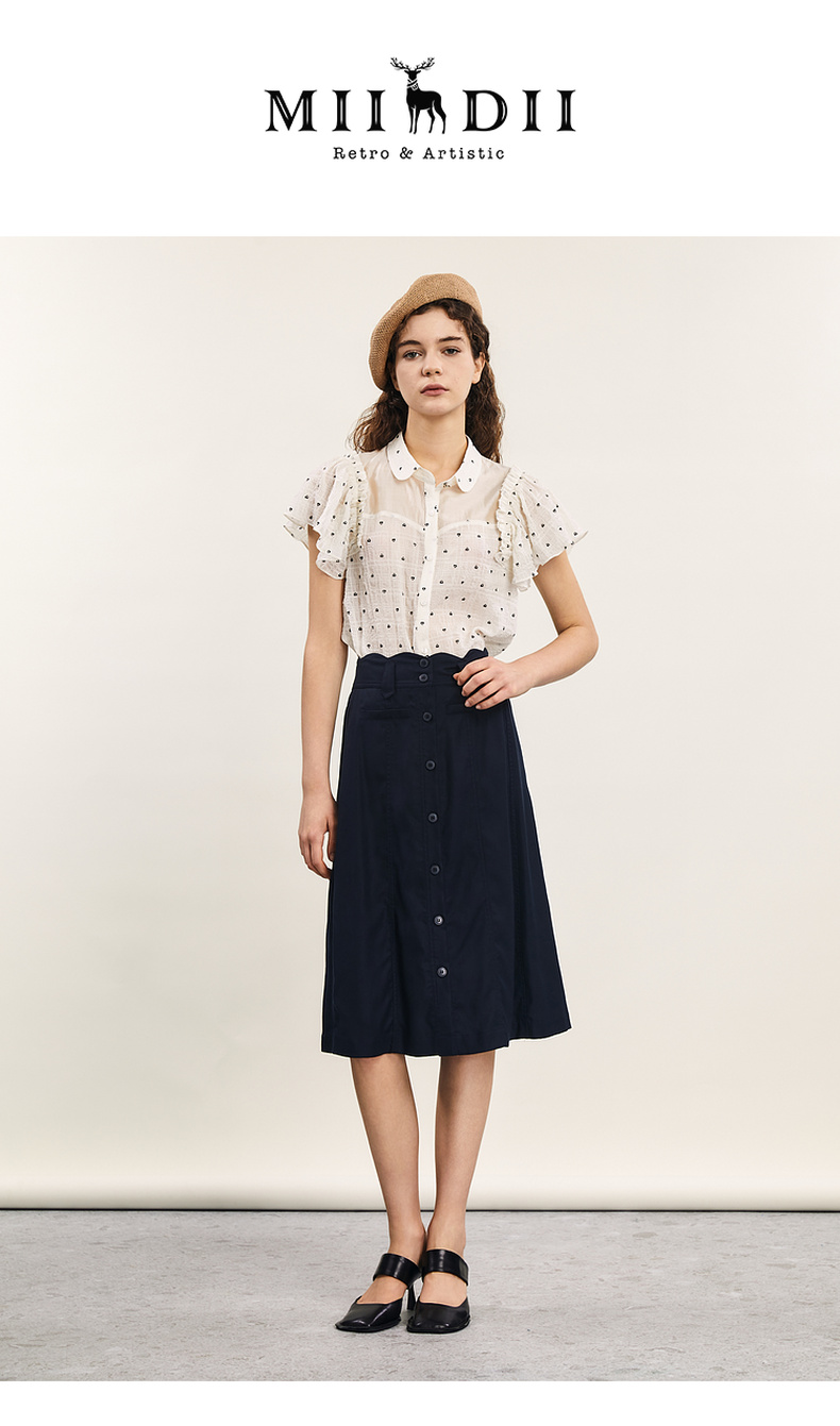 谜底衬衫短袖女2024夏季新品复古文艺风提花荷叶边衬衣242MC0670