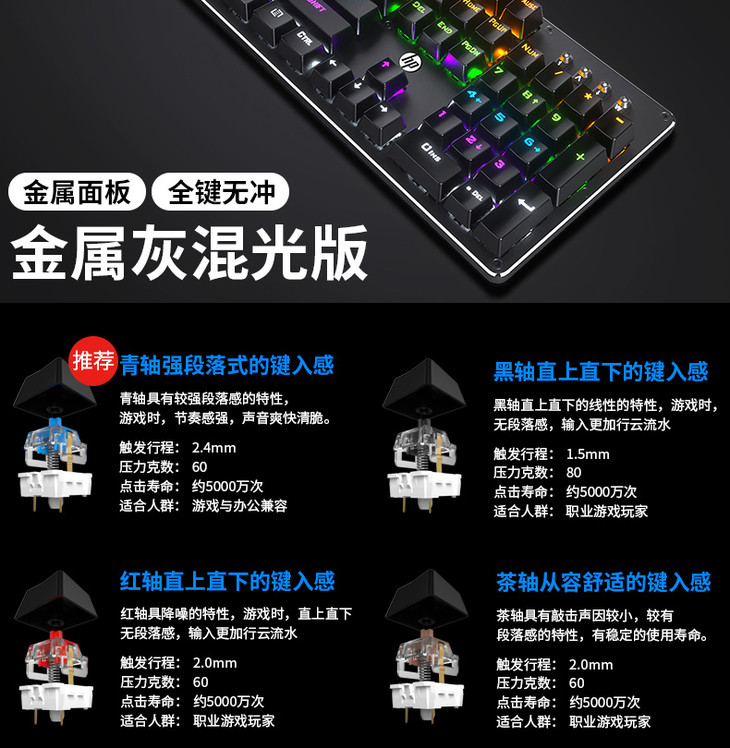 【机械键盘】GK100机械键盘青轴黑轴茶轴游戏吃鸡台式电脑笔记本有线USB单键盘