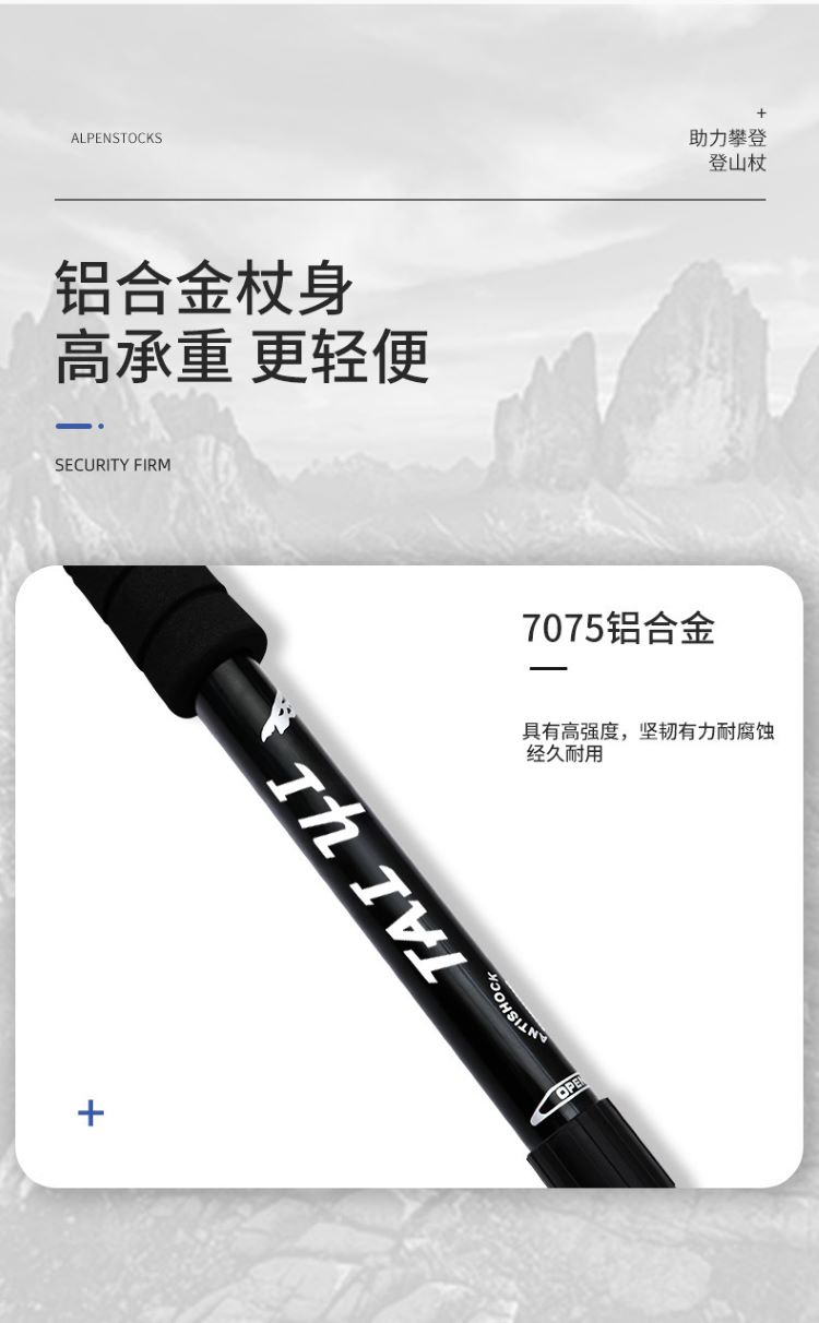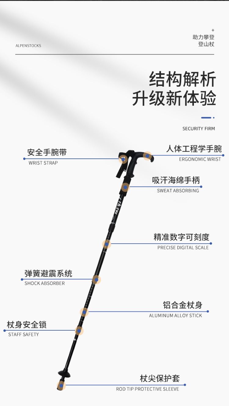 【弹簧避震!可拆卸登山杖】户外登山杖轻便伸缩杖男女爬山徒步装备防滑多功能老人拐杖。ry