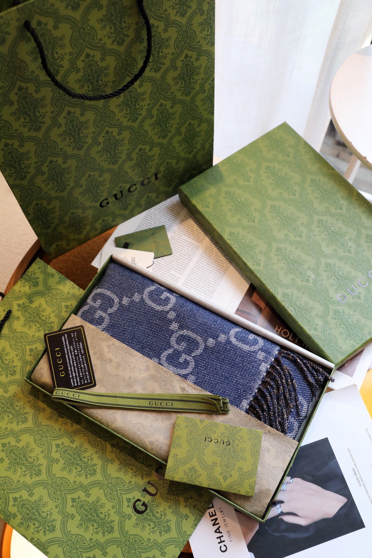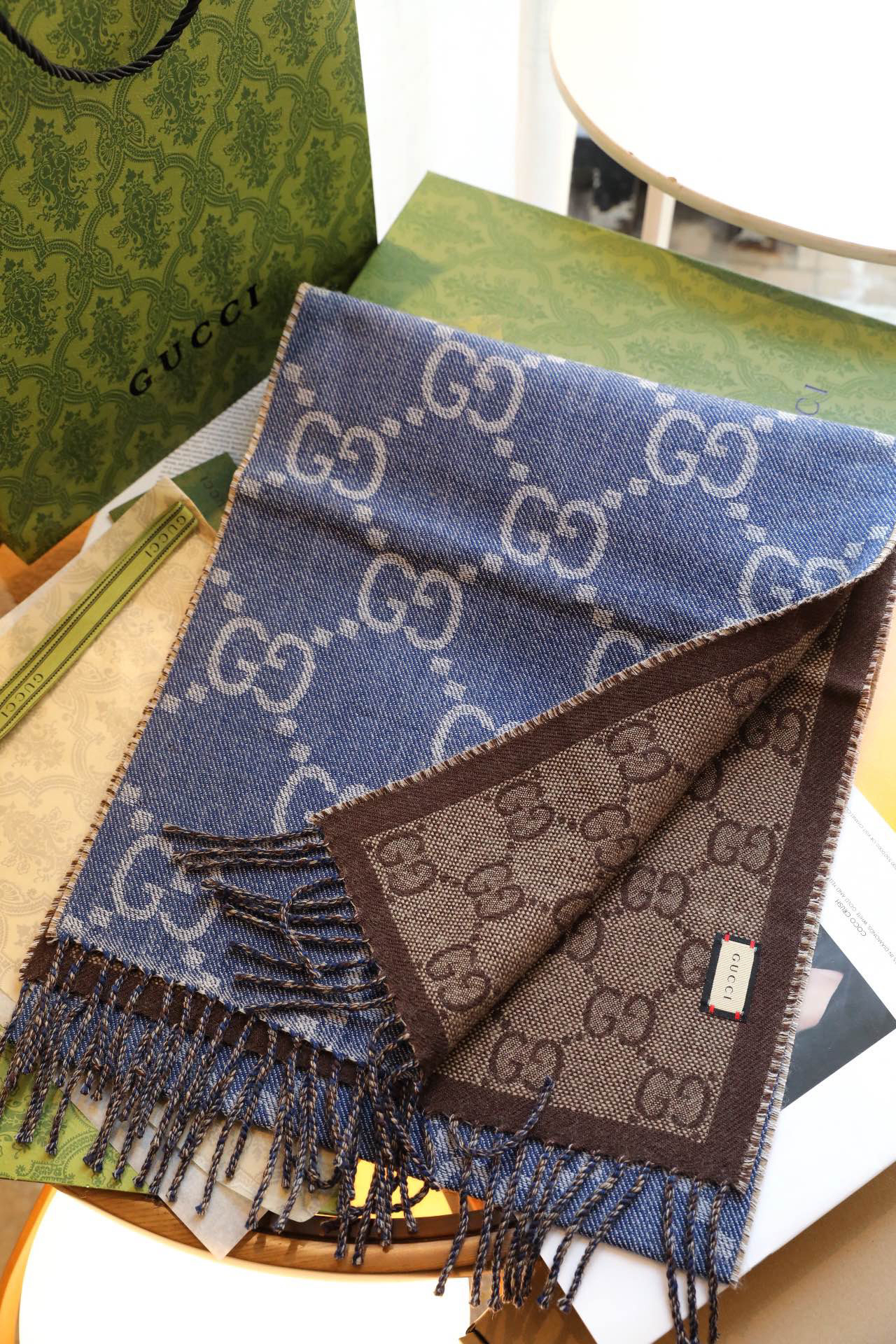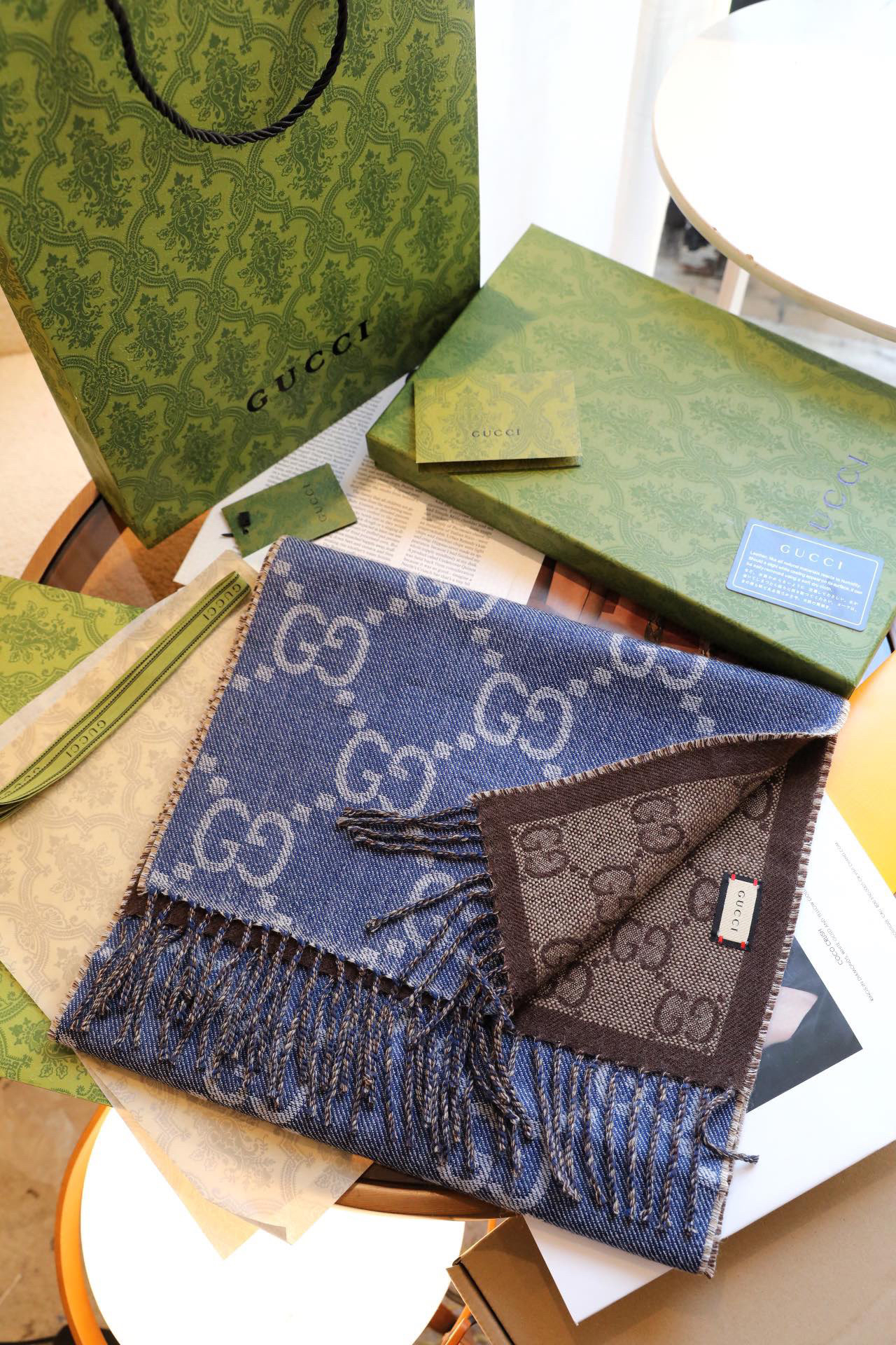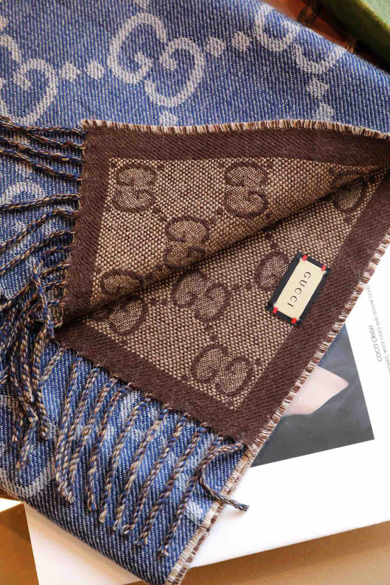 Gucci蓝色羊毛围巾