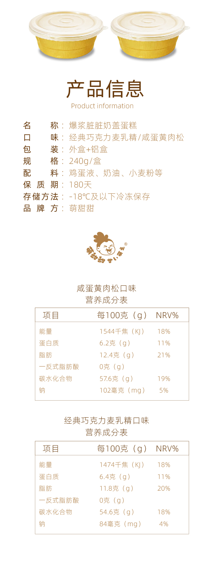 脏脏奶盖蛋糕240g(咸蛋黄肉松口味/巧克力麦乳精口味) |萌甜甜