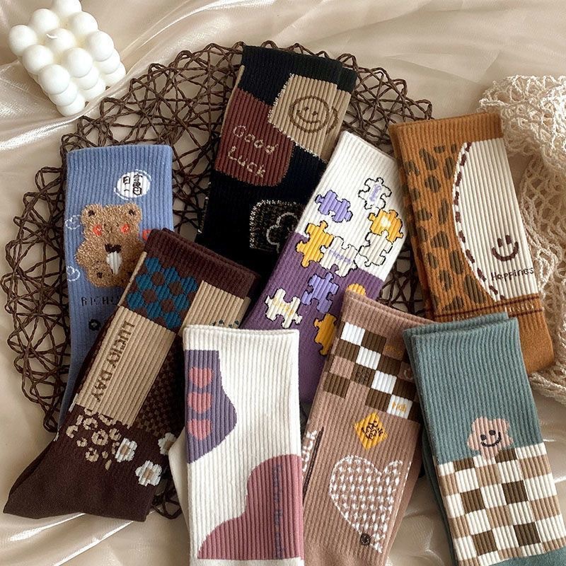 「29.9到手8双!秋冬新款」长筒袜子女ins潮韩版秋冬款加厚高筒棉袜复古色运动风学生袜配饰