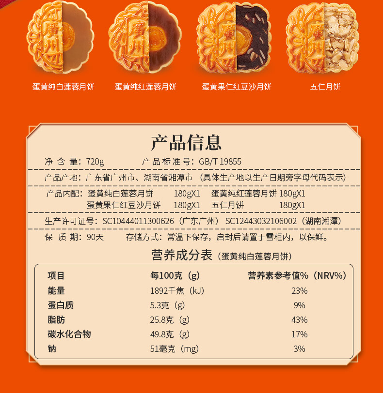 【票券同售】广州酒家经典款 | 大四喜月饼180g*4颗装