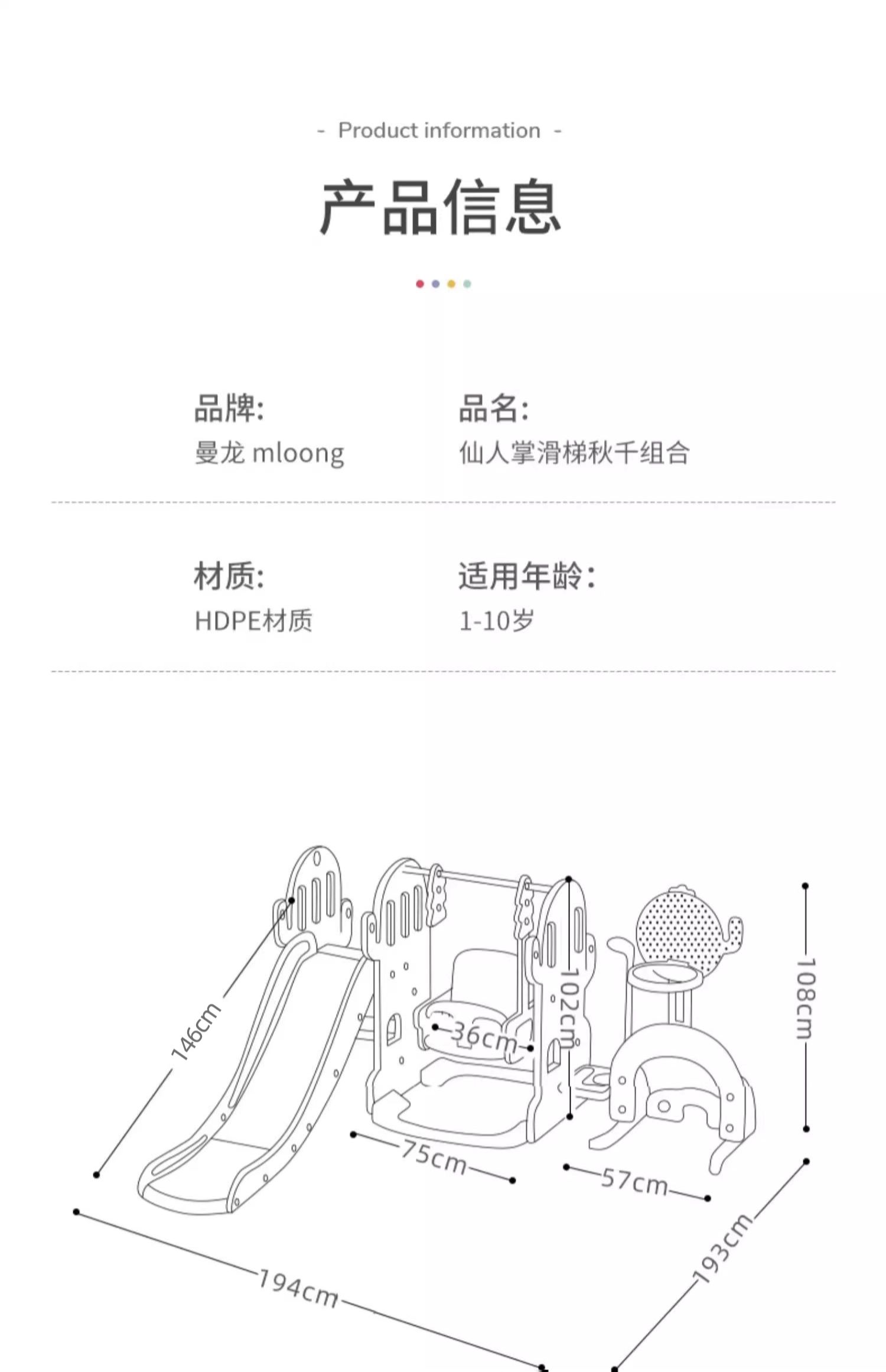 【冬日暖拥】曼龙mloong宝宝秋千滑梯组合儿童室内家用小型游乐场玩具幼儿园婴儿滑滑梯