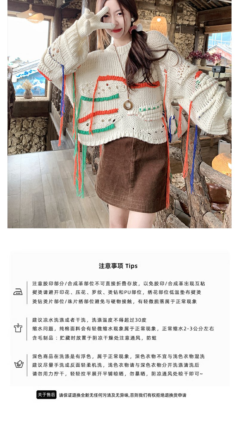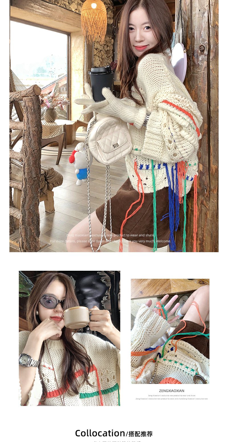 【179元任选2件】现货!韩系氛围感撞色流苏毛衣圆领