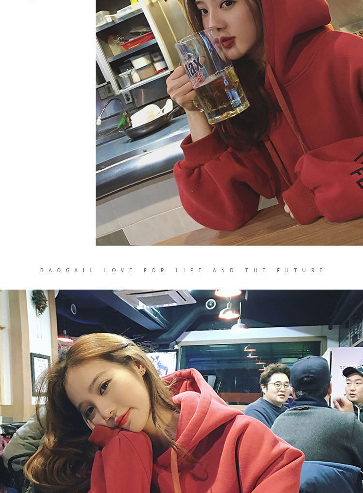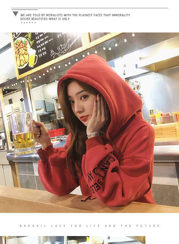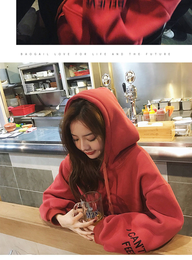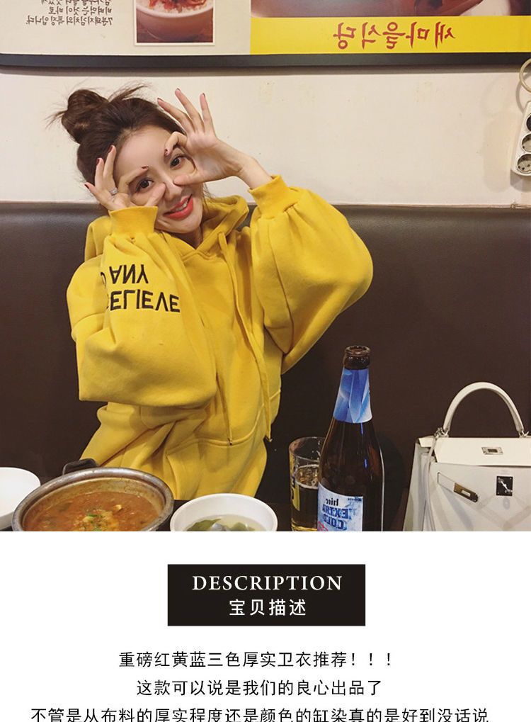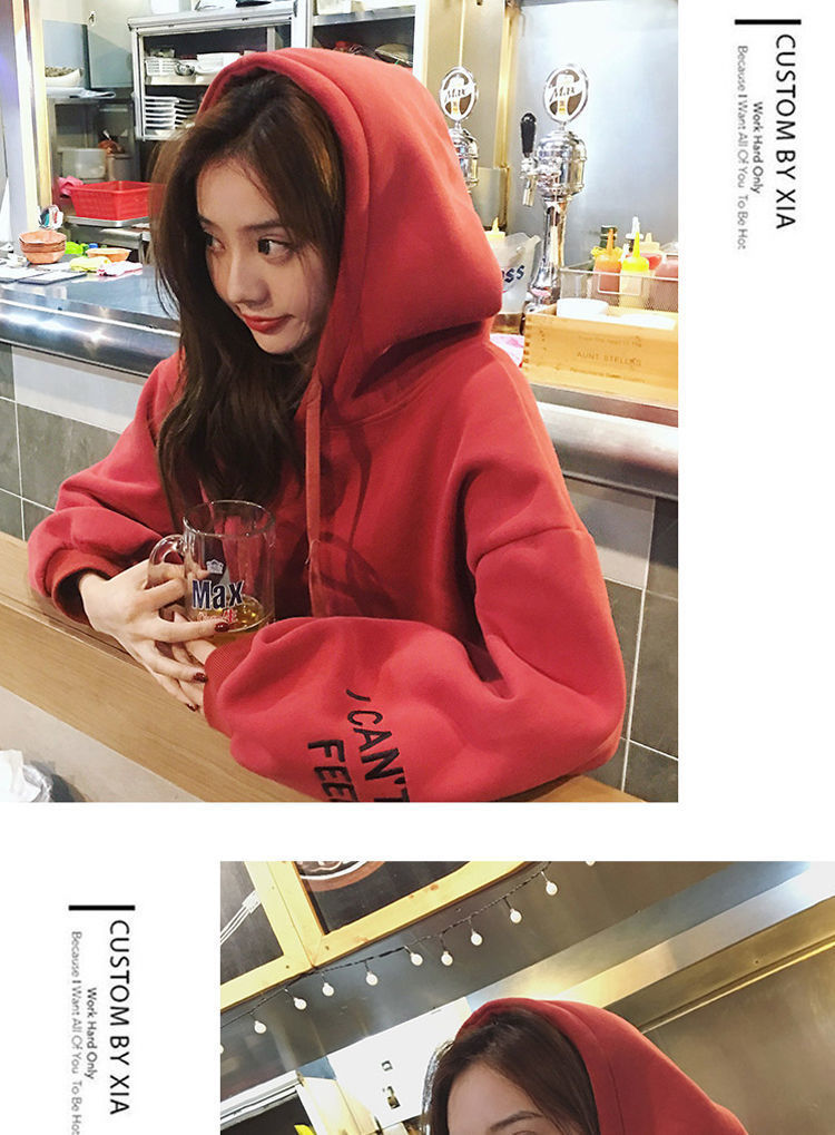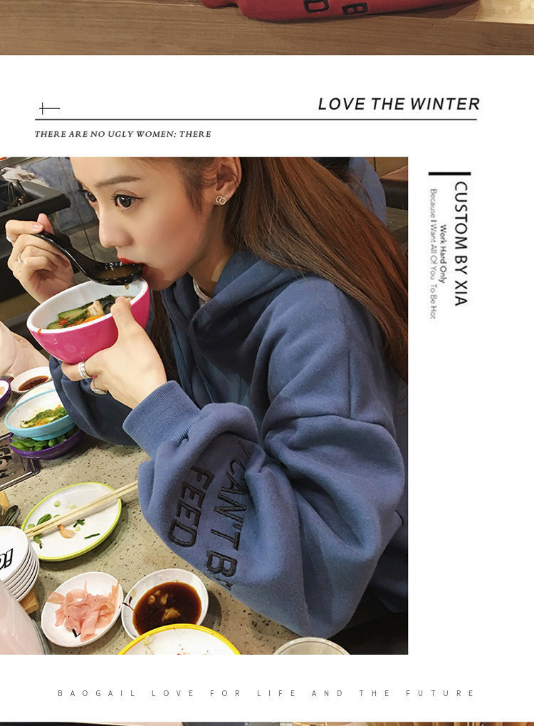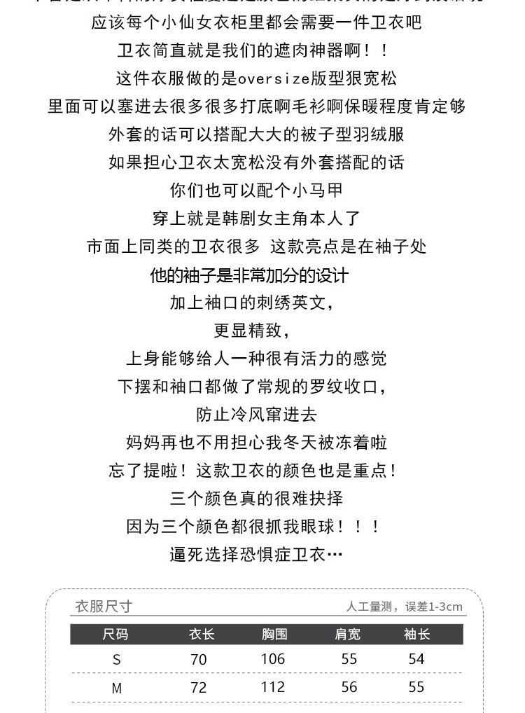 2021新款韩版洋气学生减龄ins秋冬超火宽松刺绣连帽女连帽宽松bf学院风百搭学生外套潮250g加绒加厚卫衣女
