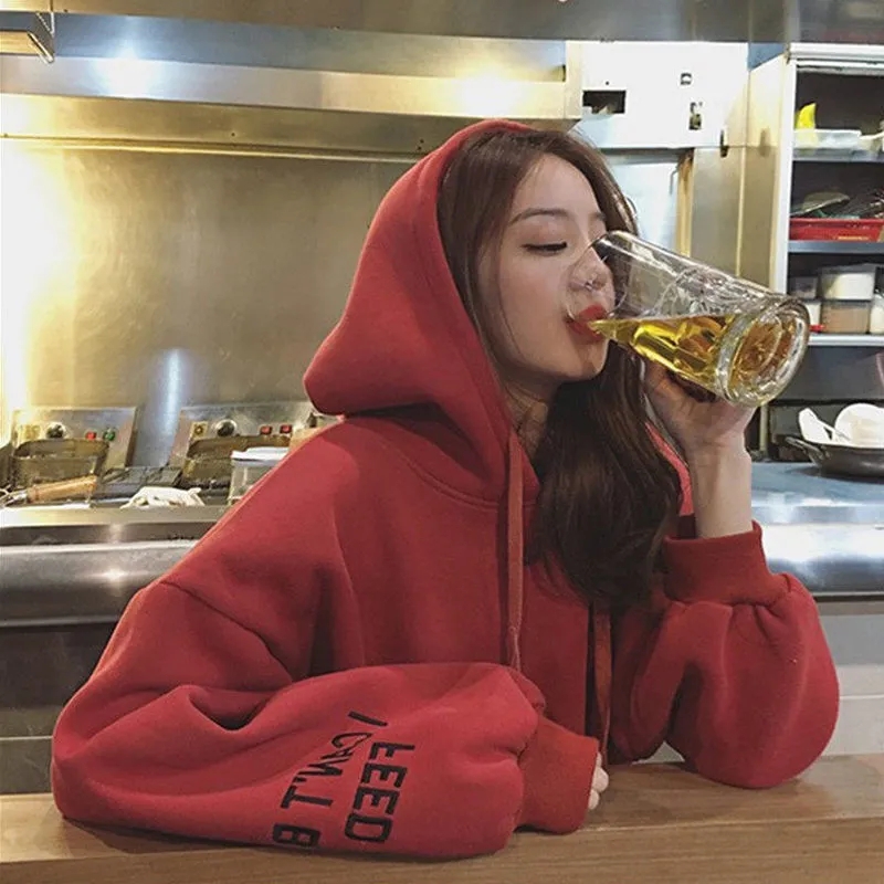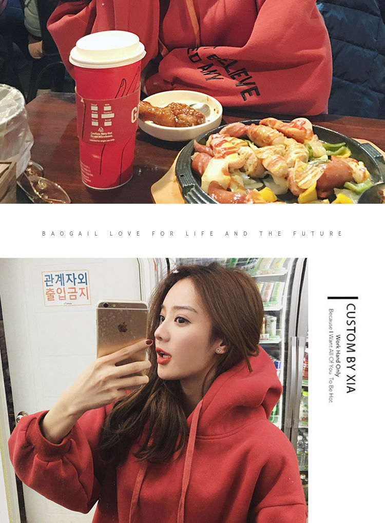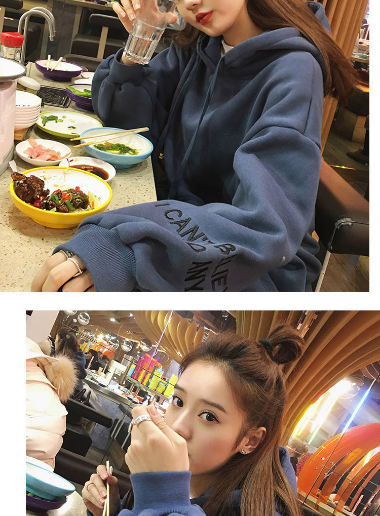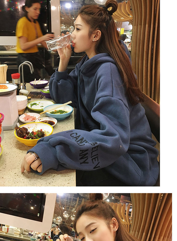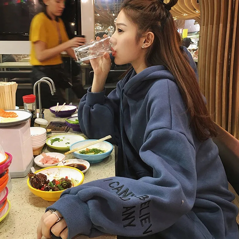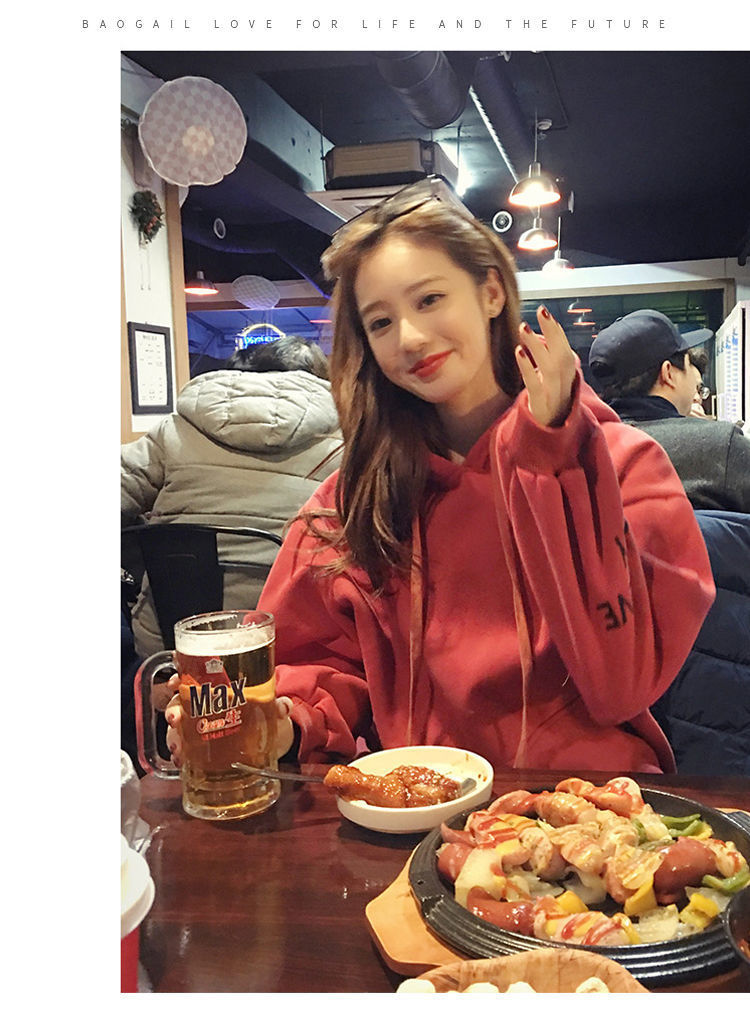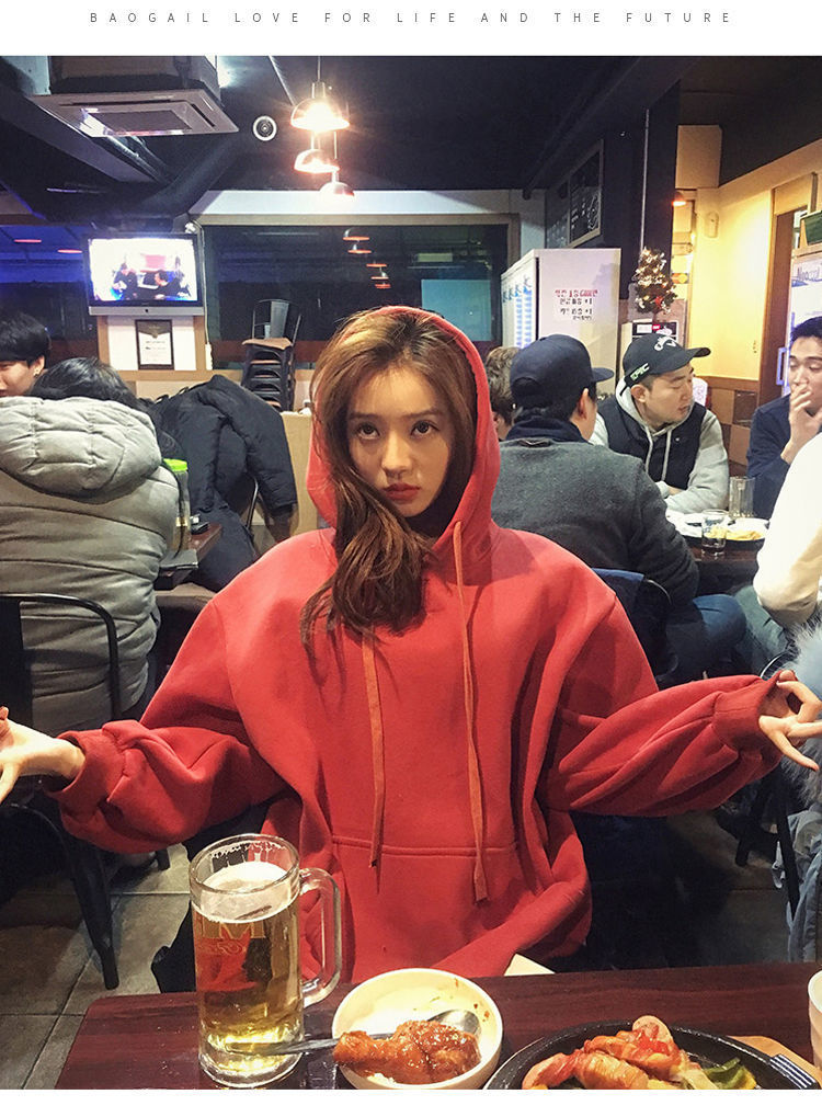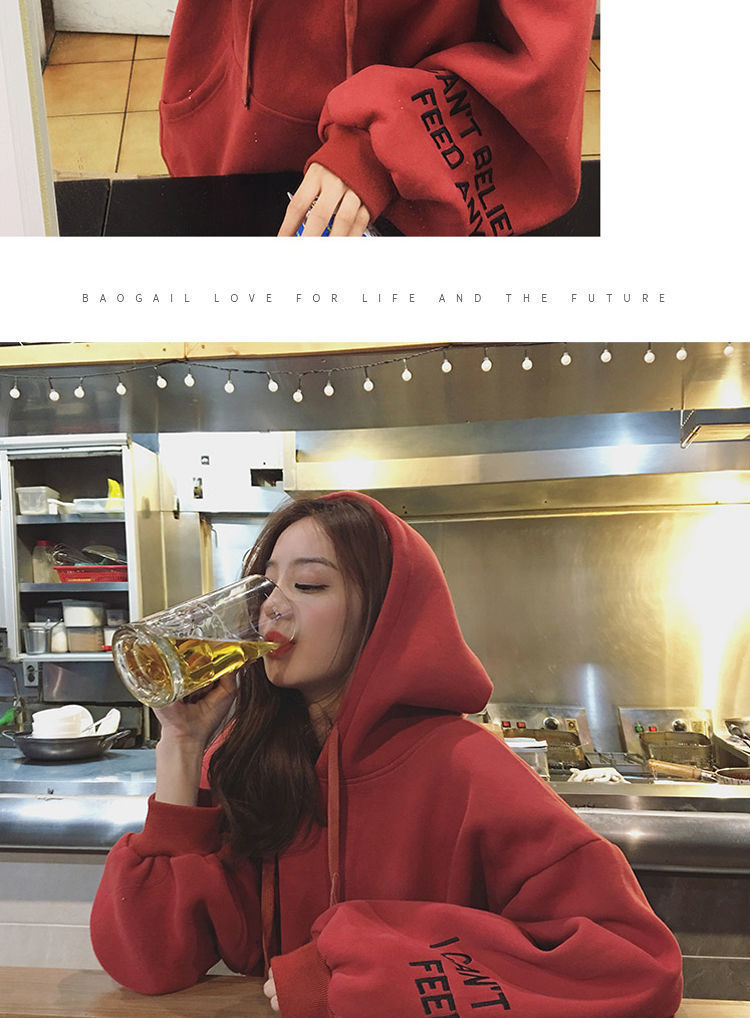 2021新款韩版洋气学生减龄ins秋冬超火宽松刺绣连帽女连帽宽松bf学院风百搭学生外套潮250g加绒加厚卫衣女