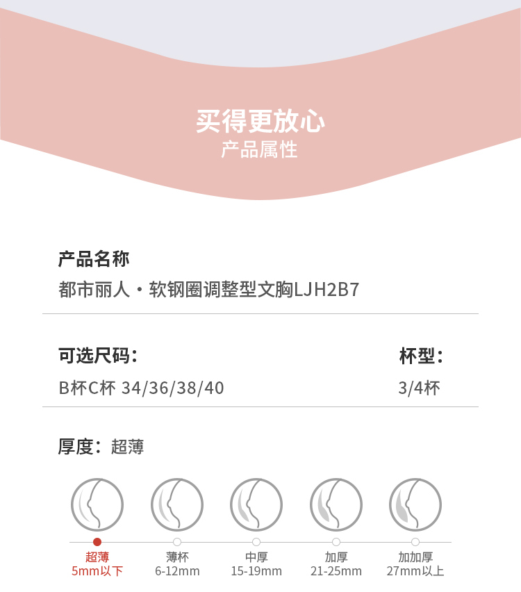 都市丽人舒软挺塑调整型文胸超薄锁边软钢圈塑身文胸LJH2B7