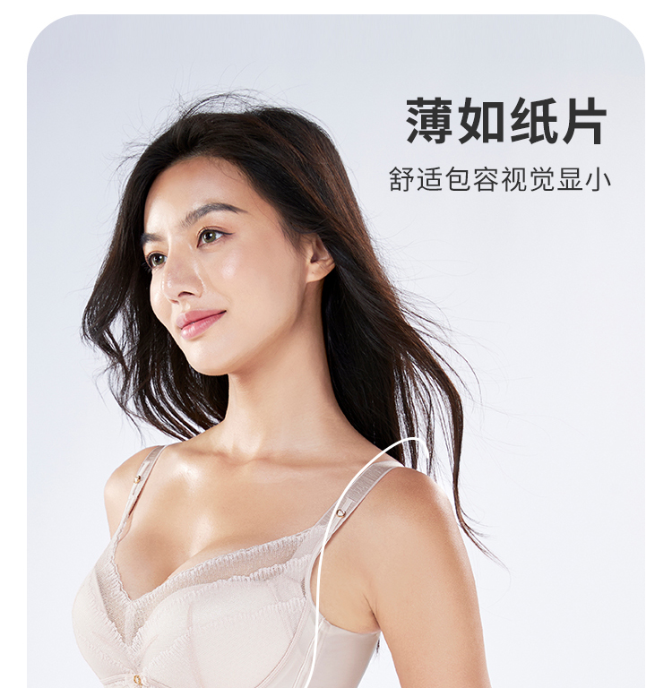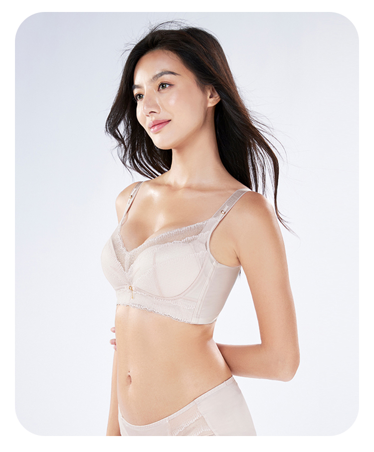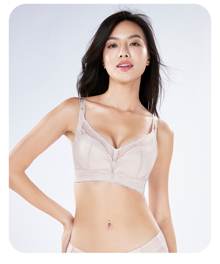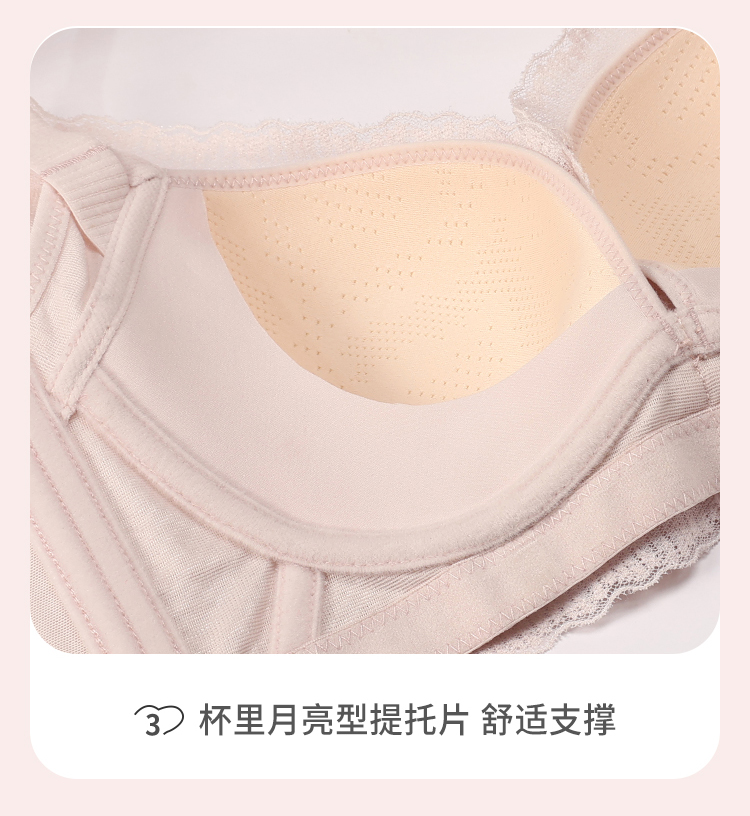 【周笔畅同款】都市丽人舒软挺塑蜜桃杯加加厚款蕾丝调整型文胸5/8杯塑身文胸无钢圈内衣五排扣LJ31H1