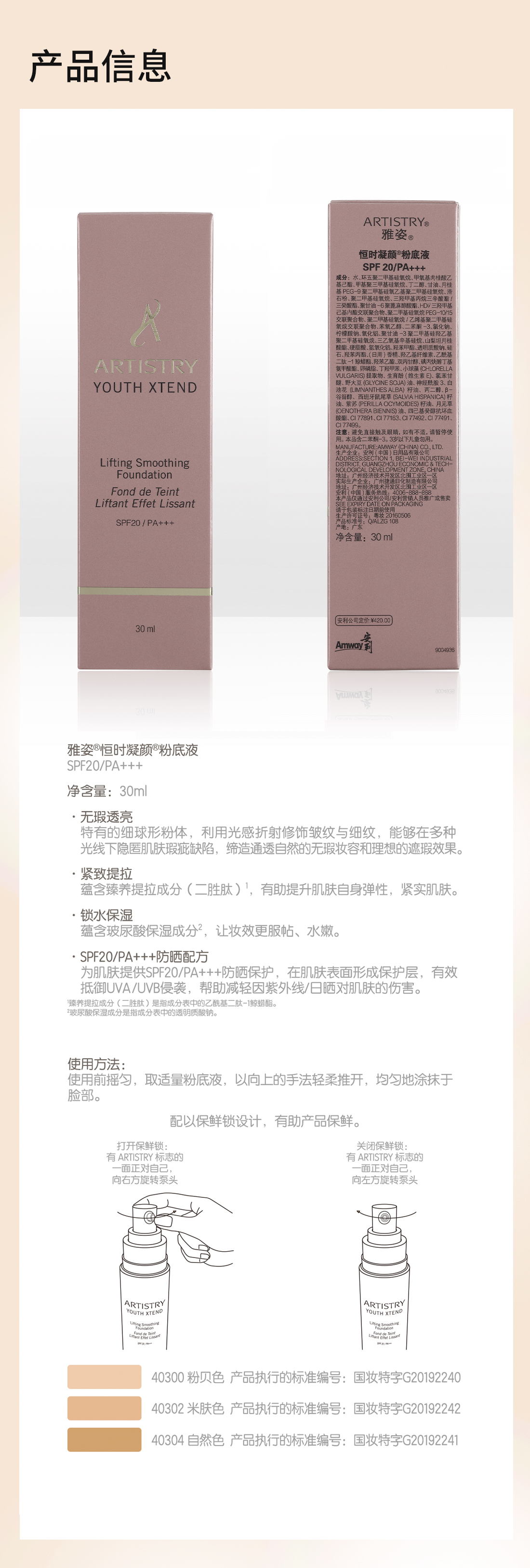 安利雅姿®恒时凝颜®粉底液SPF20PA粉贝色[3种颜色可选]