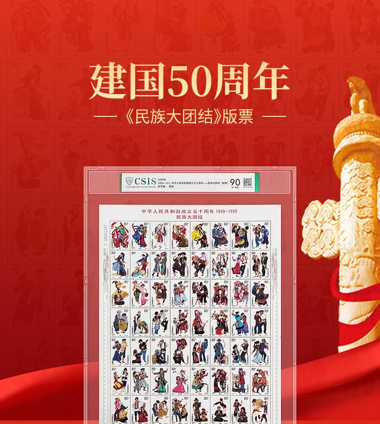 1999年成立五十周年-民族大团结(版票) 信泰评级(CSIS) 90分