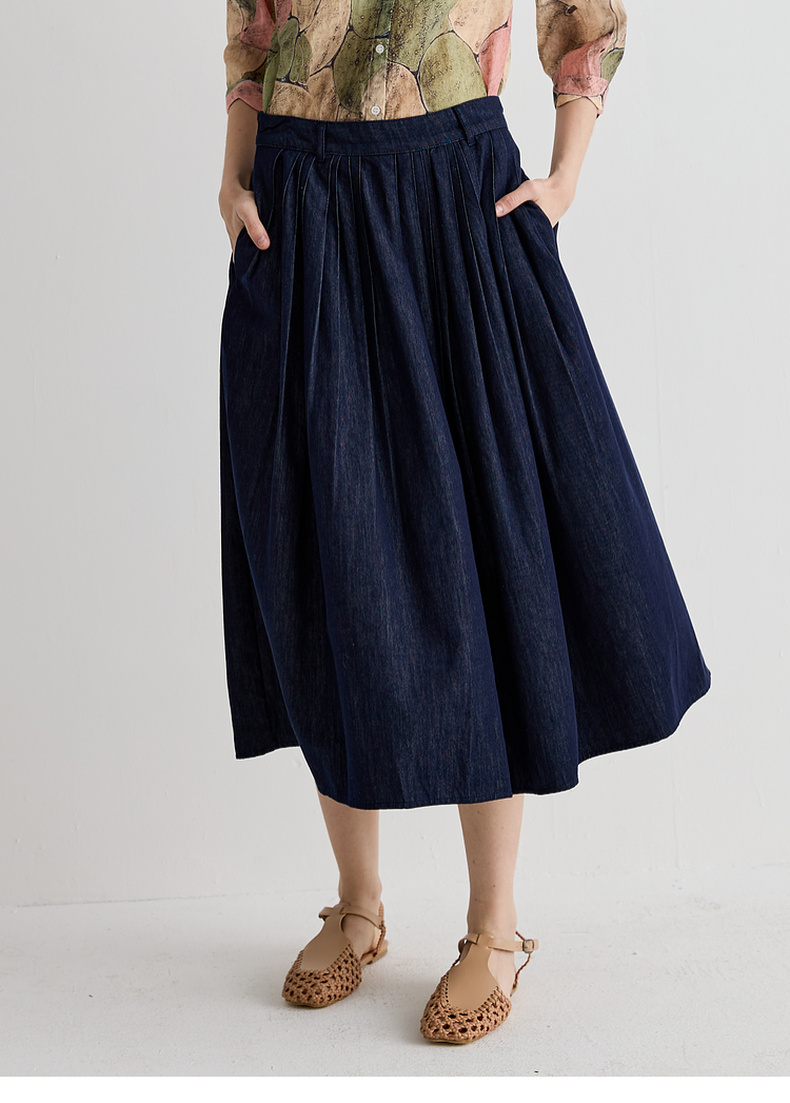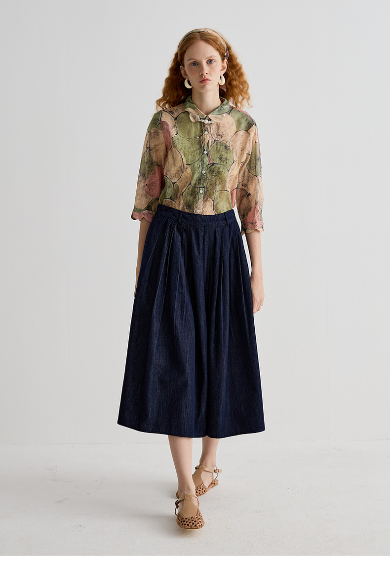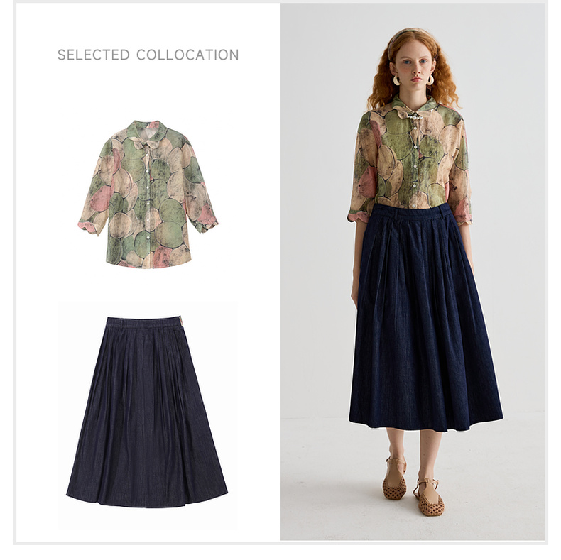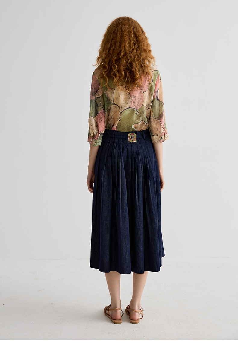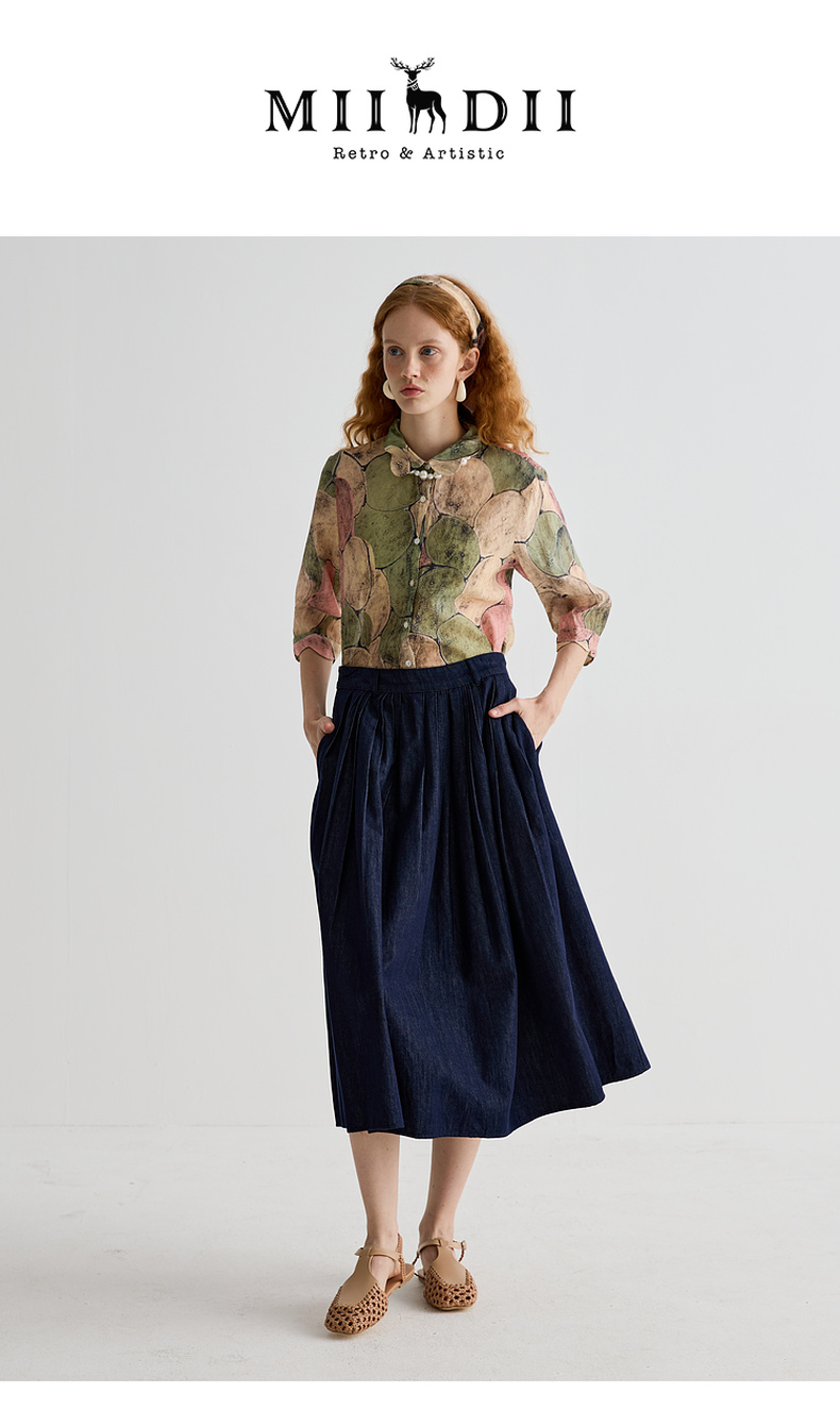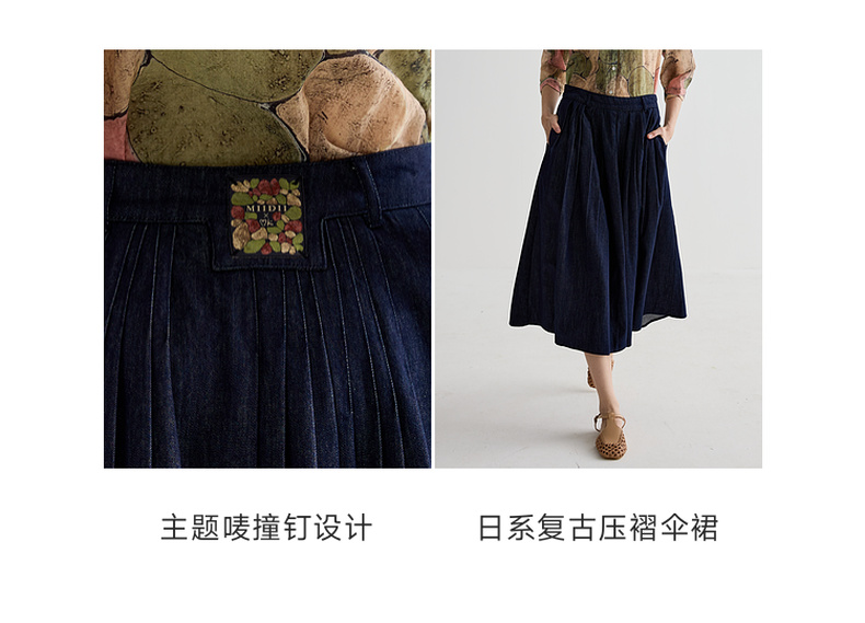 谜底半身裙女2025夏季新品通勤压褶伞裙宽松A型中长半裙252MB0632