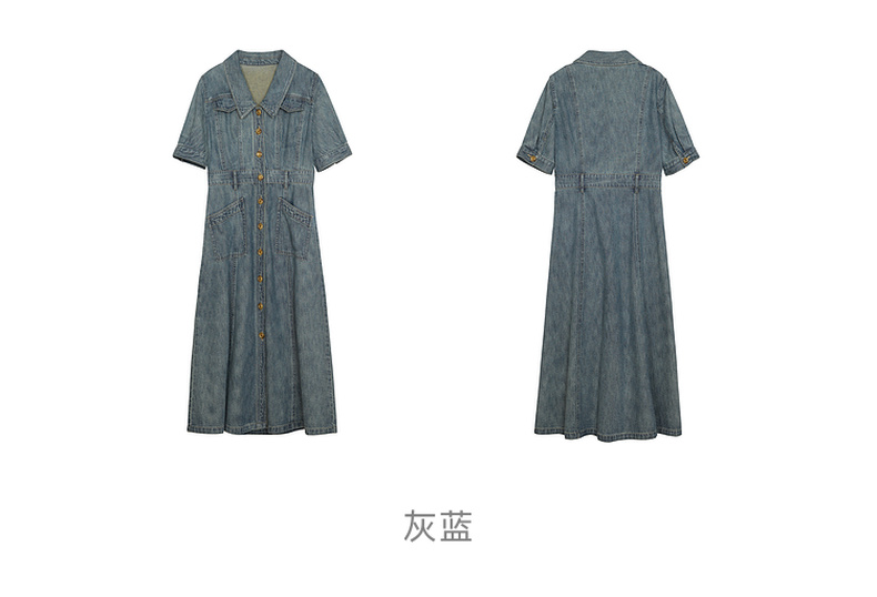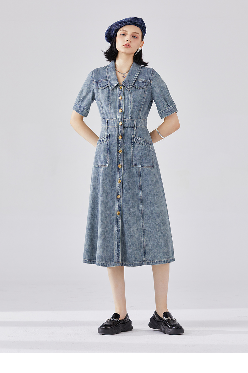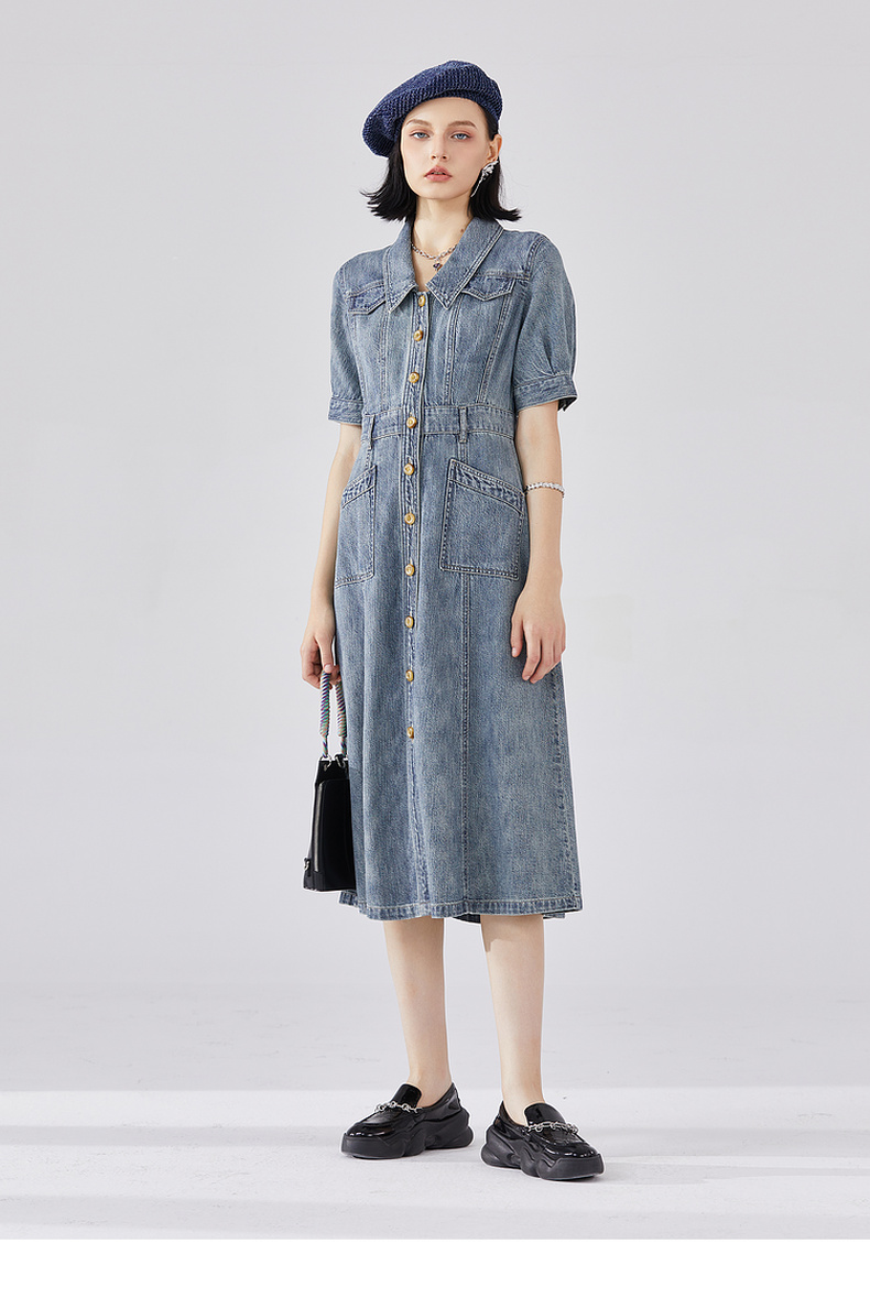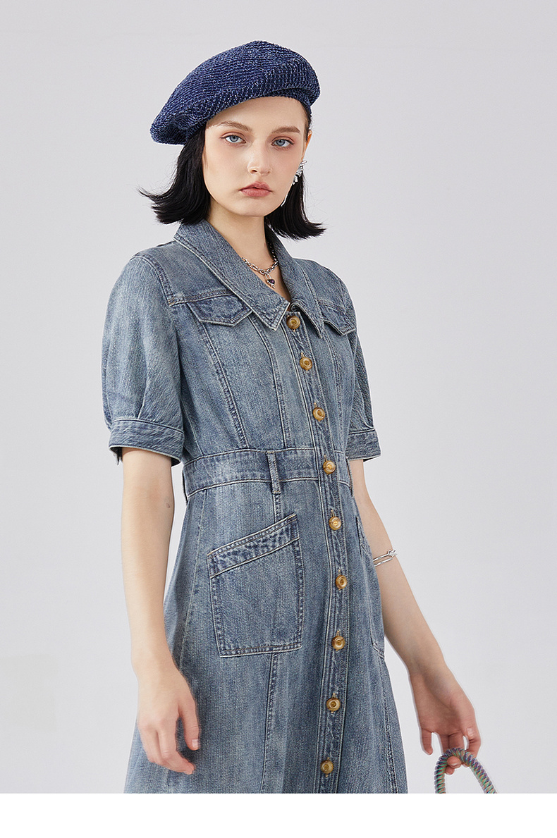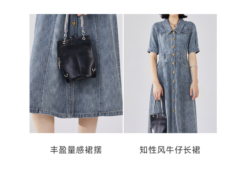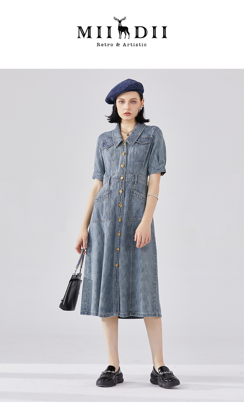 谜底水洗牛仔连衣裙短袖女2024春新款丹宁风亲肤中长裙241ML0137