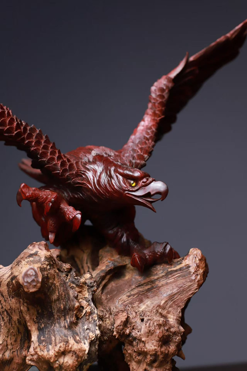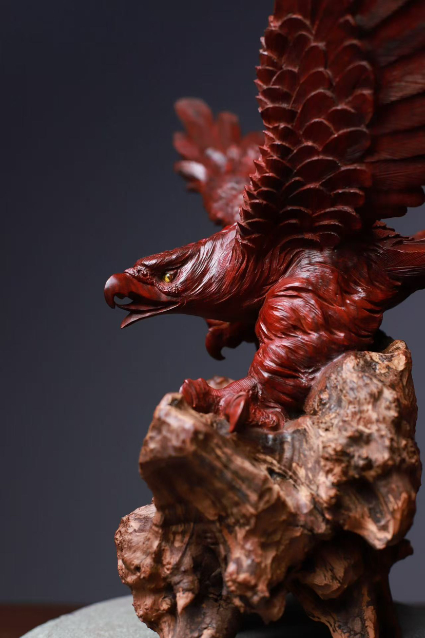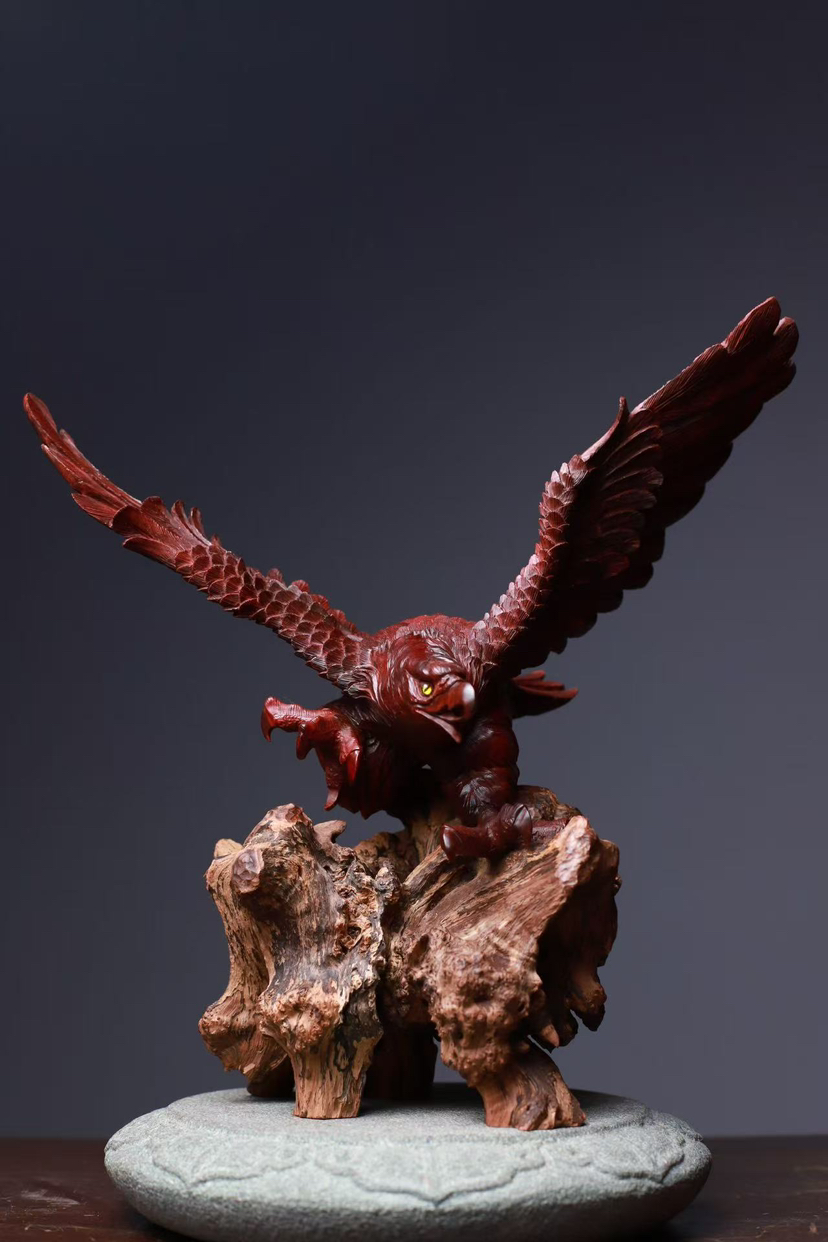 印度小叶紫檀 高油密鸡血红老料 精工雕刻气势恢弘 鹰击长空 鹏程万里 底座荔枝木