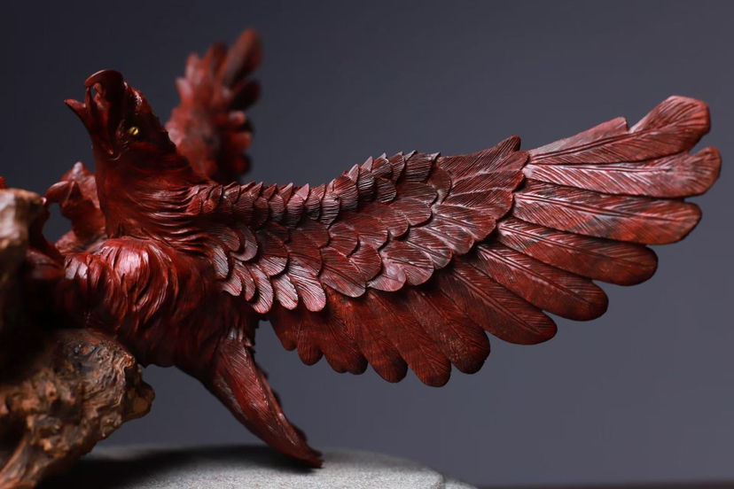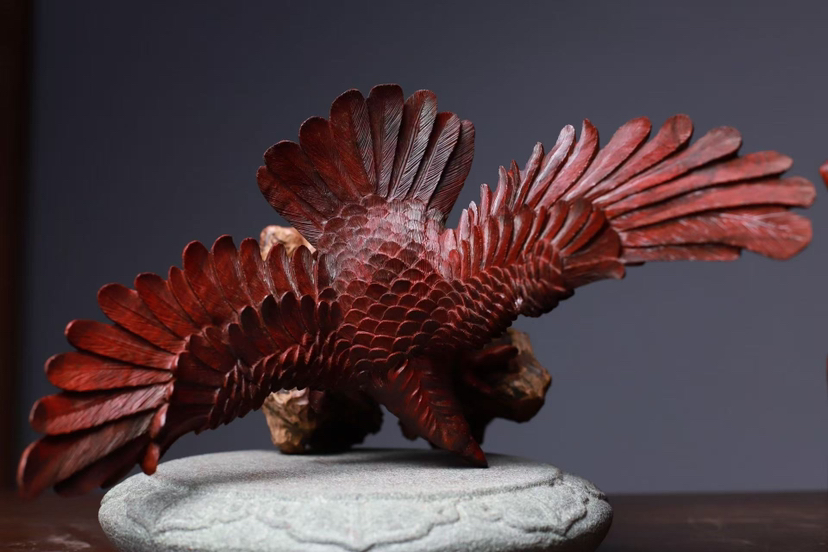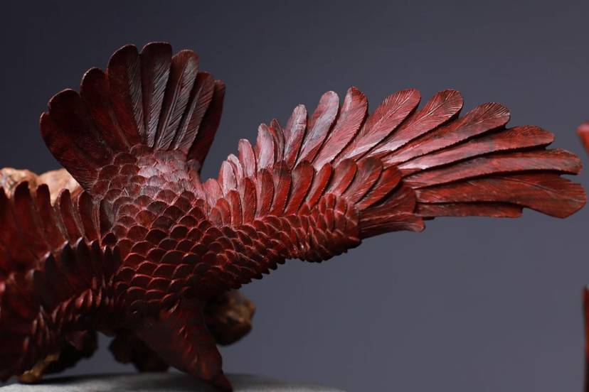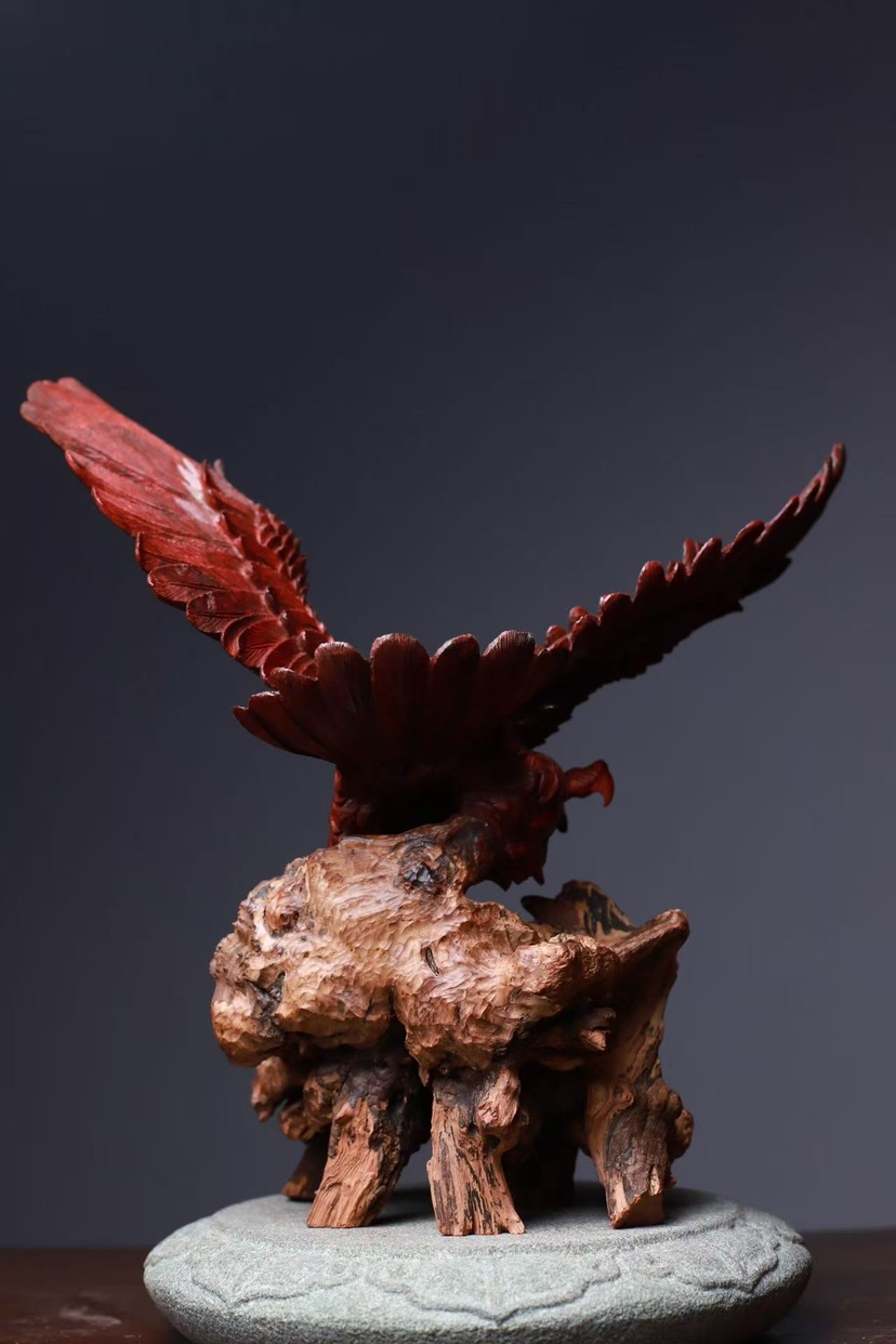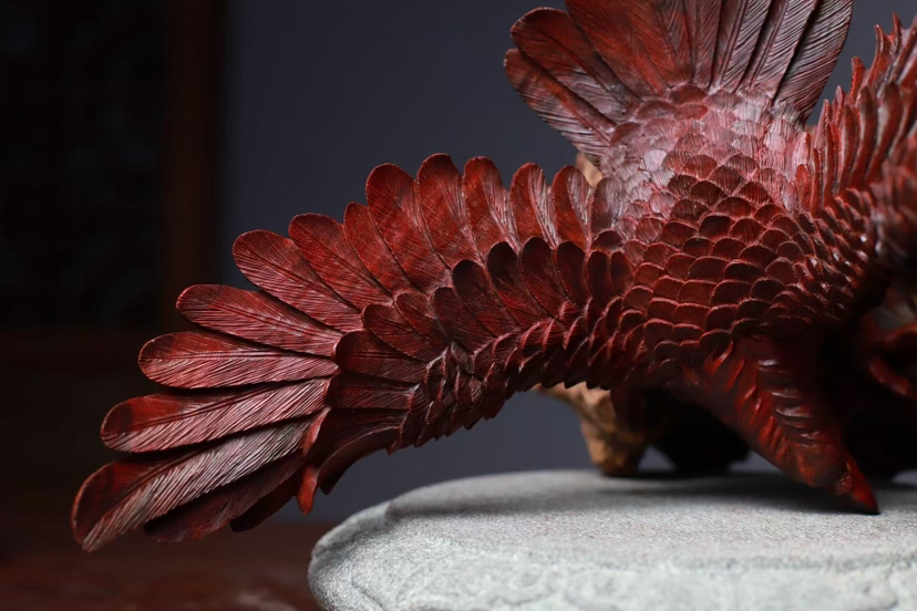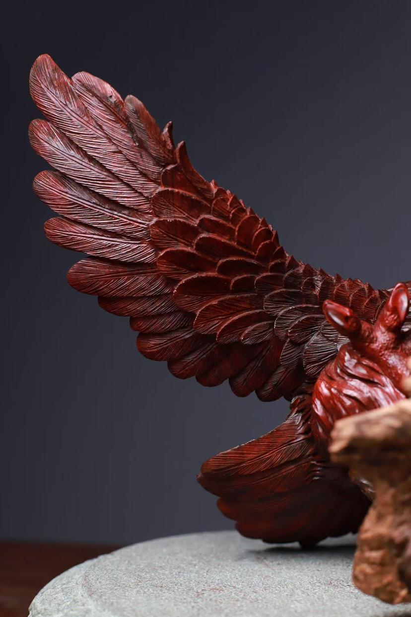 印度小叶紫檀 高油密鸡血红老料 精工雕刻气势恢弘 鹰击长空 鹏程万里 底座荔枝木