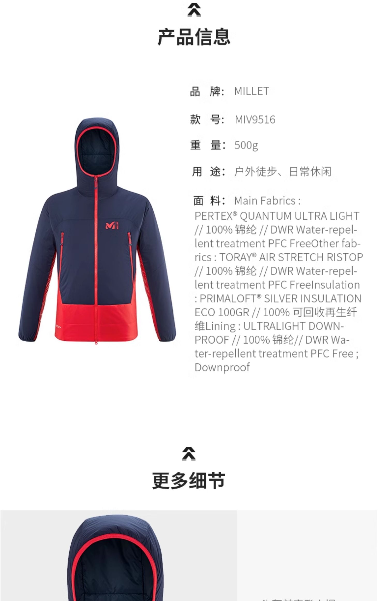 MILLET男式棉服 MIV9516 FUS AIRWARM H M