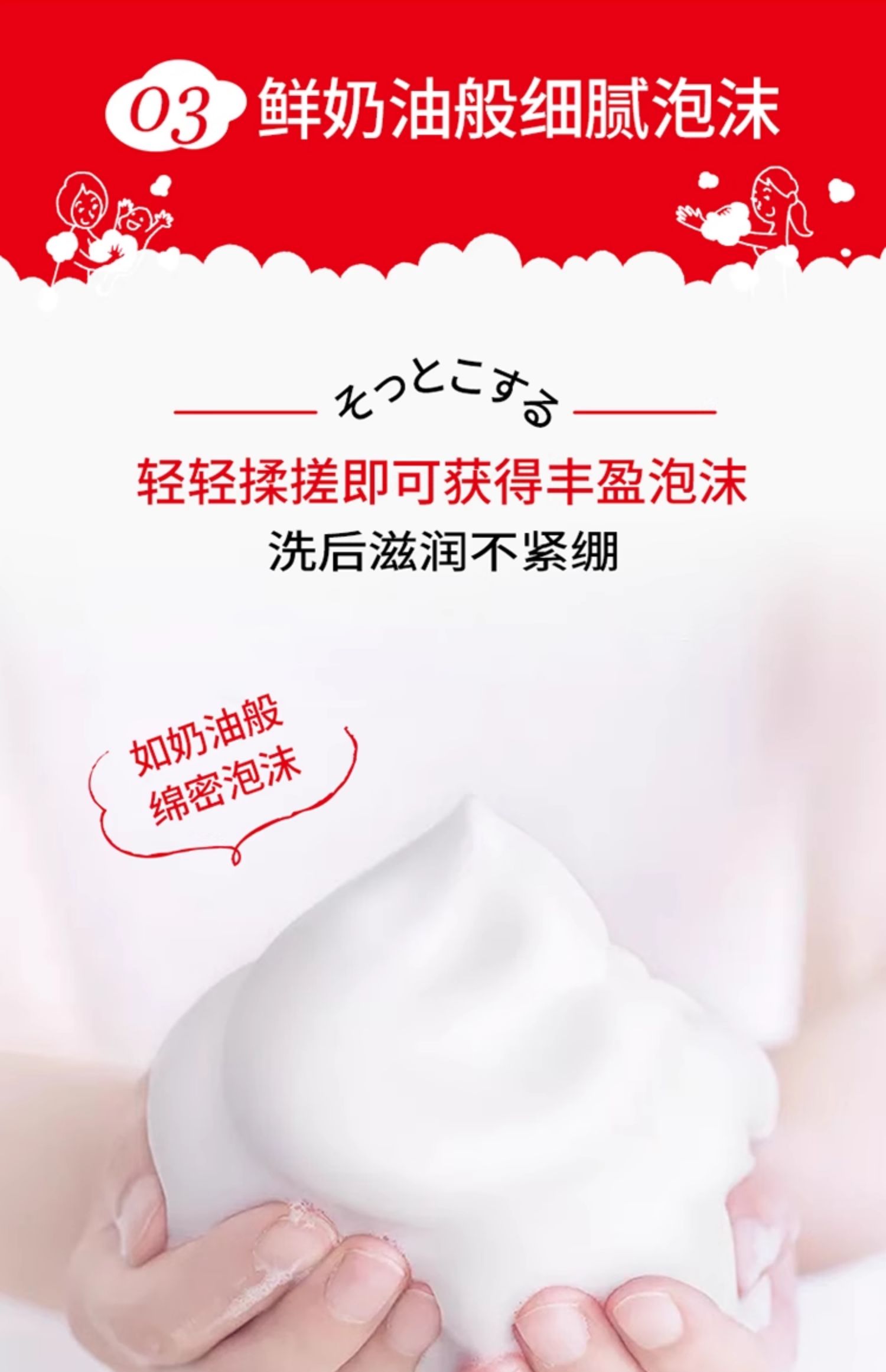 严谨的选材,采用牛乳精华+椰油的配方结合,散发沁人心脾的玫瑰花香味,温和亲肤,同时又兼顾了滋润度,不破坏皮肤屏障,洗完后干净不紧绷,同时没有一丁点负担,全家老小都适合,可用来洗手、洗澡,甚至洁面都可以哦!