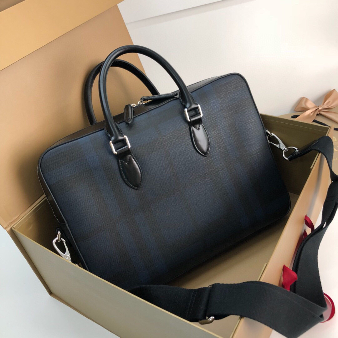 B家官网新款London 格纹公文包,搭配头层牛皮边饰,装饰马术骑士图案。可缔造手提造型,或使用可拆式背带便于肩背。肩带可调节,上身效果超赞!尺寸:37 x 9 x 27cm!
