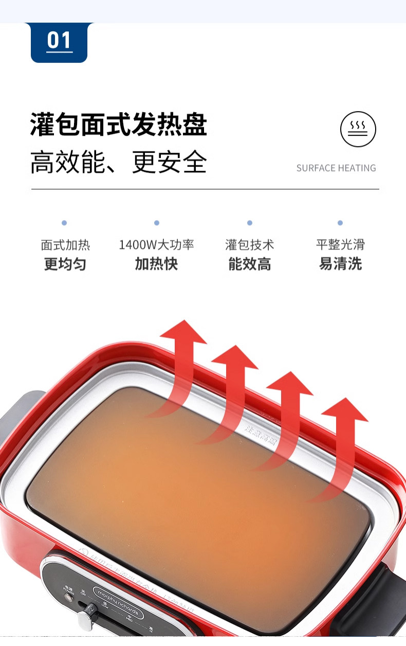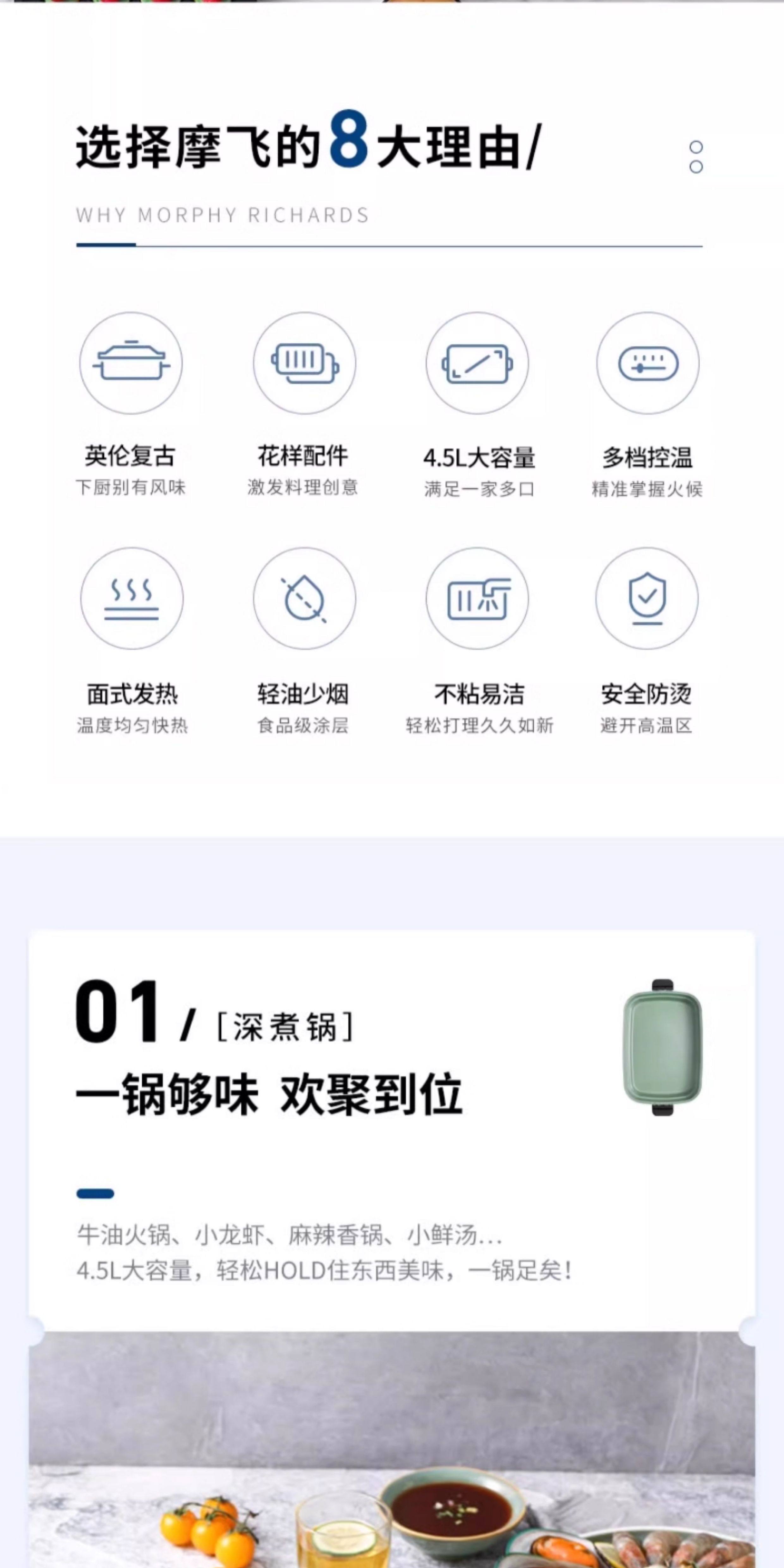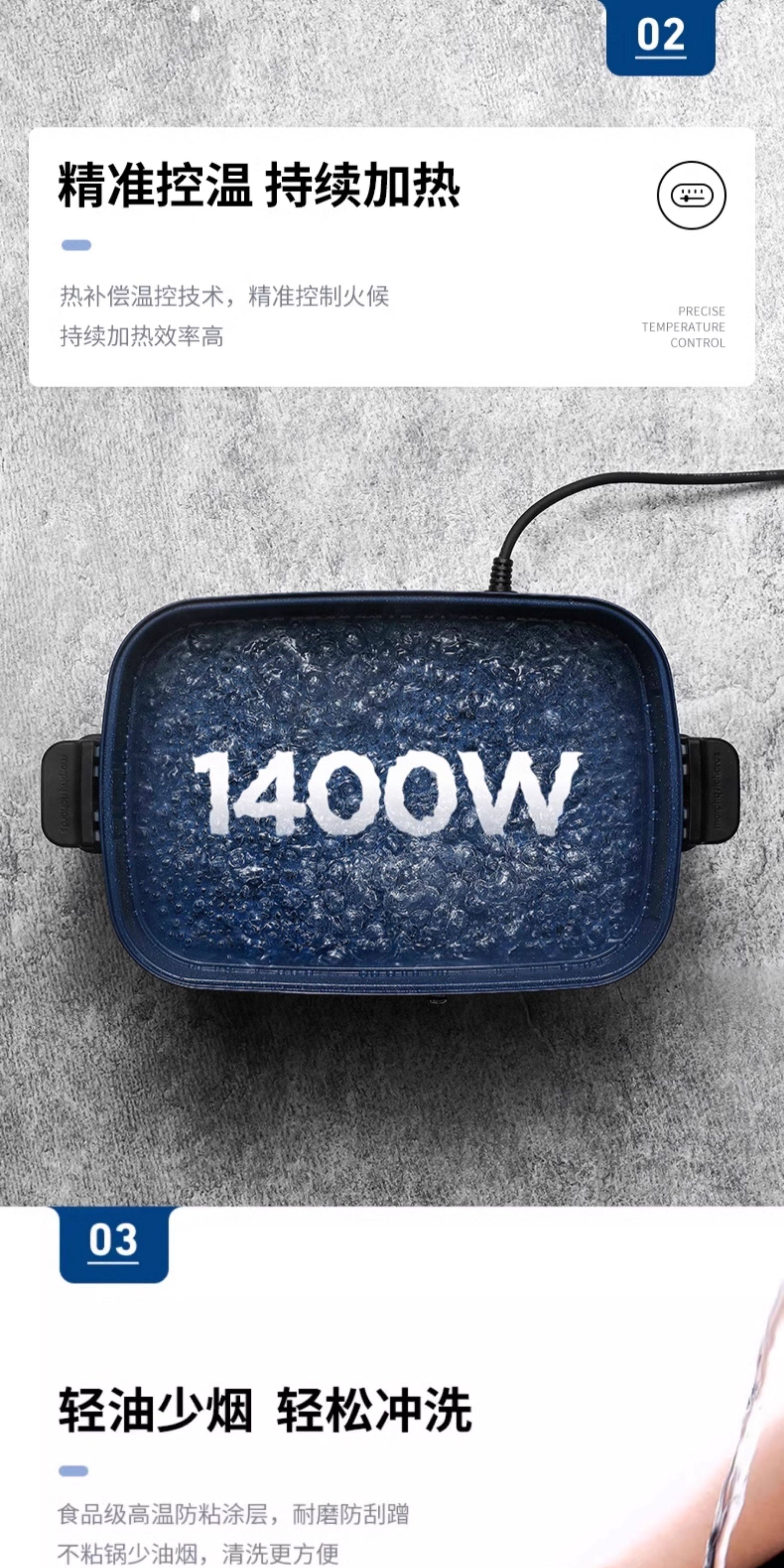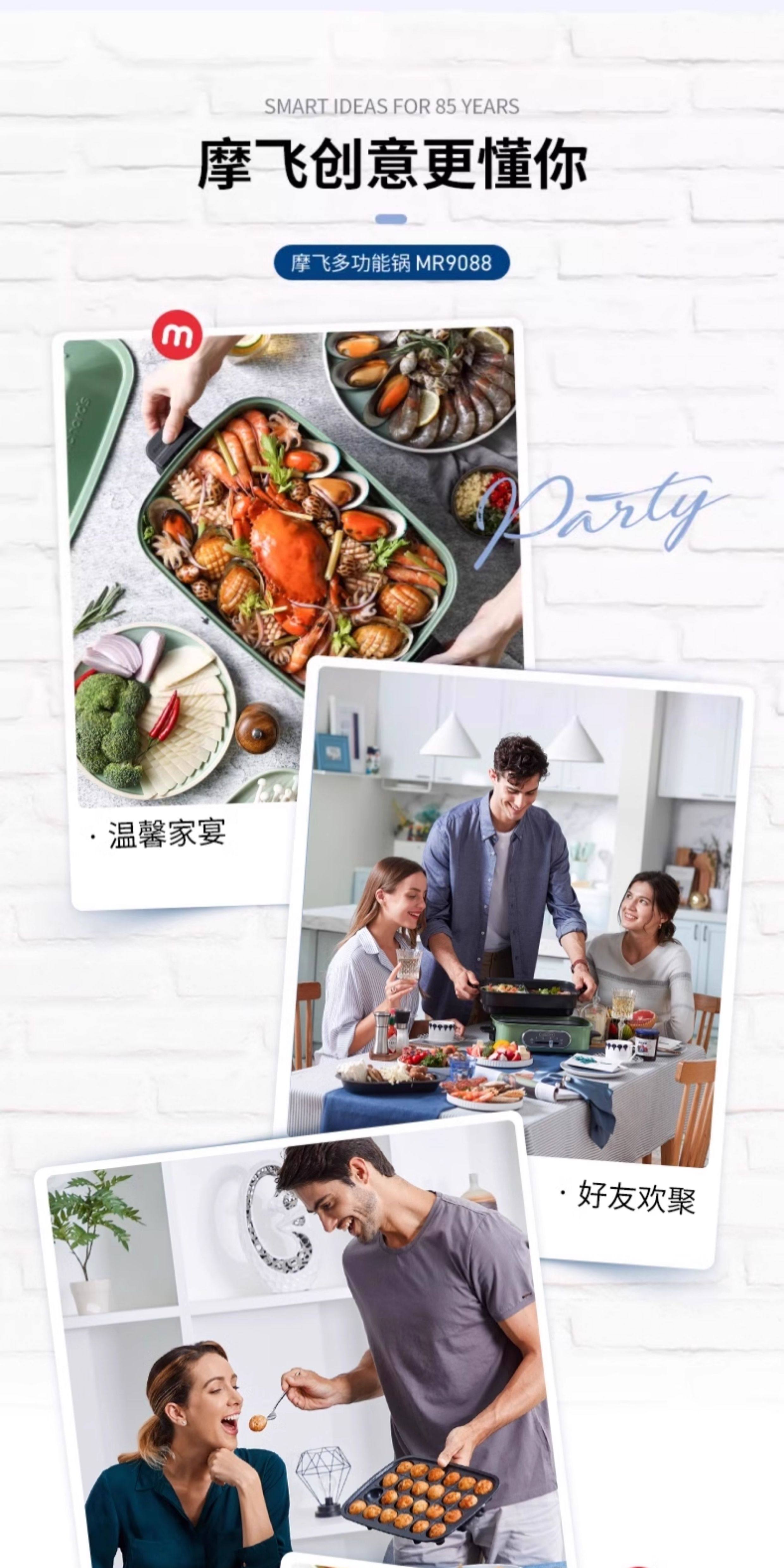 摩飞电器(Morphyrichards)多功能锅 家用多用途锅电火锅电煮锅电蒸锅电炒锅电热锅 2.5升不沾料理锅火锅锅MR9088绿