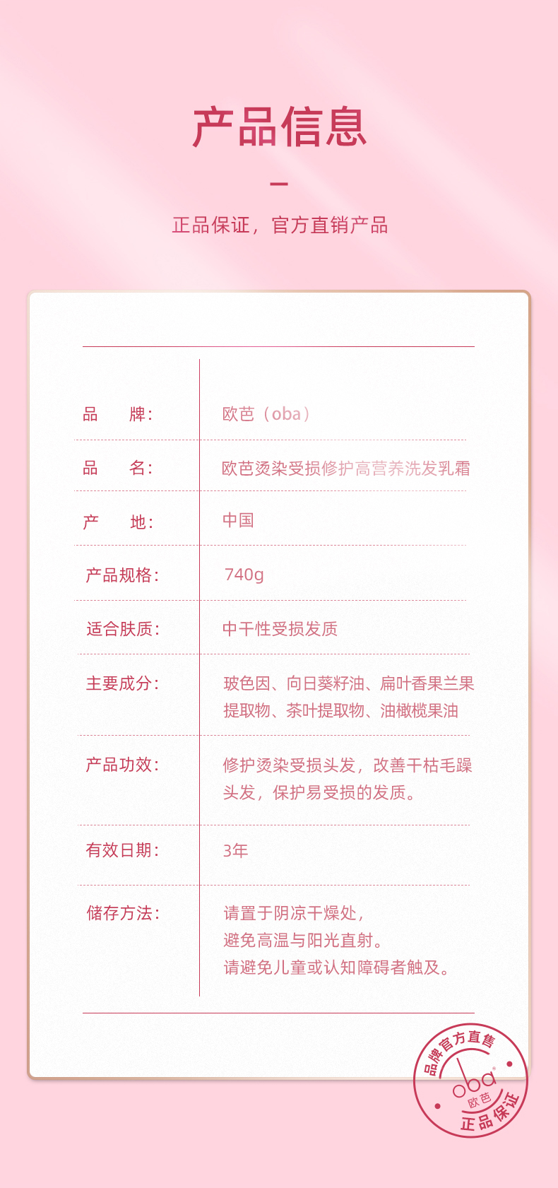 oba欧芭烫染受损修护留香洗发水正品欧巴洗发露女理发店发廊专用