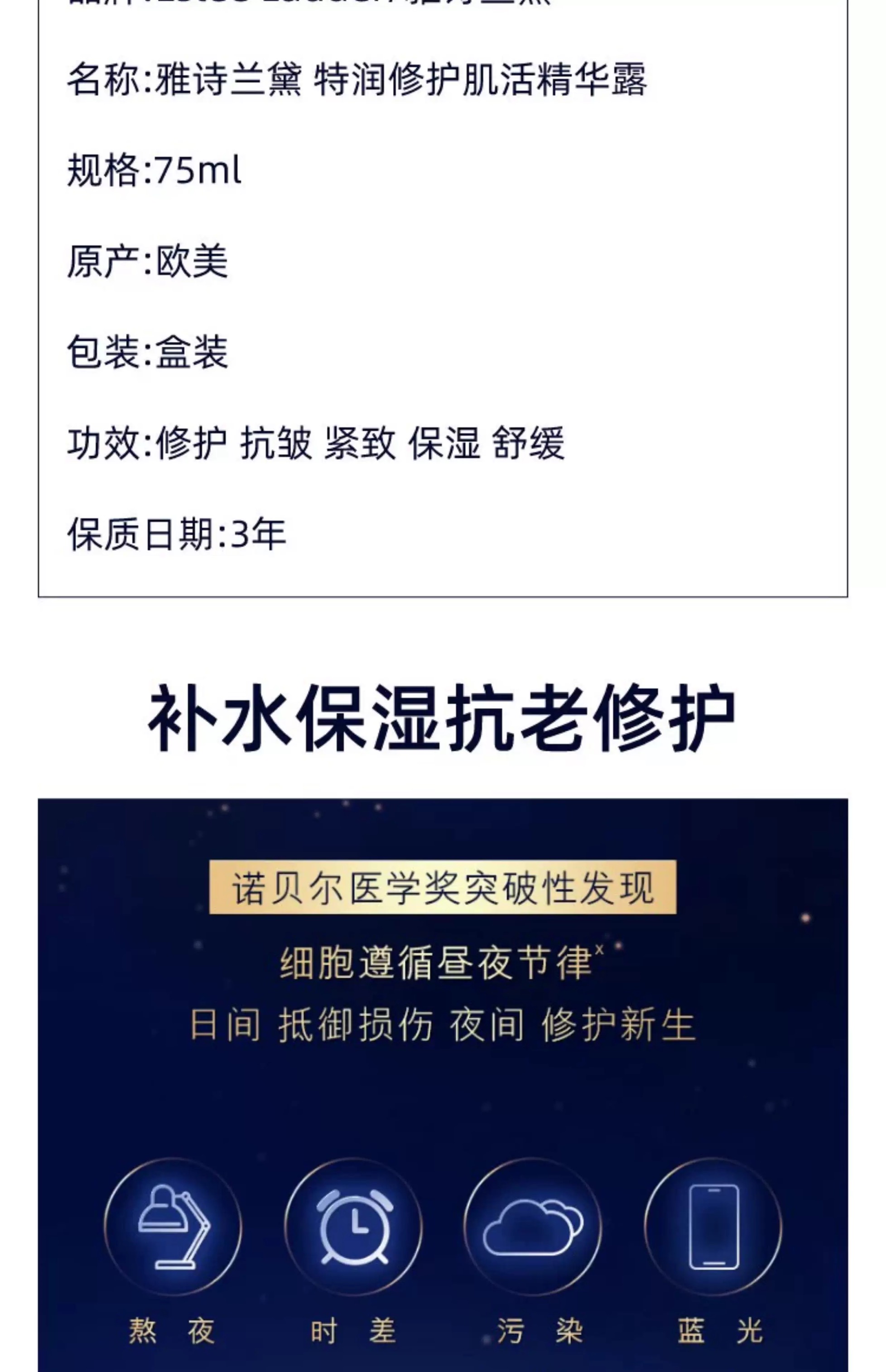 雅诗兰黛特润精华露挚爱套特润75ml+特润修护夜间焕能精华霜膜7ml+智妍乳霜15ml*4