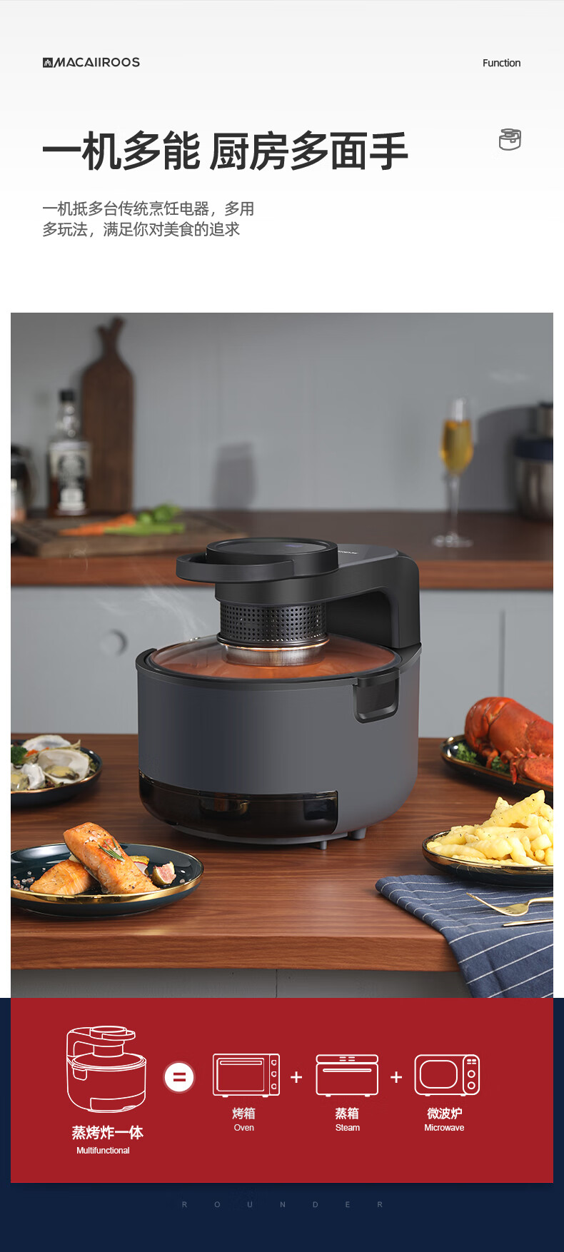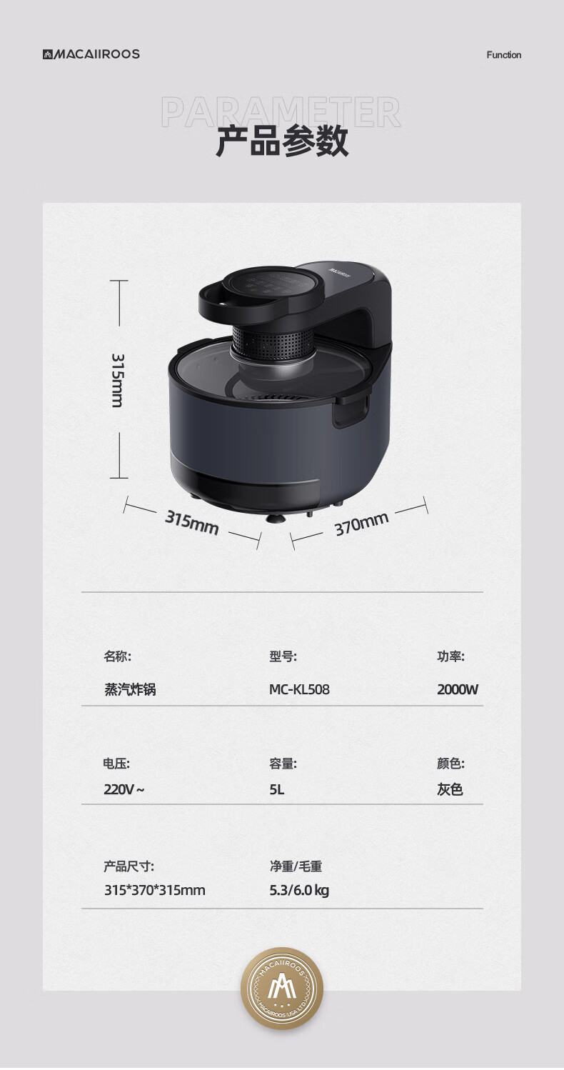 【小家电】迈卡罗MC-KL508空气炸锅 家用大容量5L蒸汽电炸锅智能煎炸锅蒸汽嫩炸HF