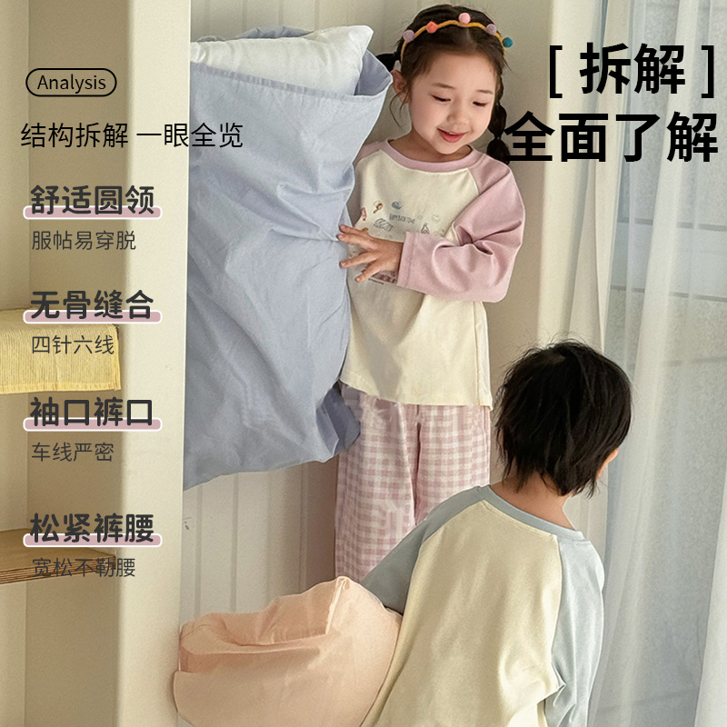 【LANSHU岚束 儿童款AB版插肩家居服】0甲醛无异味无刺激 透气性好 纯棉面料 走线精致柔软舒适