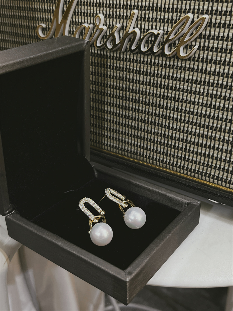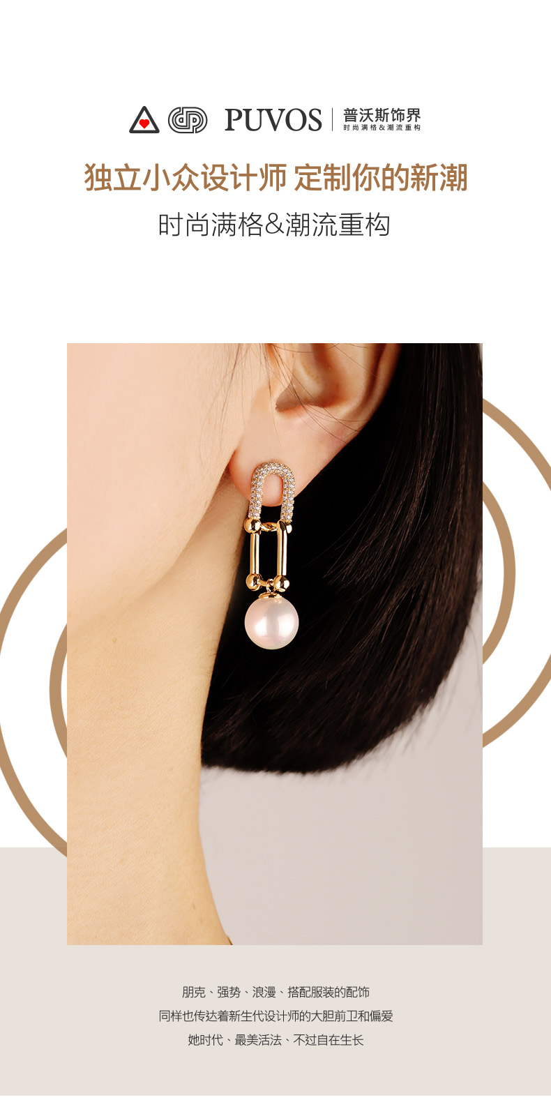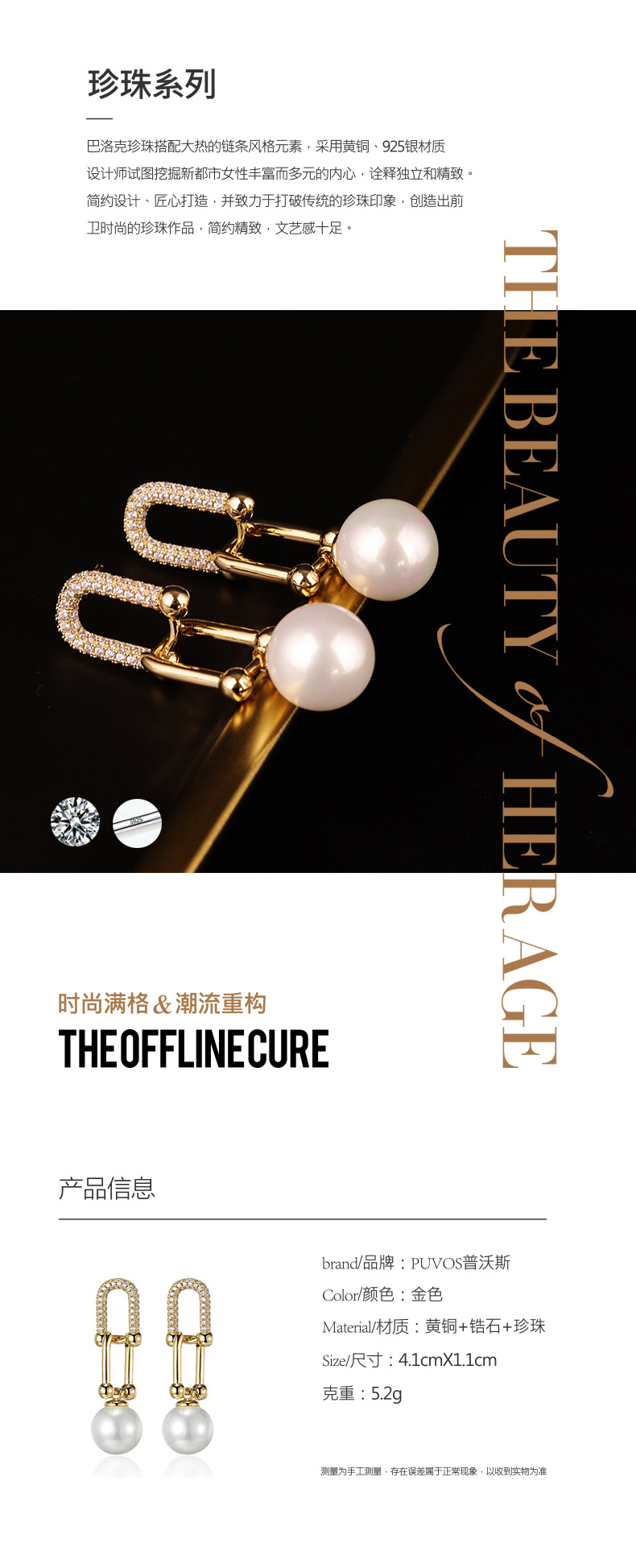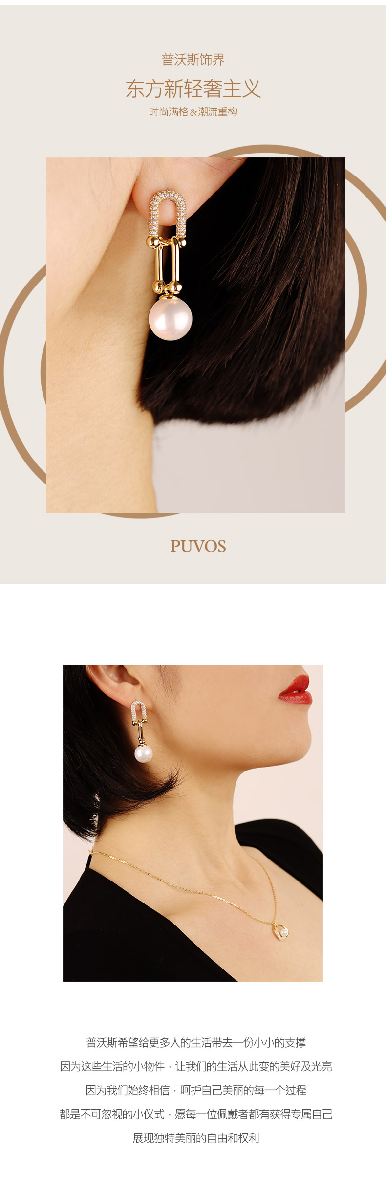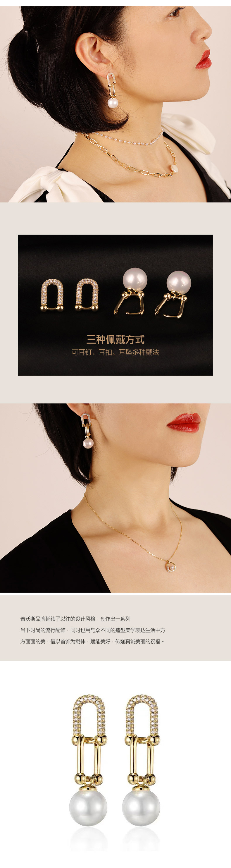 预售|PUVOS普沃斯新款 黄铜镀金轻奢5A锆石镶嵌zhen珠法式复古925银针耳钉 .潮快闪[福利品]
