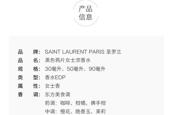 SAINT LAURENT PARIS 圣罗兰黑色鸦片香水