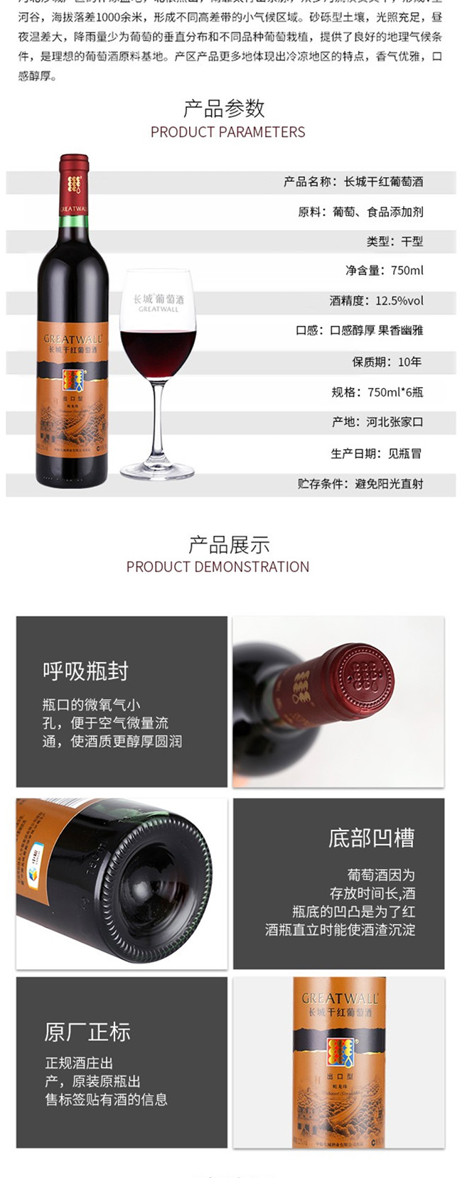 长城出口型蛇龙珠干红葡萄酒 整箱750ml*6瓶包邮